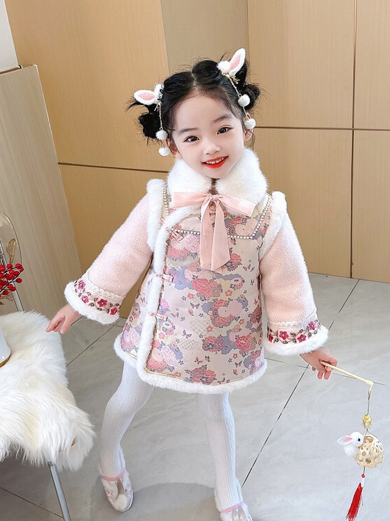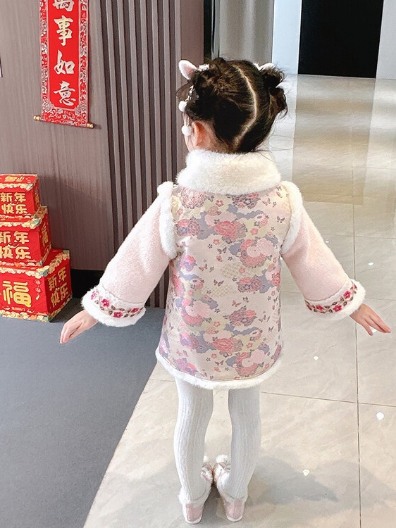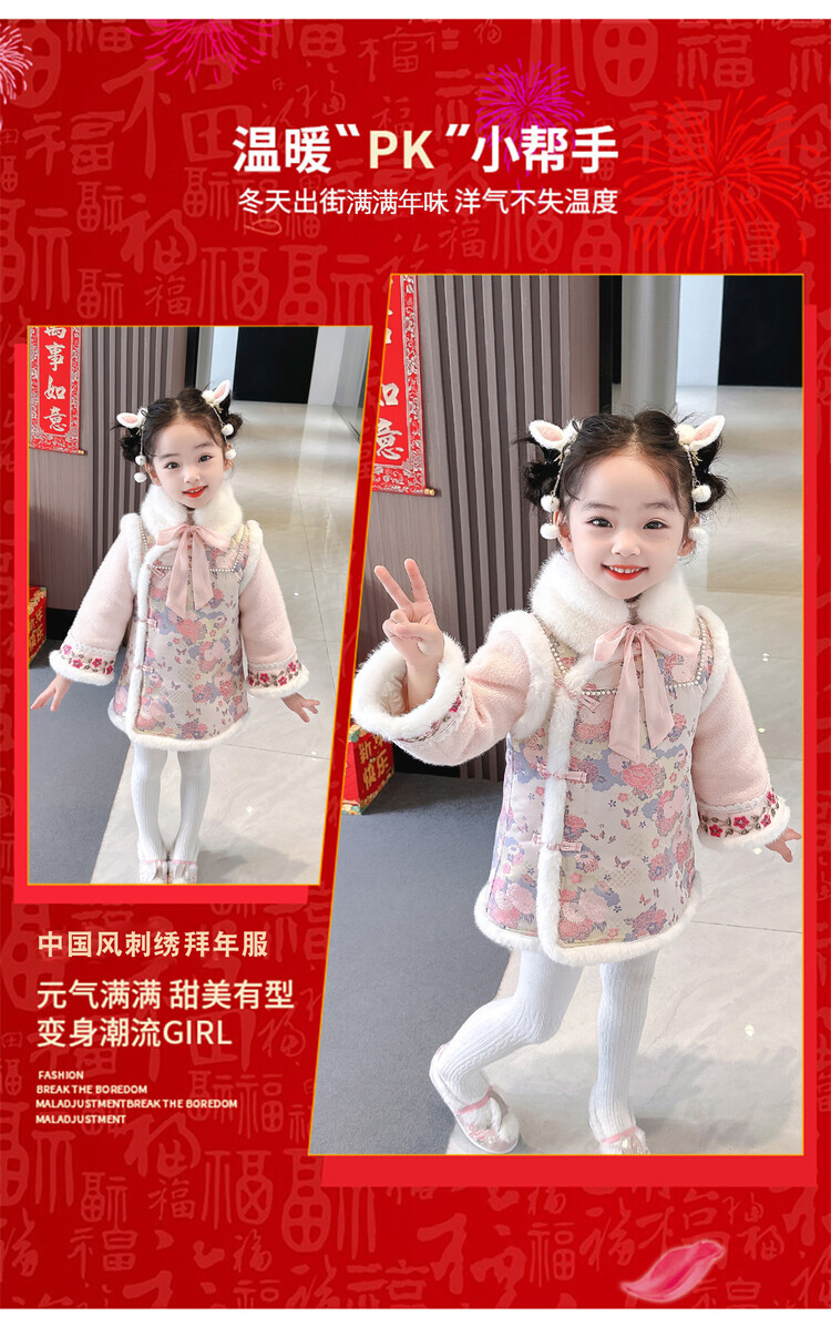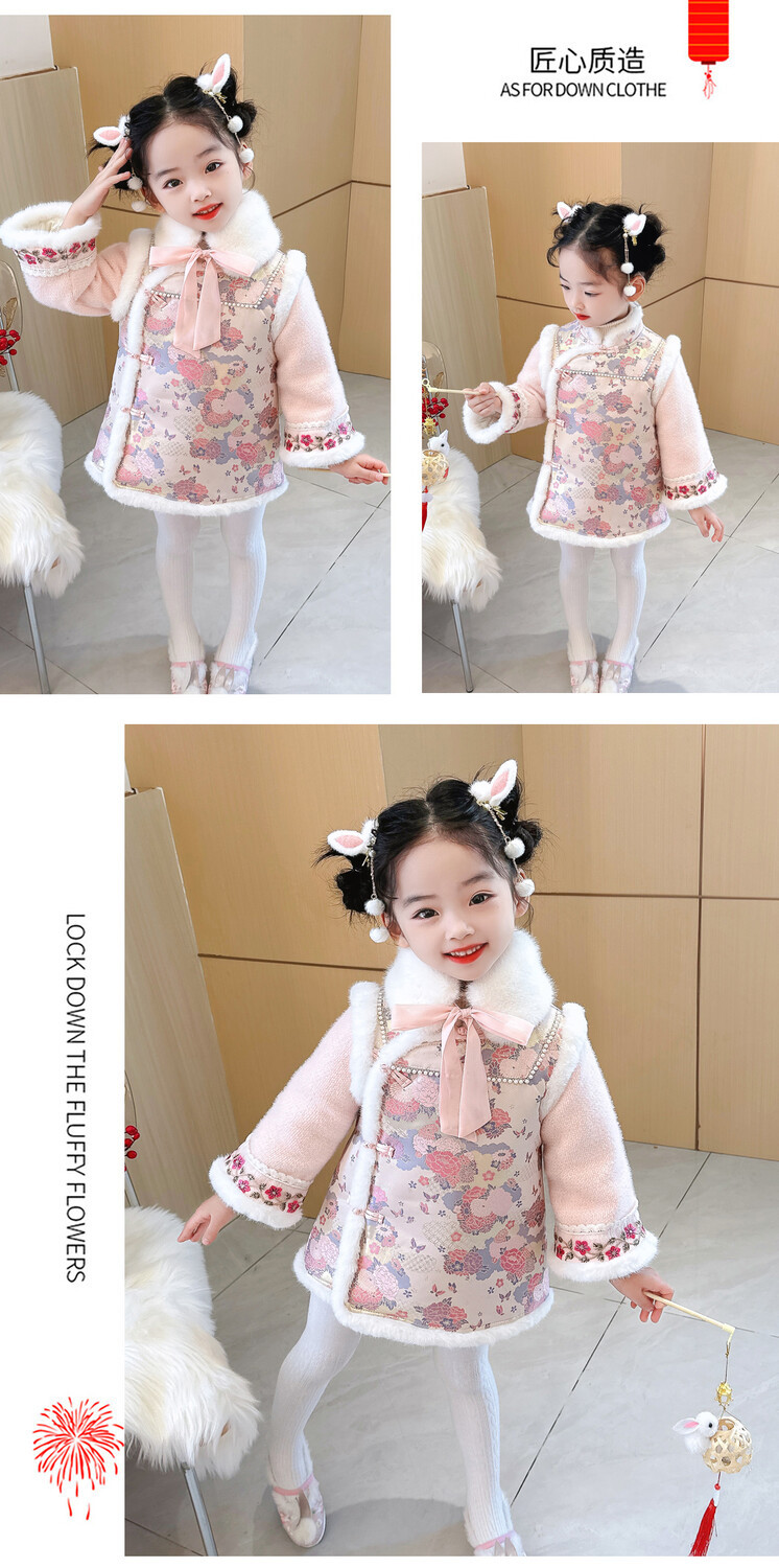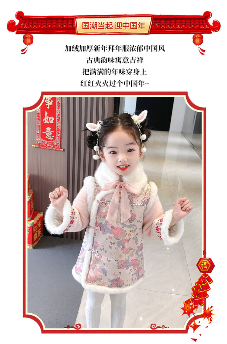 女童国风加绒汉服龙年拜年服周岁宝宝2024新款礼服儿童唐装新年装