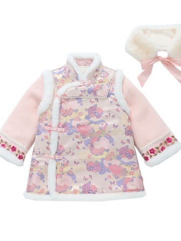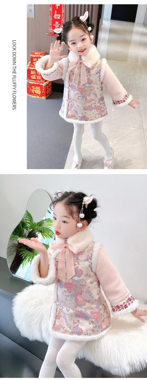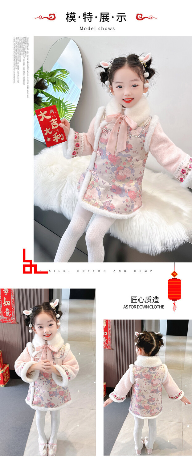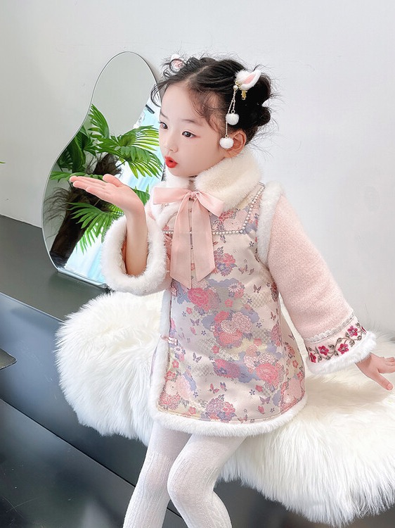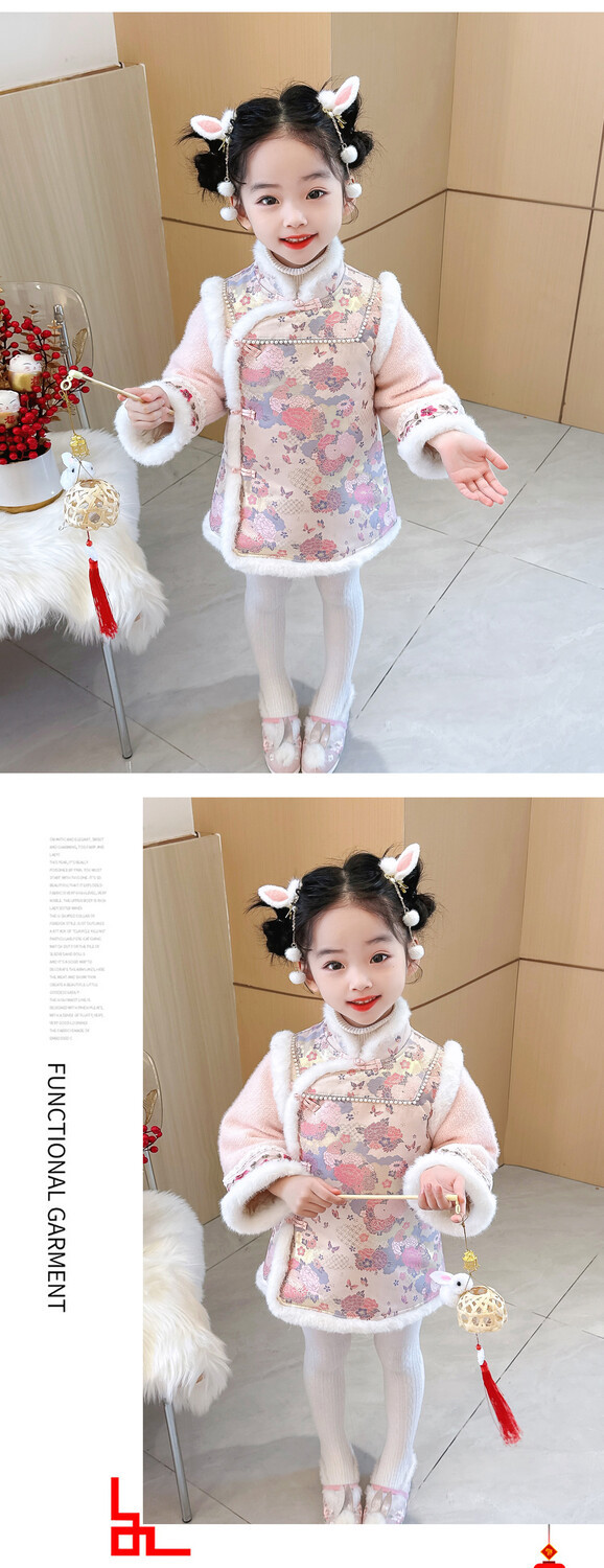 女童国风加绒汉服龙年拜年服周岁宝宝2024新款礼服儿童唐装新年装
