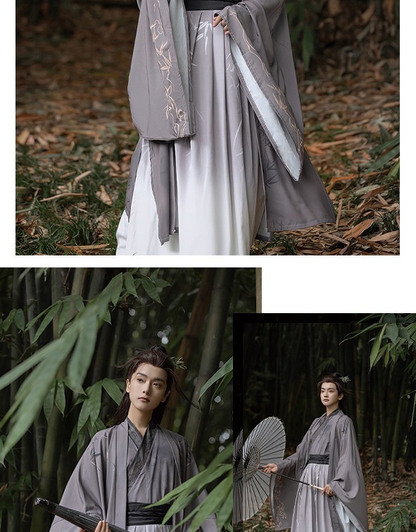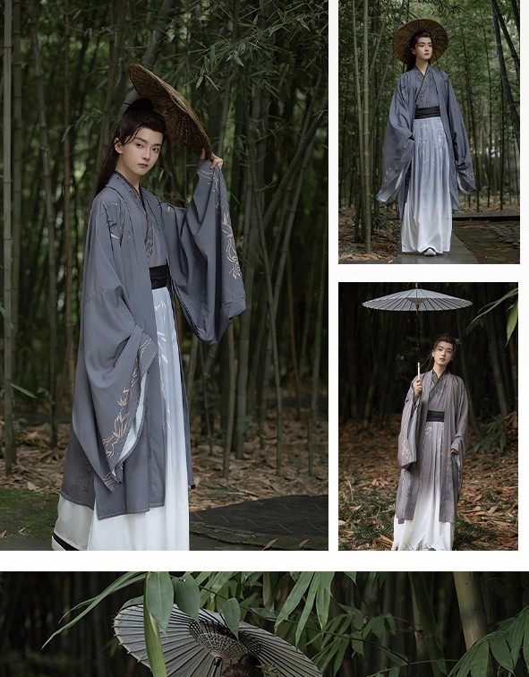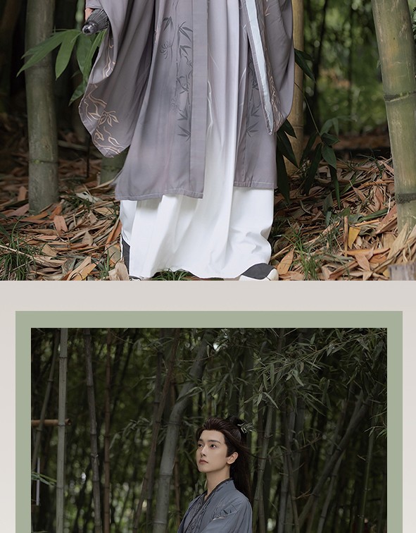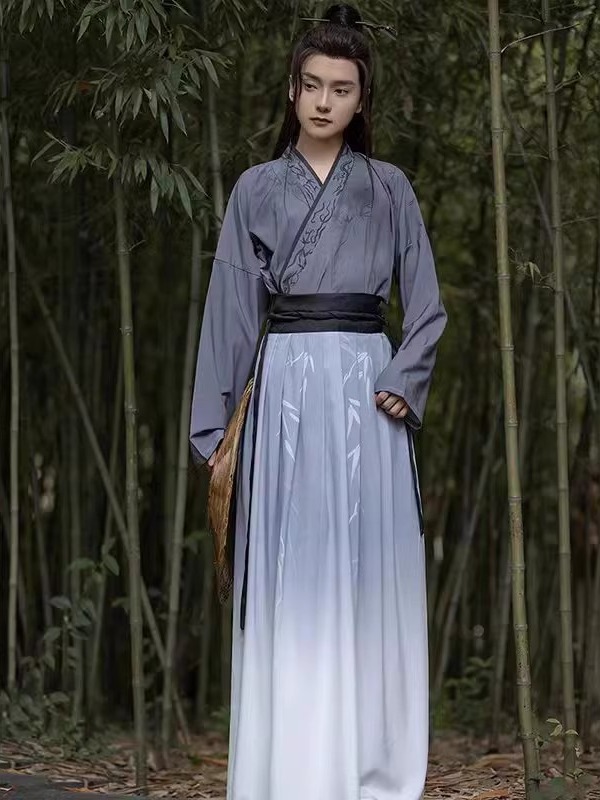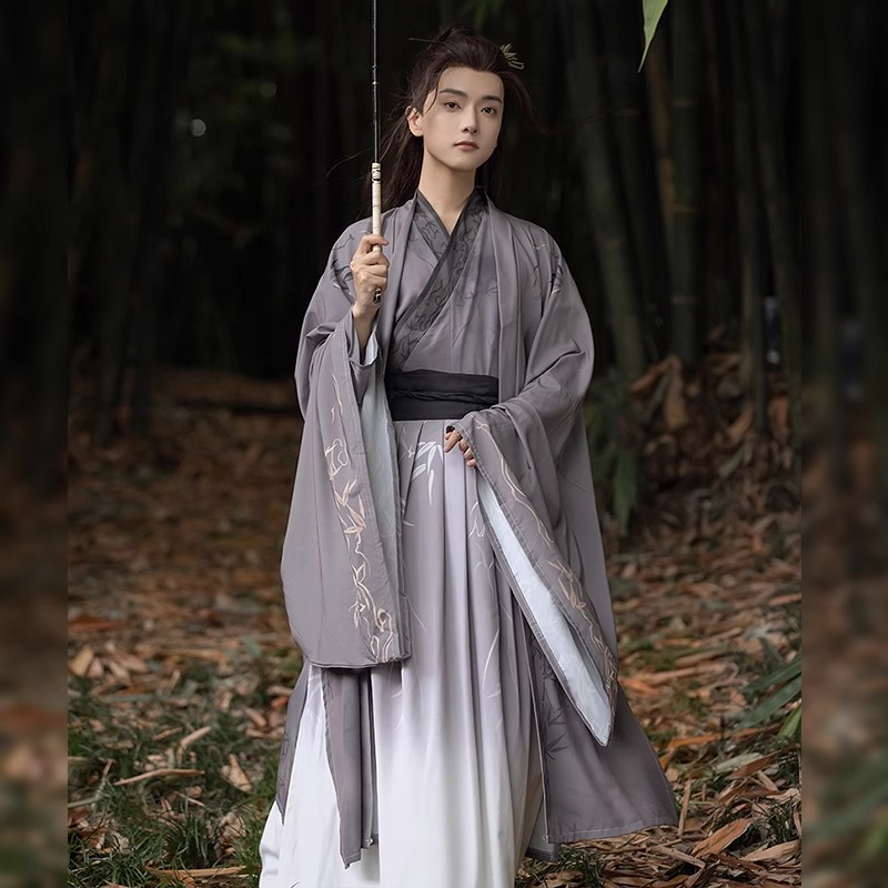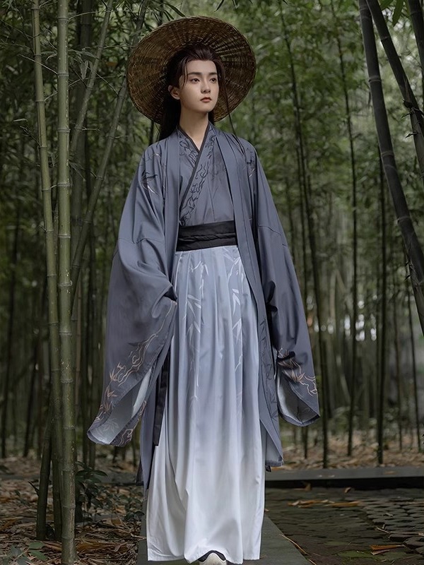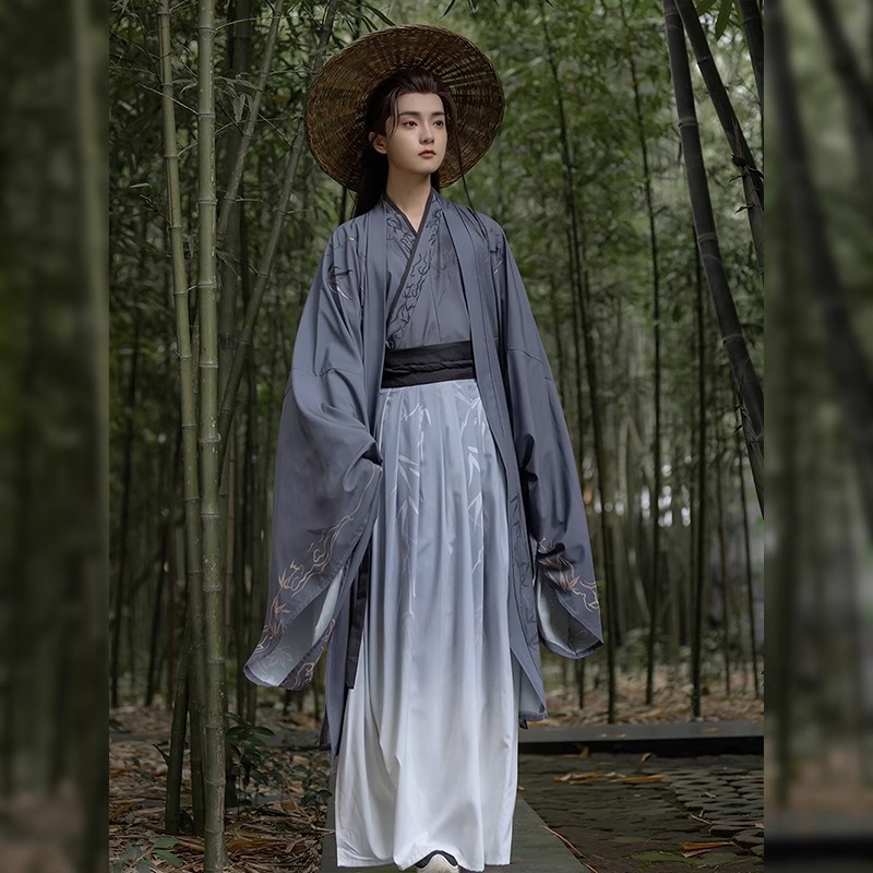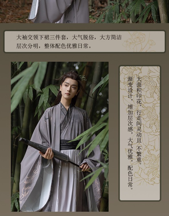 幽竹引成人原创汉服魏晋风古装印花套装男女同款学生服班服套装