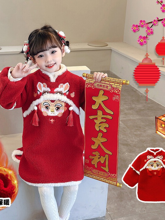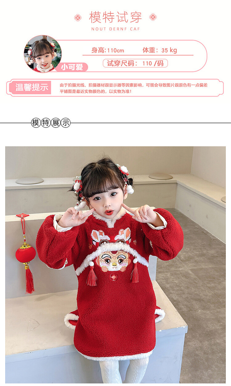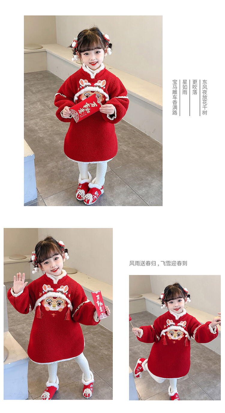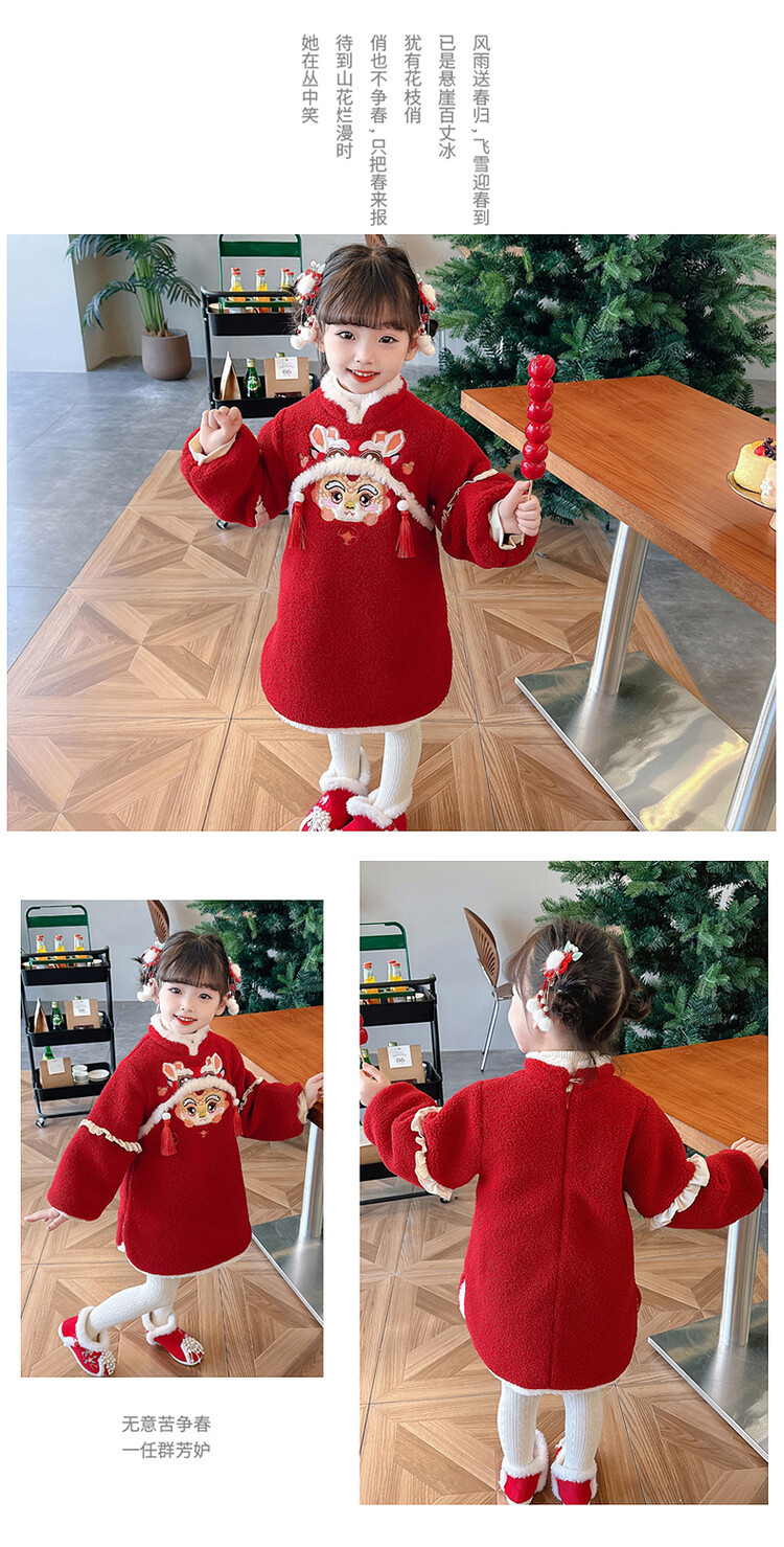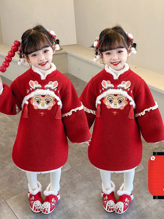 新款汉服女童冬款拜年服儿童宝宝冬季过年服红色旗袍新年唐装国风