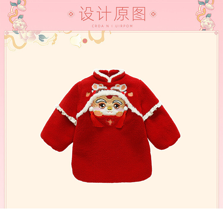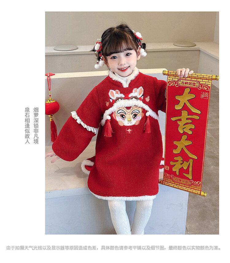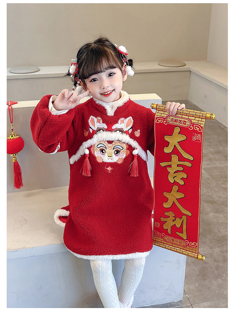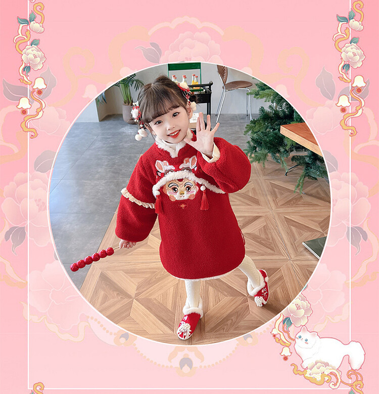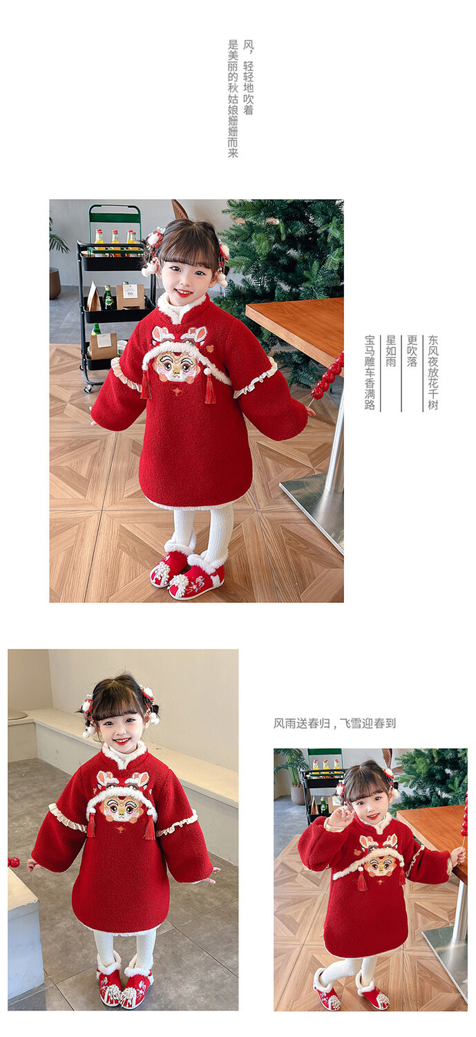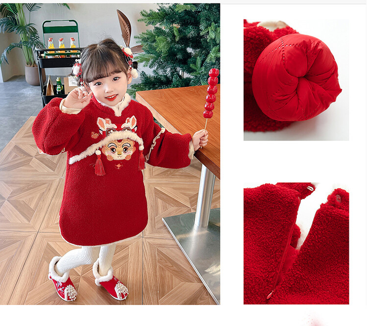 新款汉服女童冬款拜年服儿童宝宝冬季过年服红色旗袍新年唐装国风
