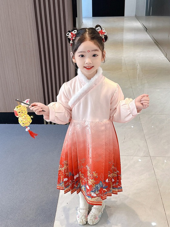 原创汉服女童冬款儿童拜年服女童古风超仙古装过年服国风女宝唐装