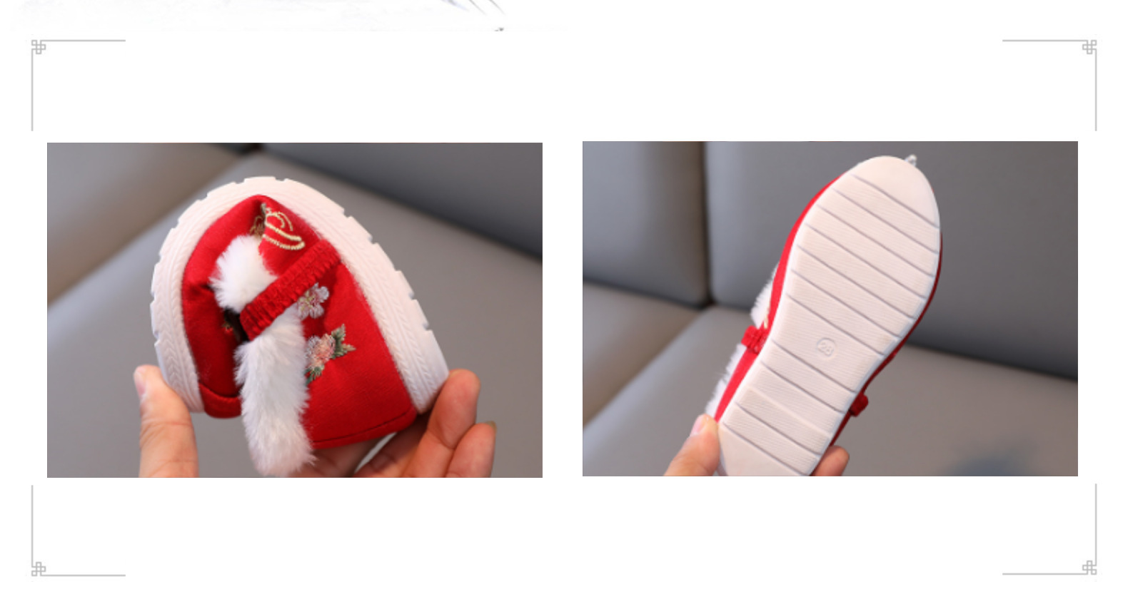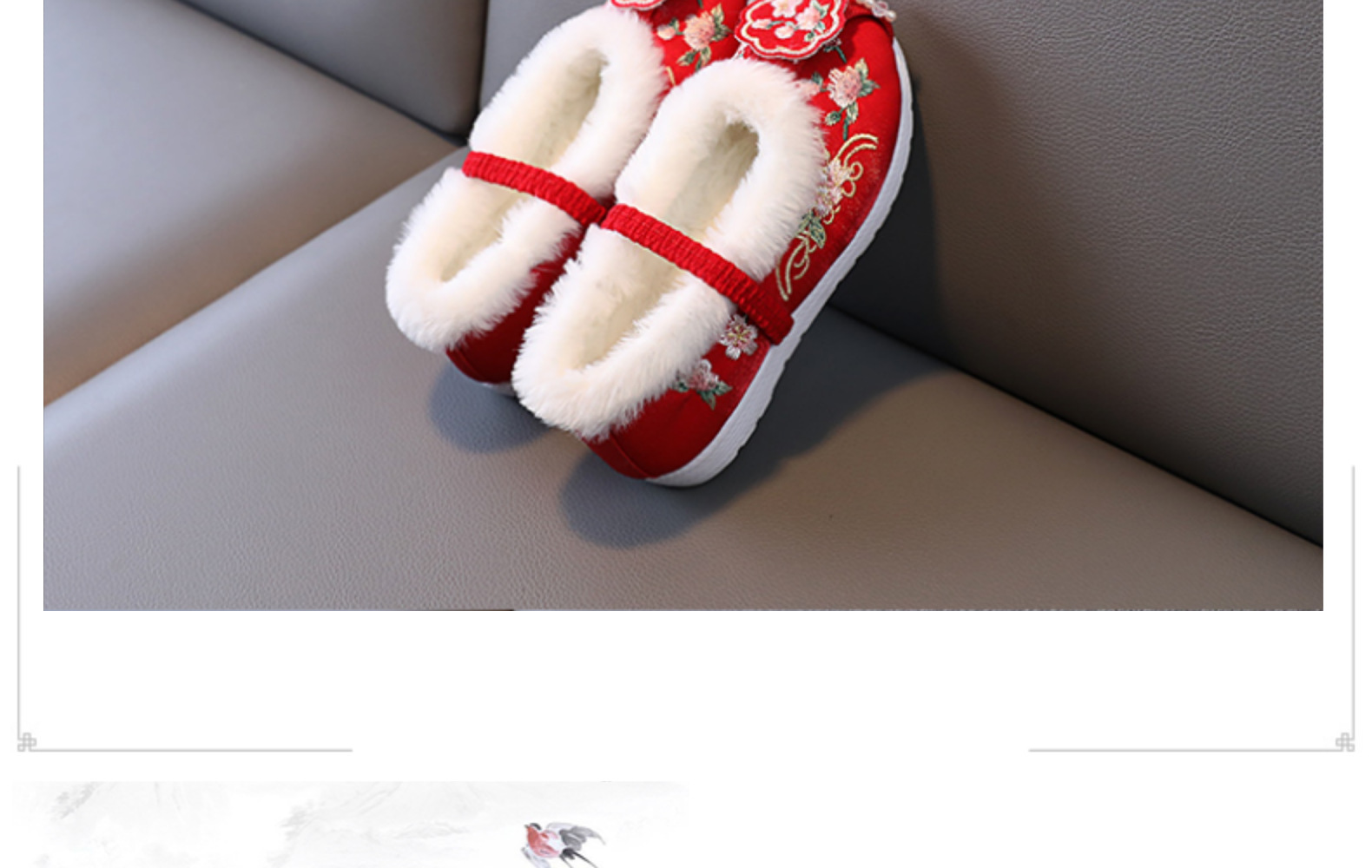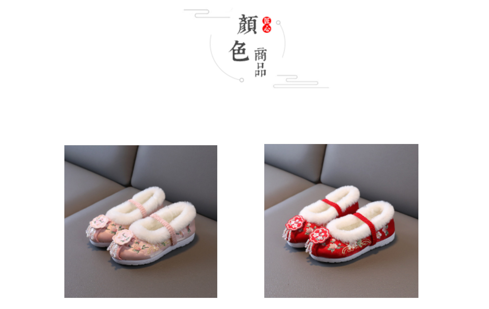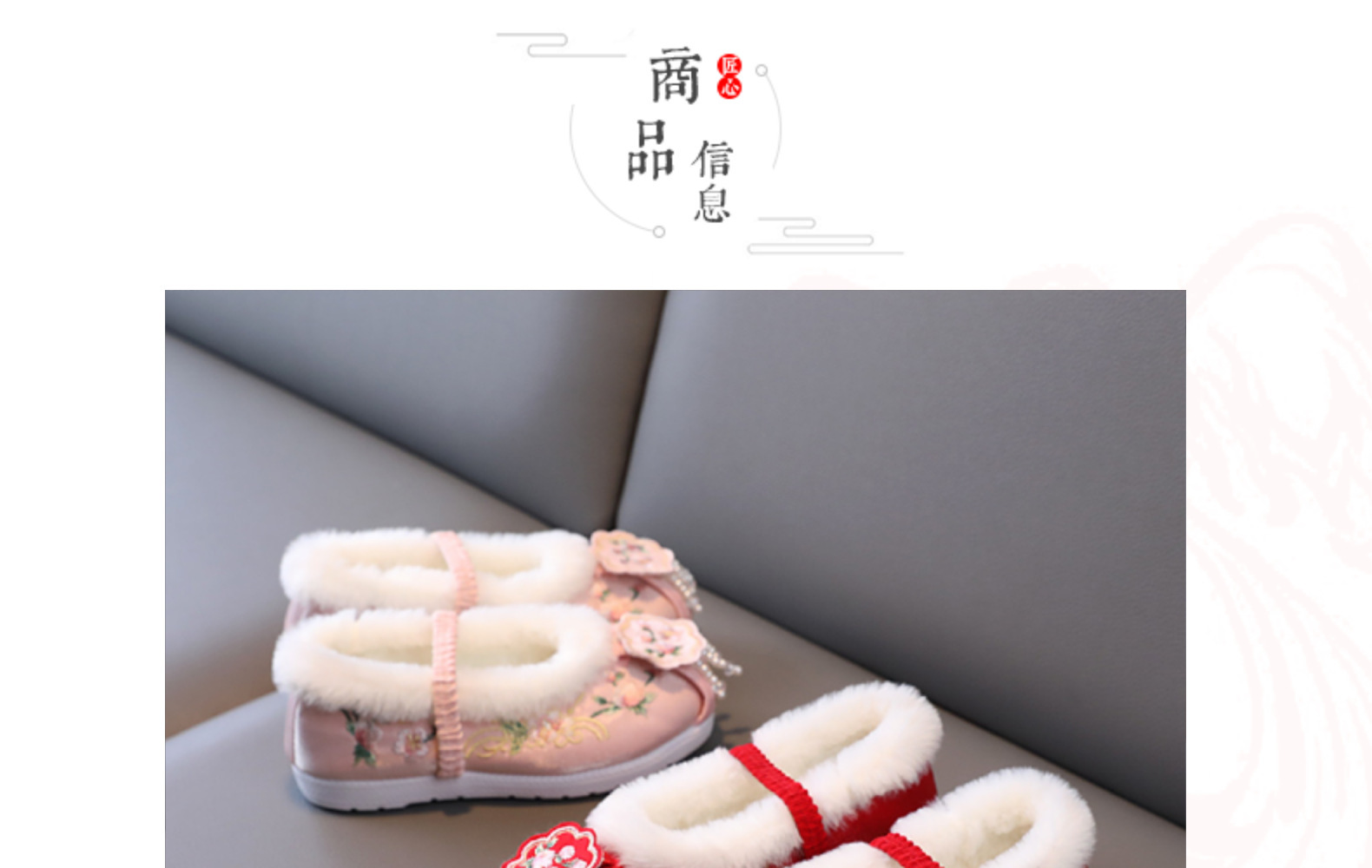 古风汉服鞋子女童冬款中国风绣花鞋搭配古装公主鞋加绒厚表演棉鞋