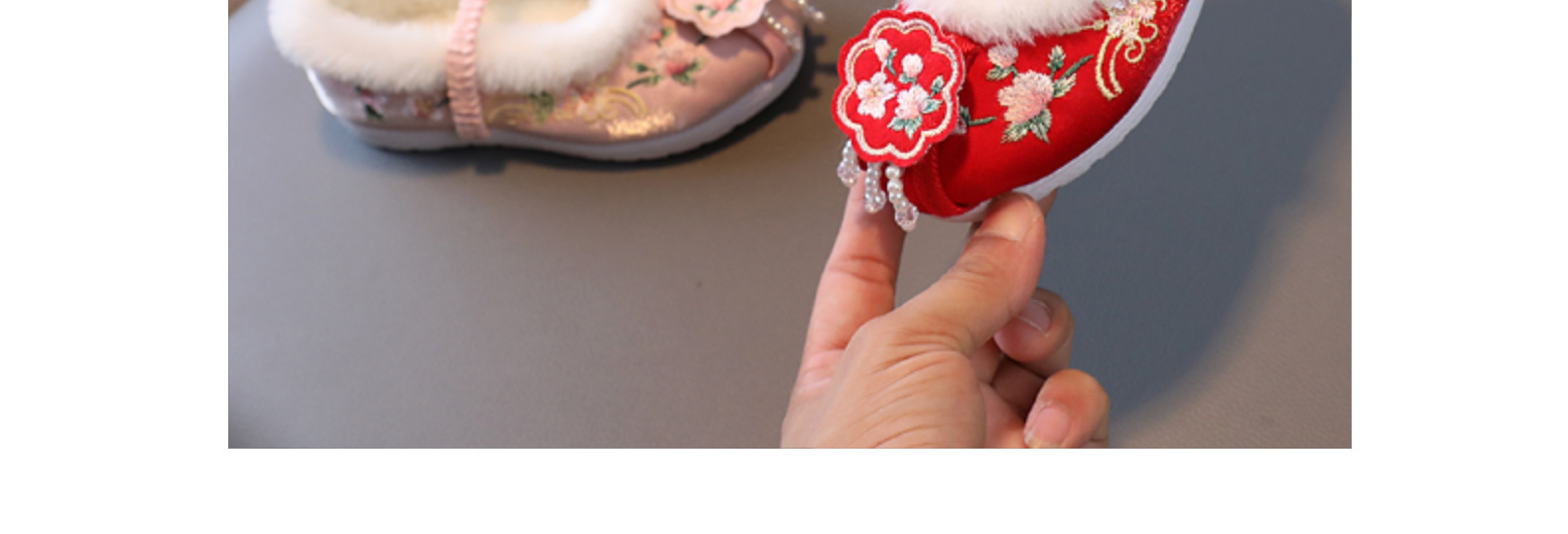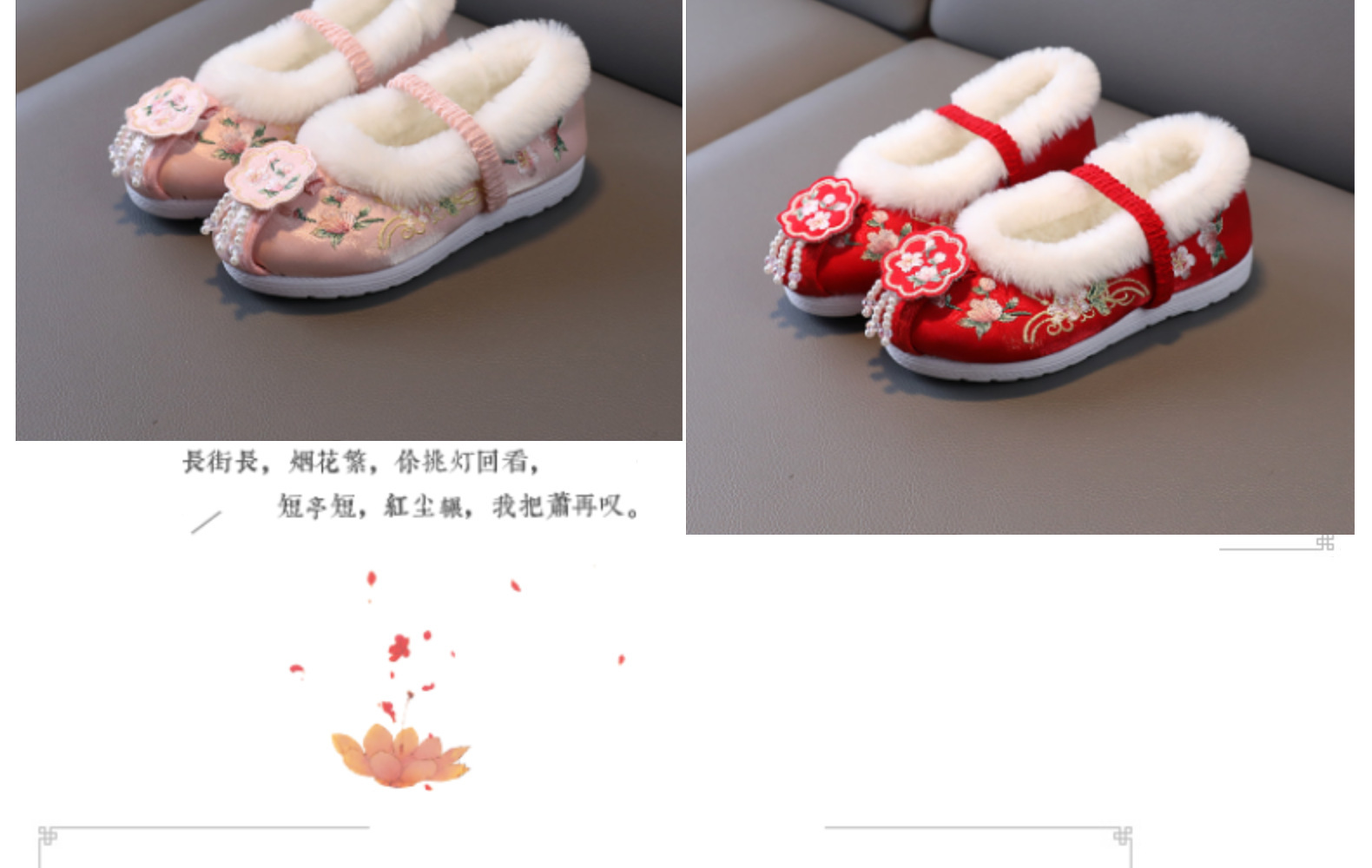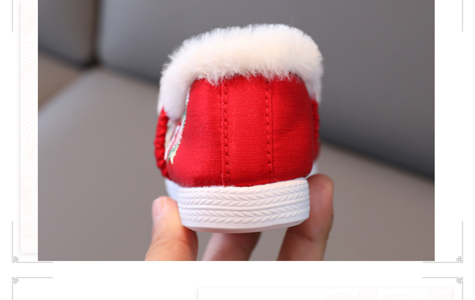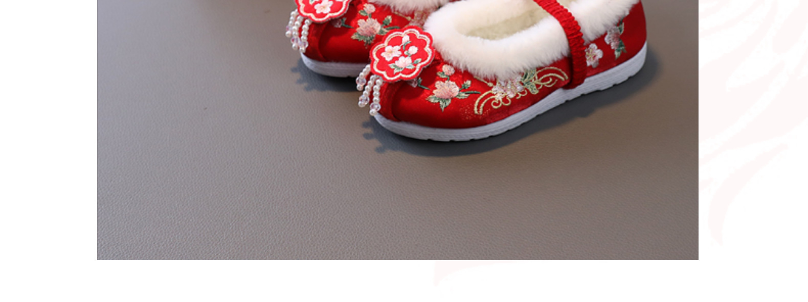 古风汉服鞋子女童冬款中国风绣花鞋搭配古装公主鞋加绒厚表演棉鞋