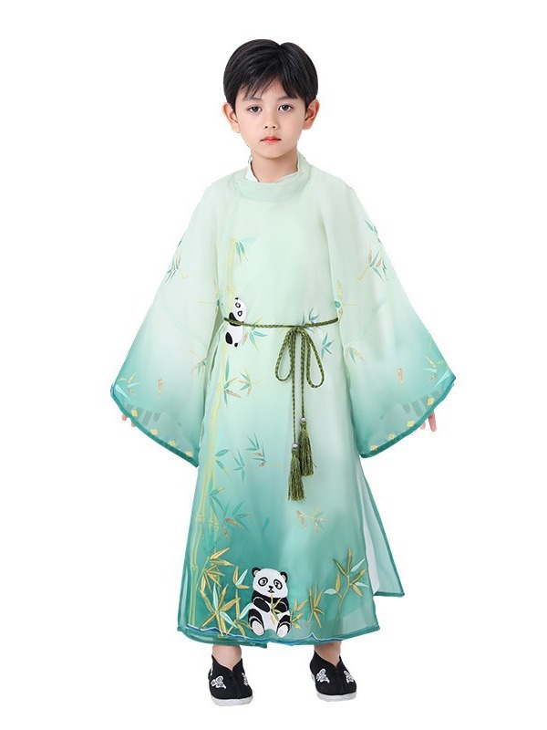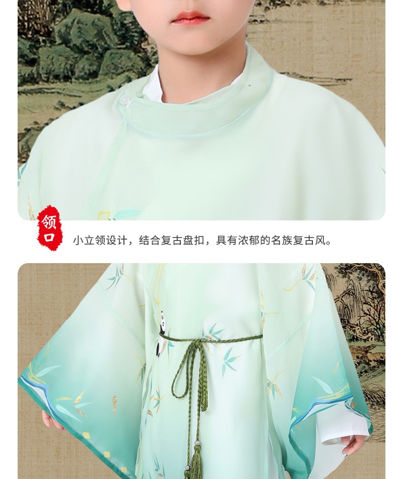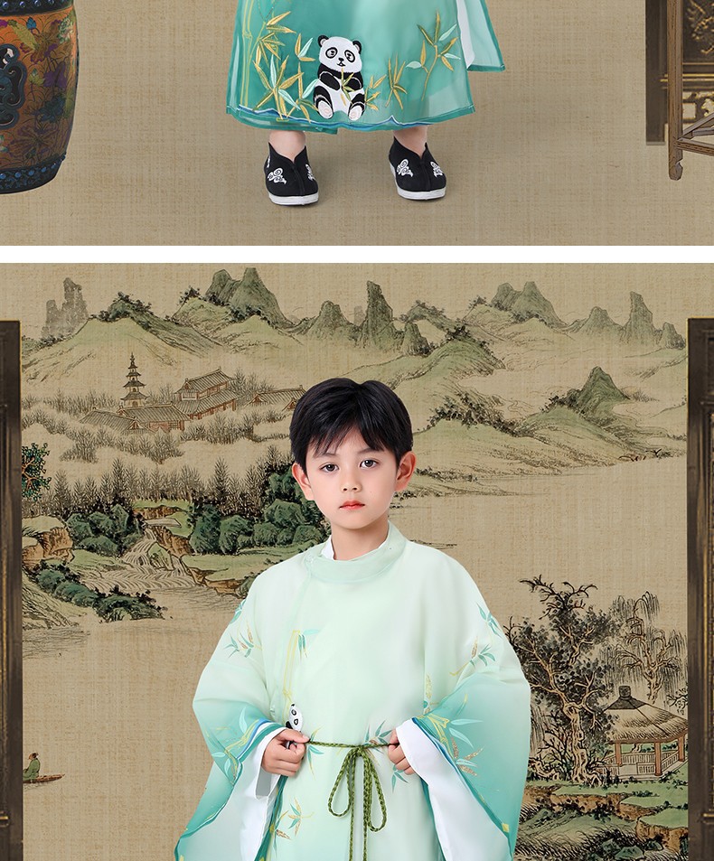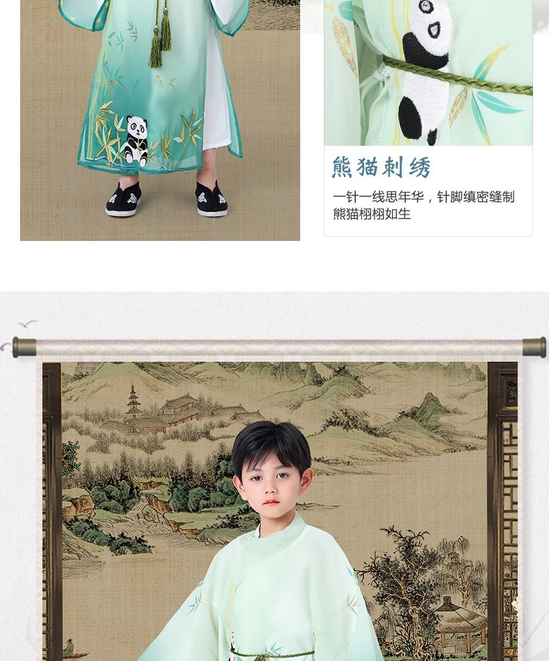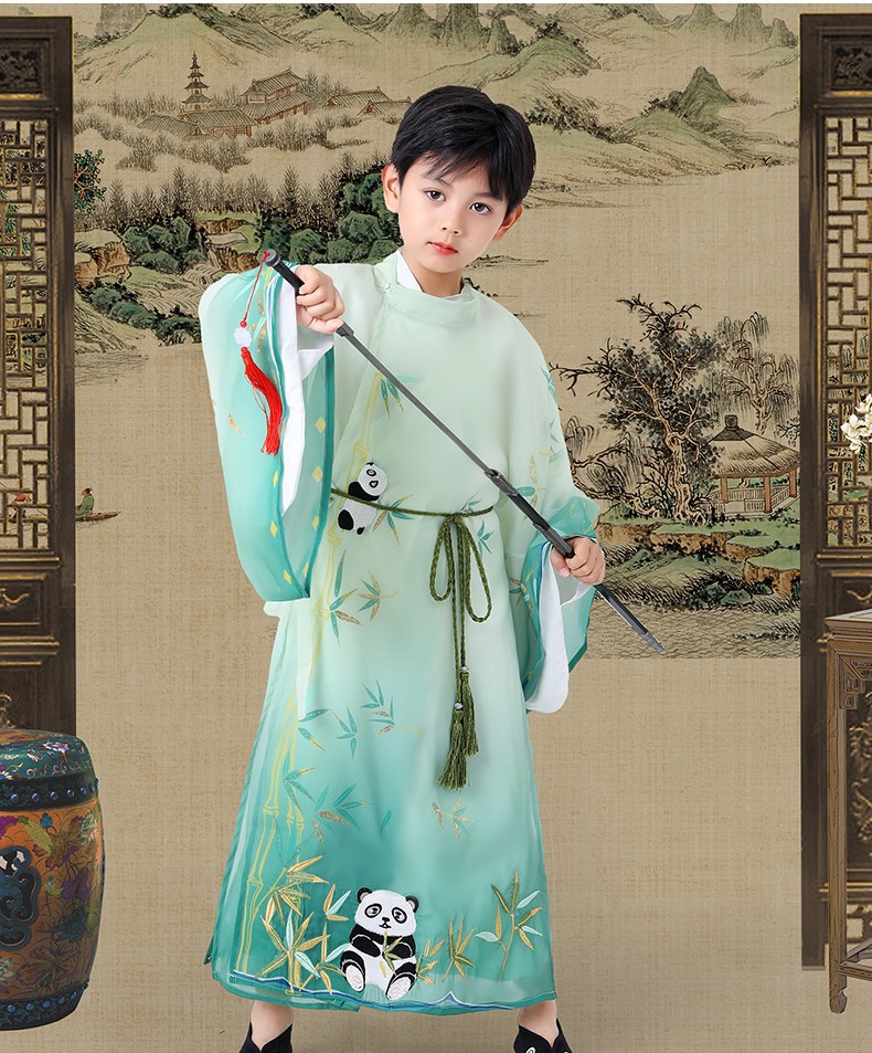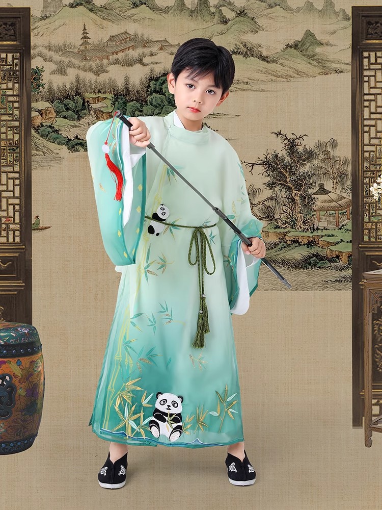 熊猫汉服男童儿童古装新款春秋款男孩国学服套装中秋男宝宝表演服