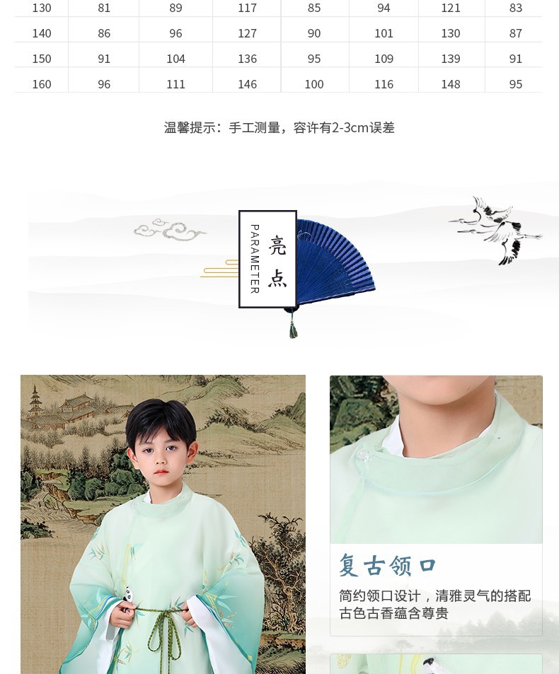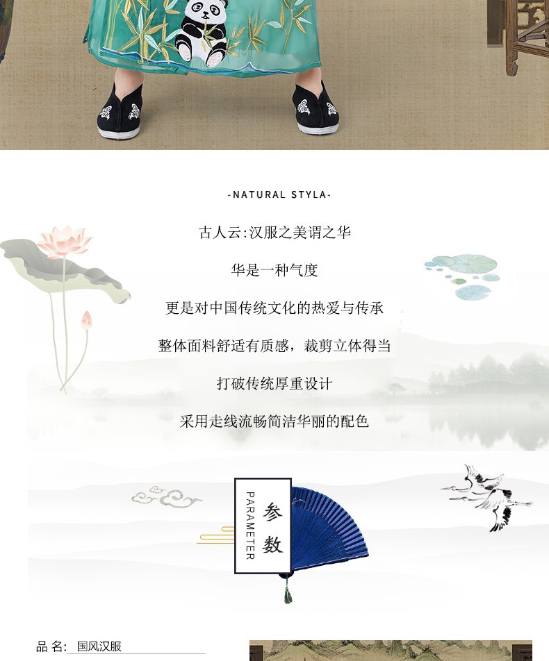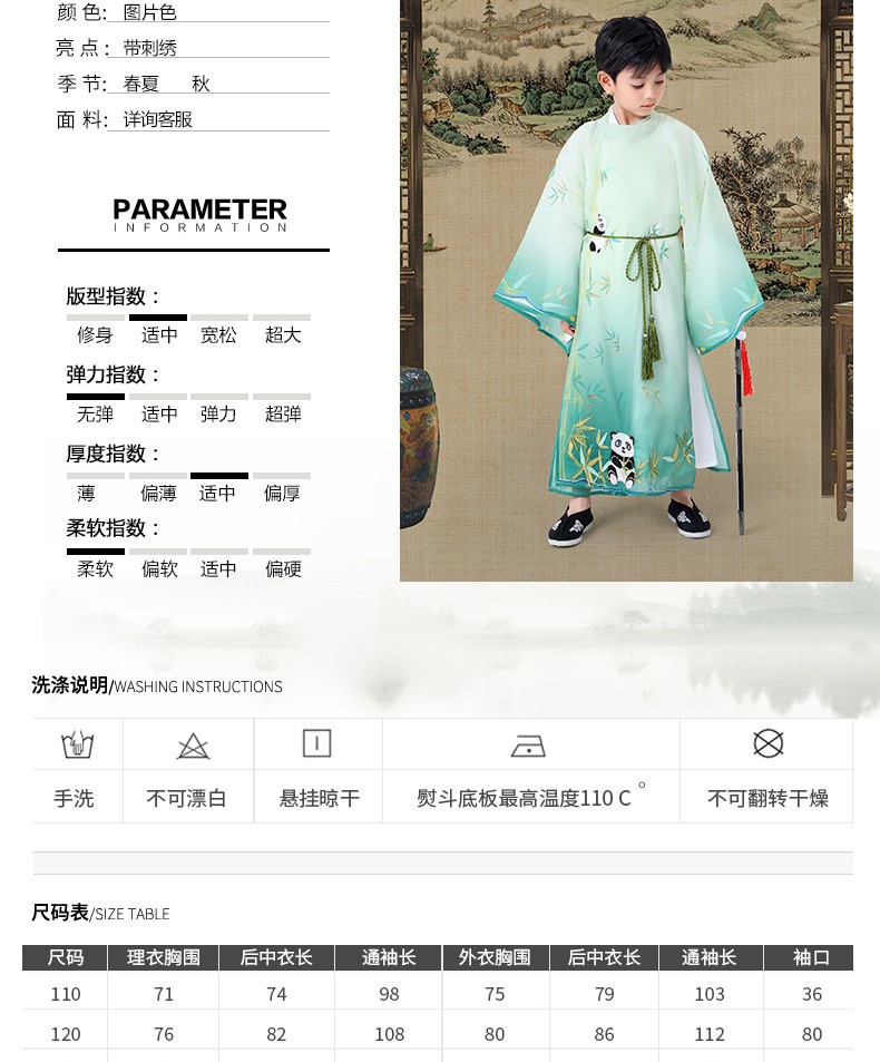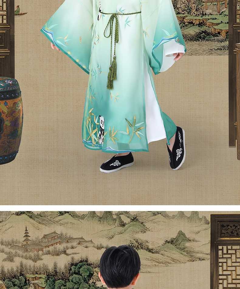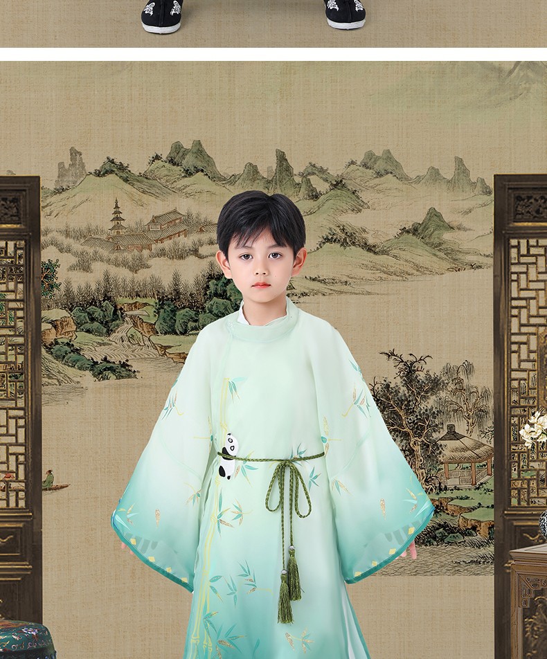 熊猫汉服男童儿童古装新款春秋款男孩国学服套装中秋男宝宝表演服