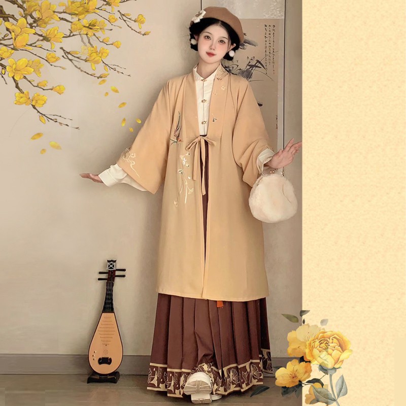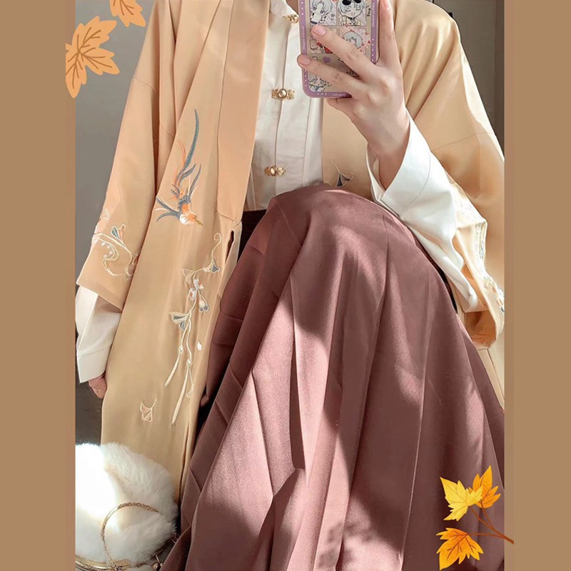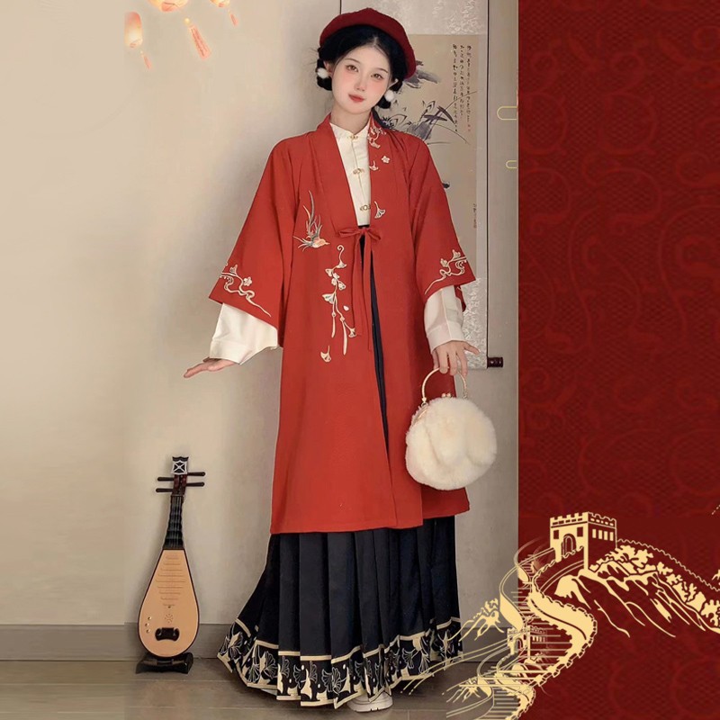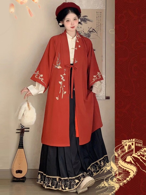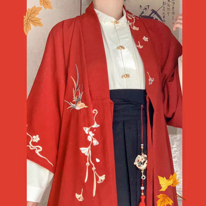 成人女原创【知秋】明制汉服女汉元素绣花加厚合领衫褶冬款拜年服