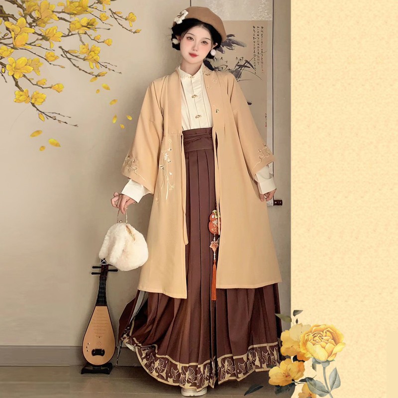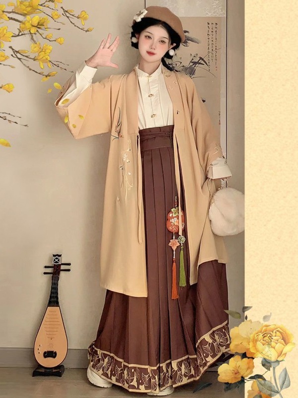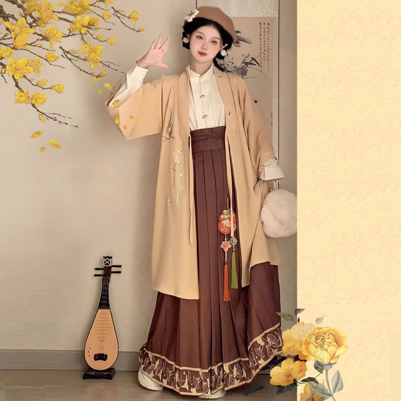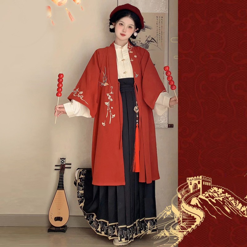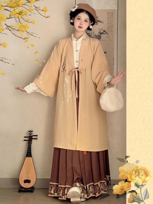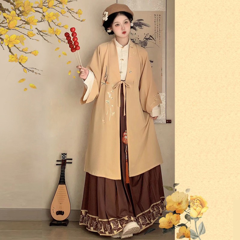成人女原创【知秋】明制汉服女汉元素绣花加厚合领衫褶冬款拜年服