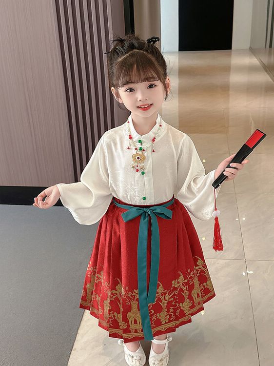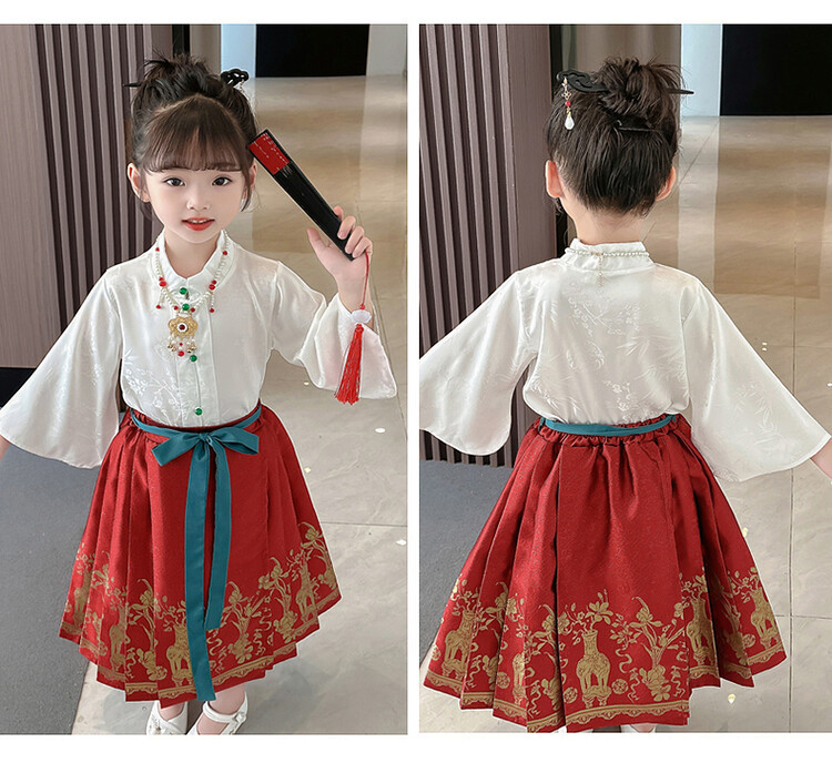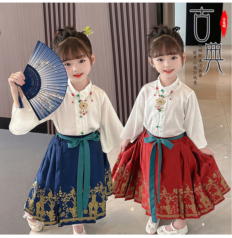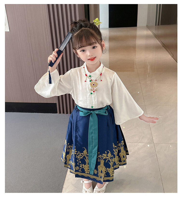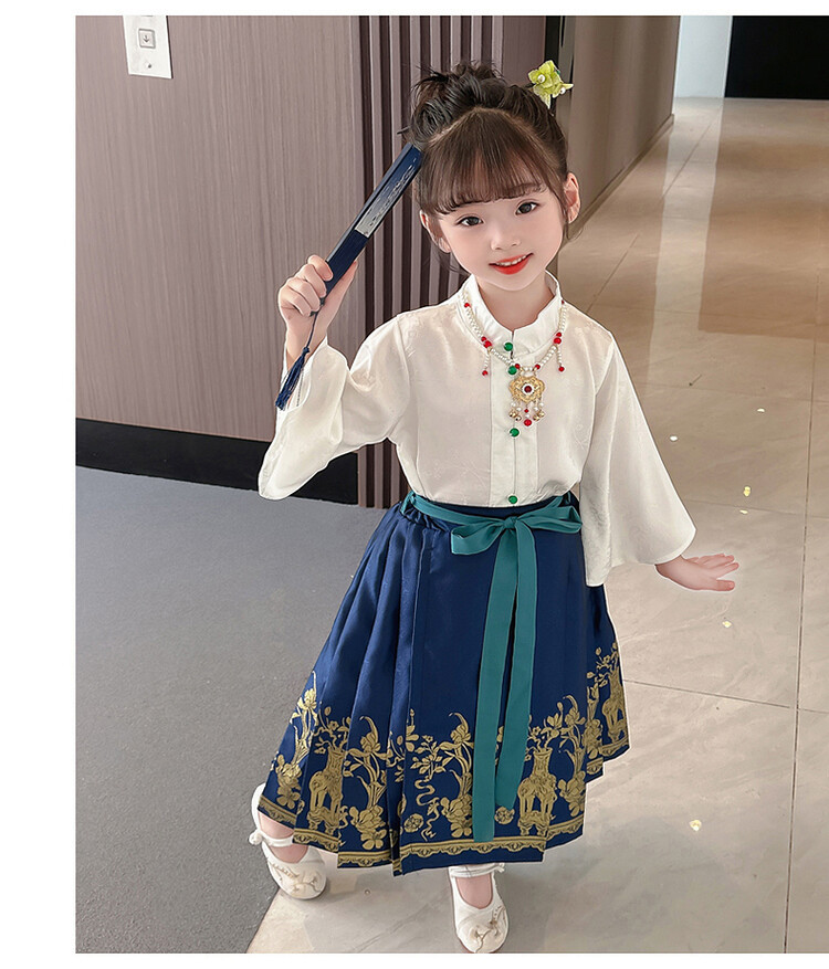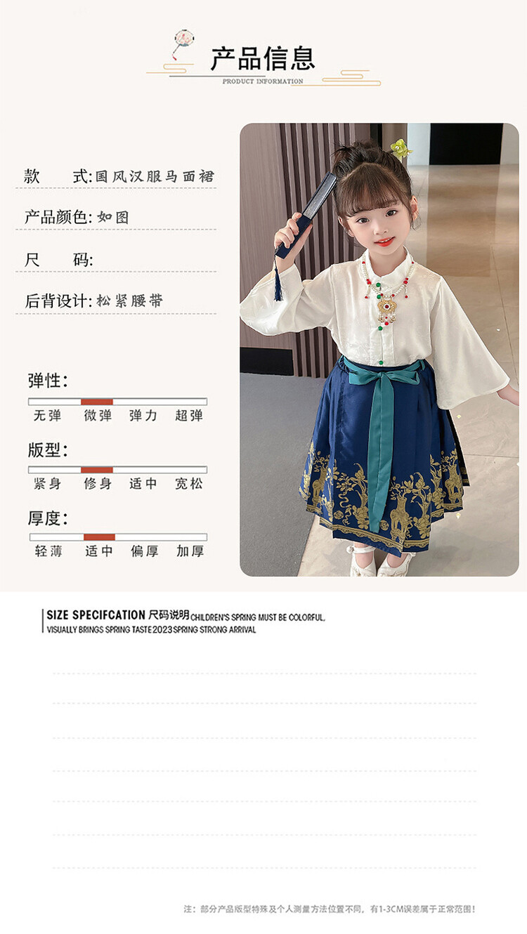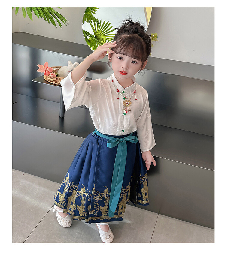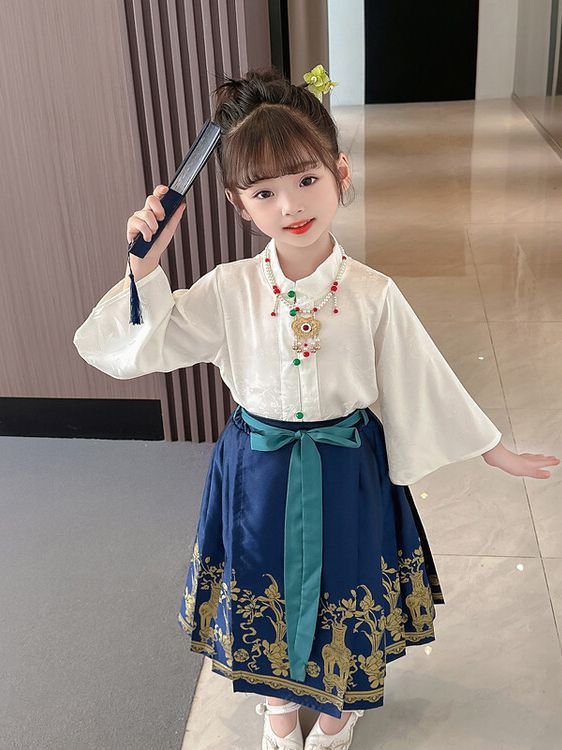女童马面裙夏季套装中国风古装秋款女孩儿童汉服唐装2023新款秋季
