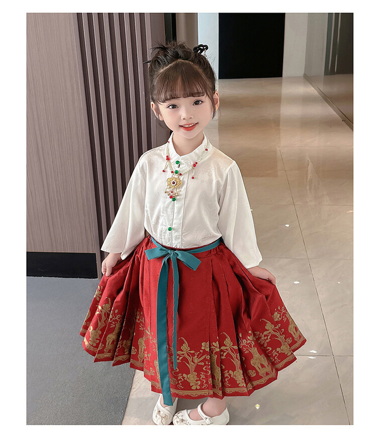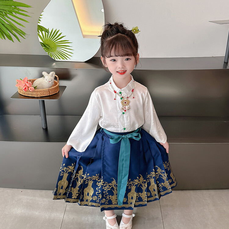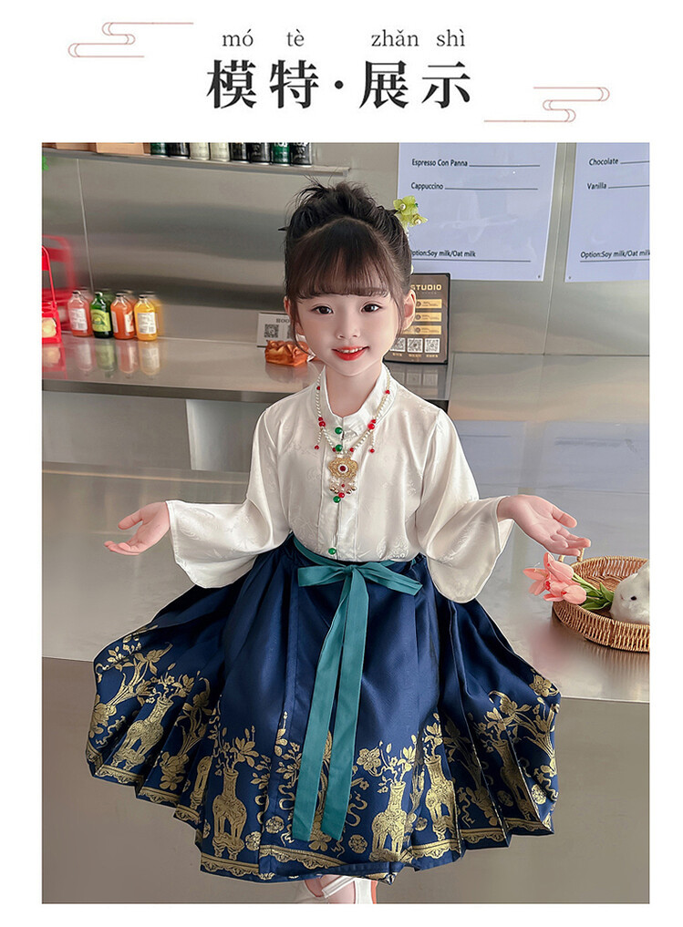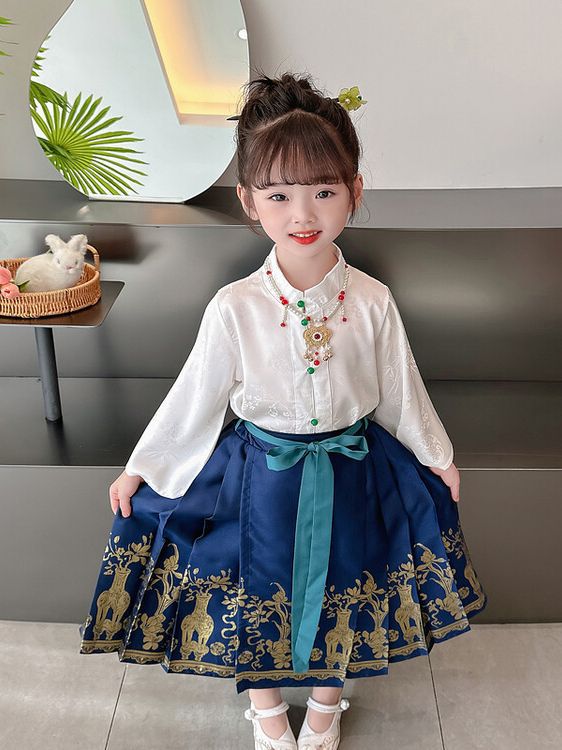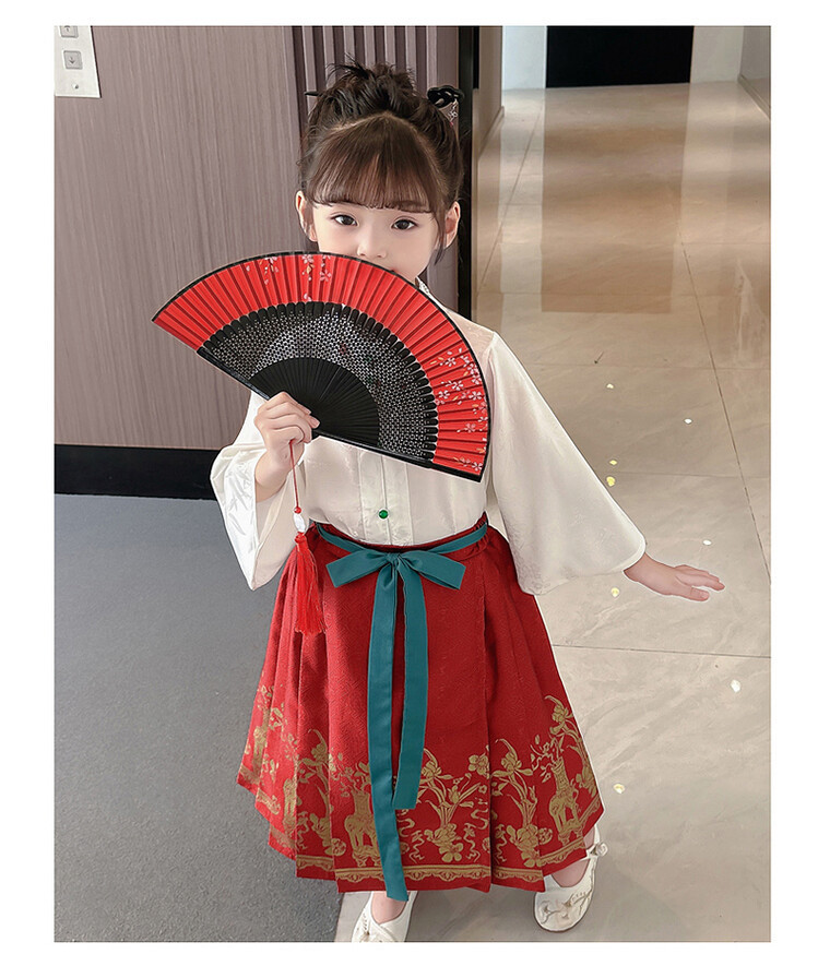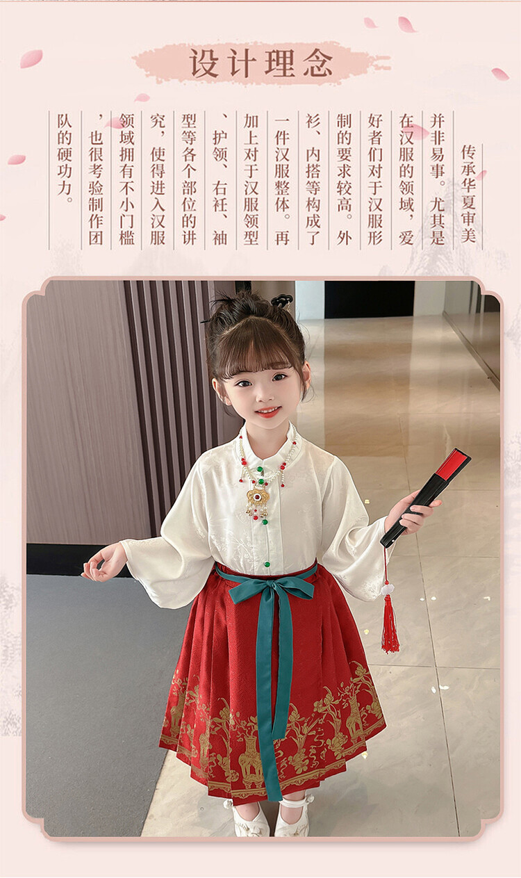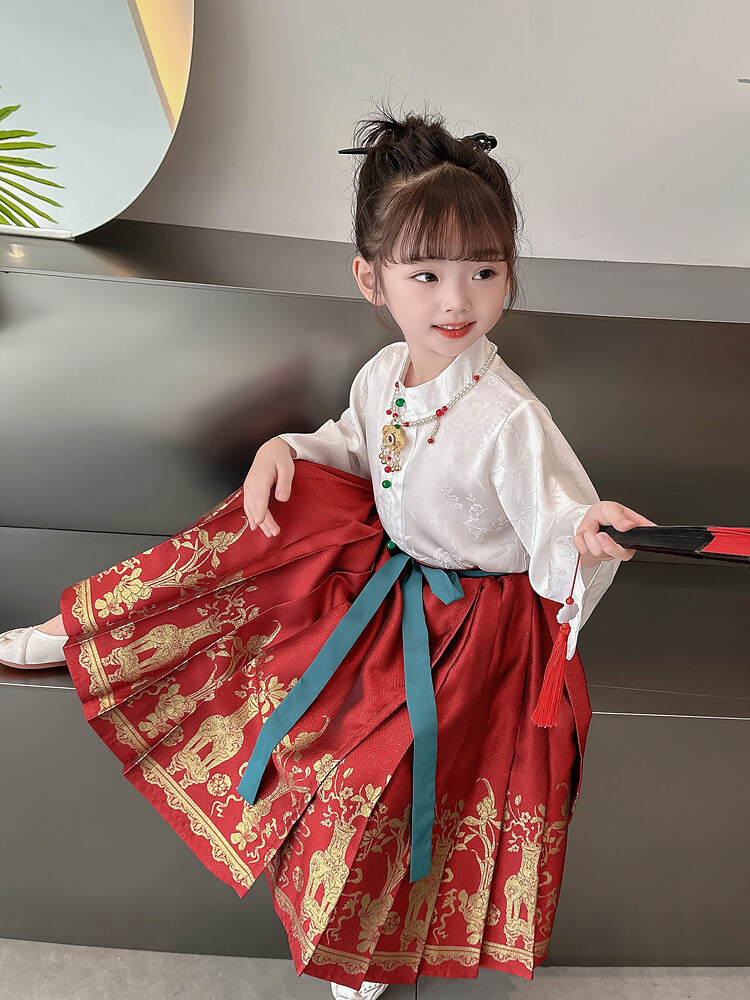 女童马面裙夏季套装中国风古装秋款女孩儿童汉服唐装2023新款秋季