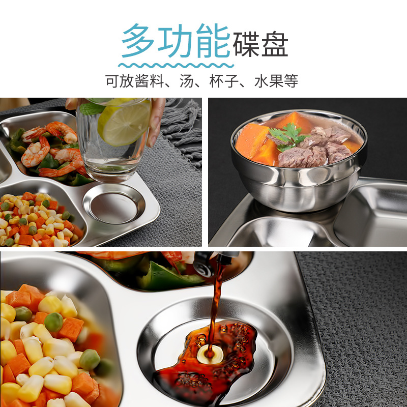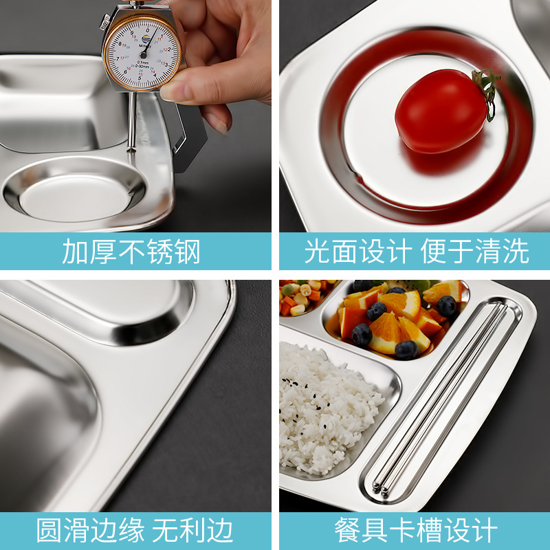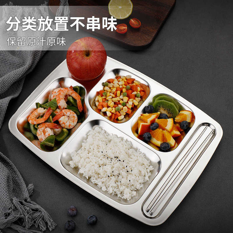 不锈钢快餐盘学校食堂机关单位分格餐盘五格六格饭菜盘加深成人用
