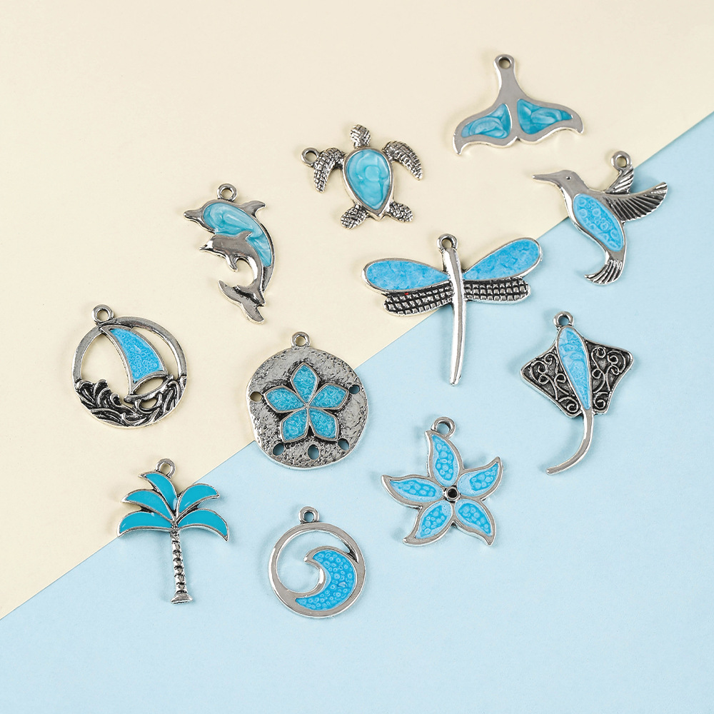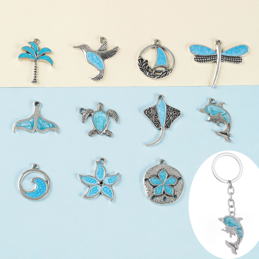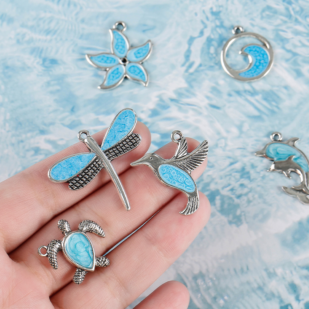 跨境热卖滴油蓝色动物系列义乌配饰海豚蜻蜓手链项链饰品diy材料