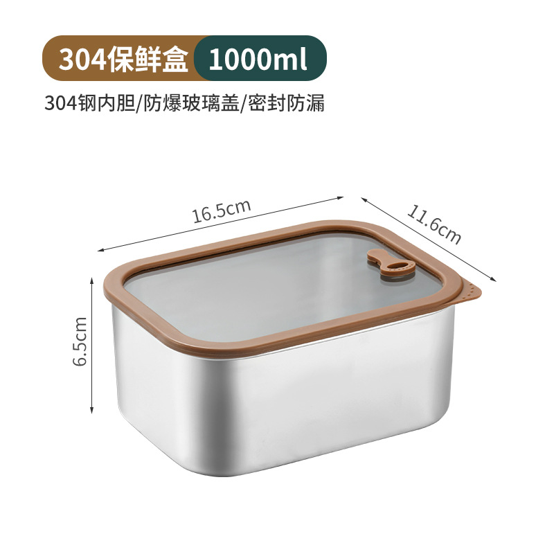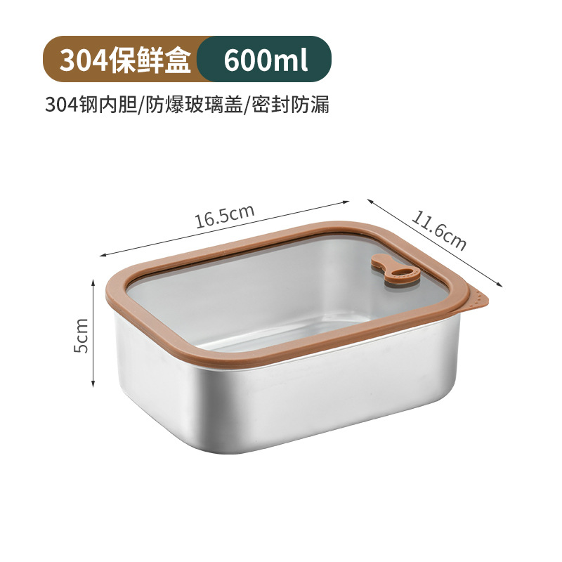 304不锈钢保鲜盒长方形带玻璃盖饭盒备菜盘冰箱密封午餐便当盒