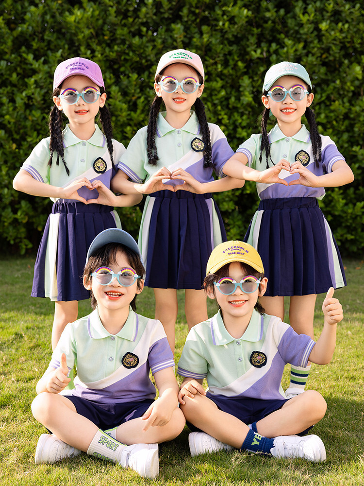 幼儿园园服夏装纯棉学院毕业照班服套装夏季短袖运动会小学生校服