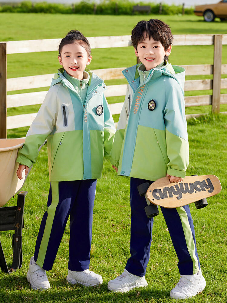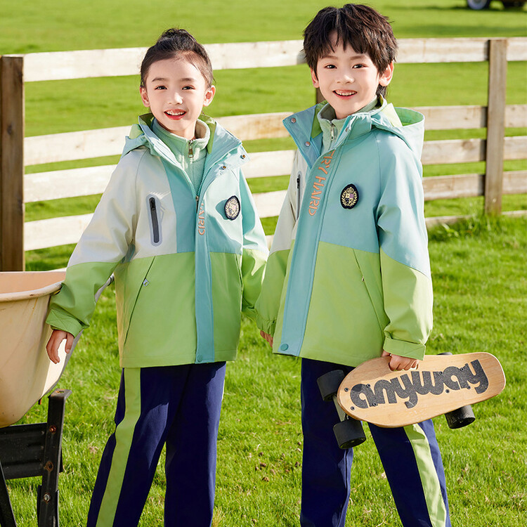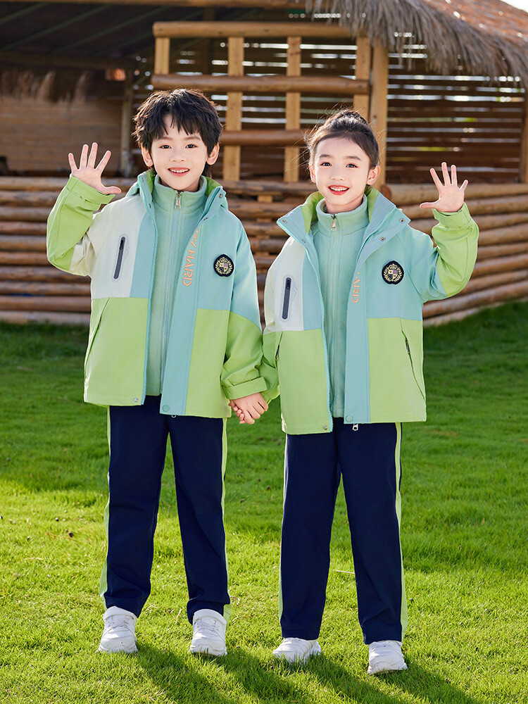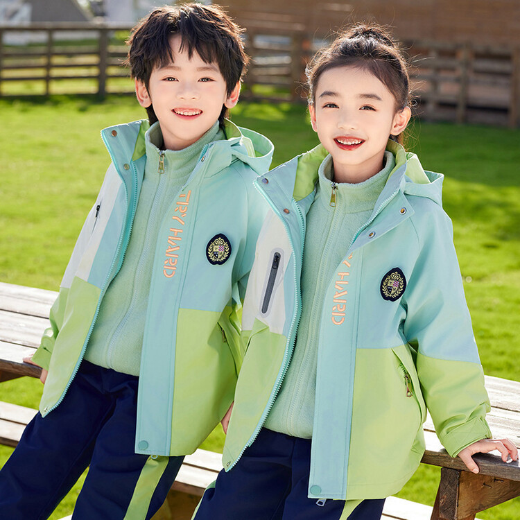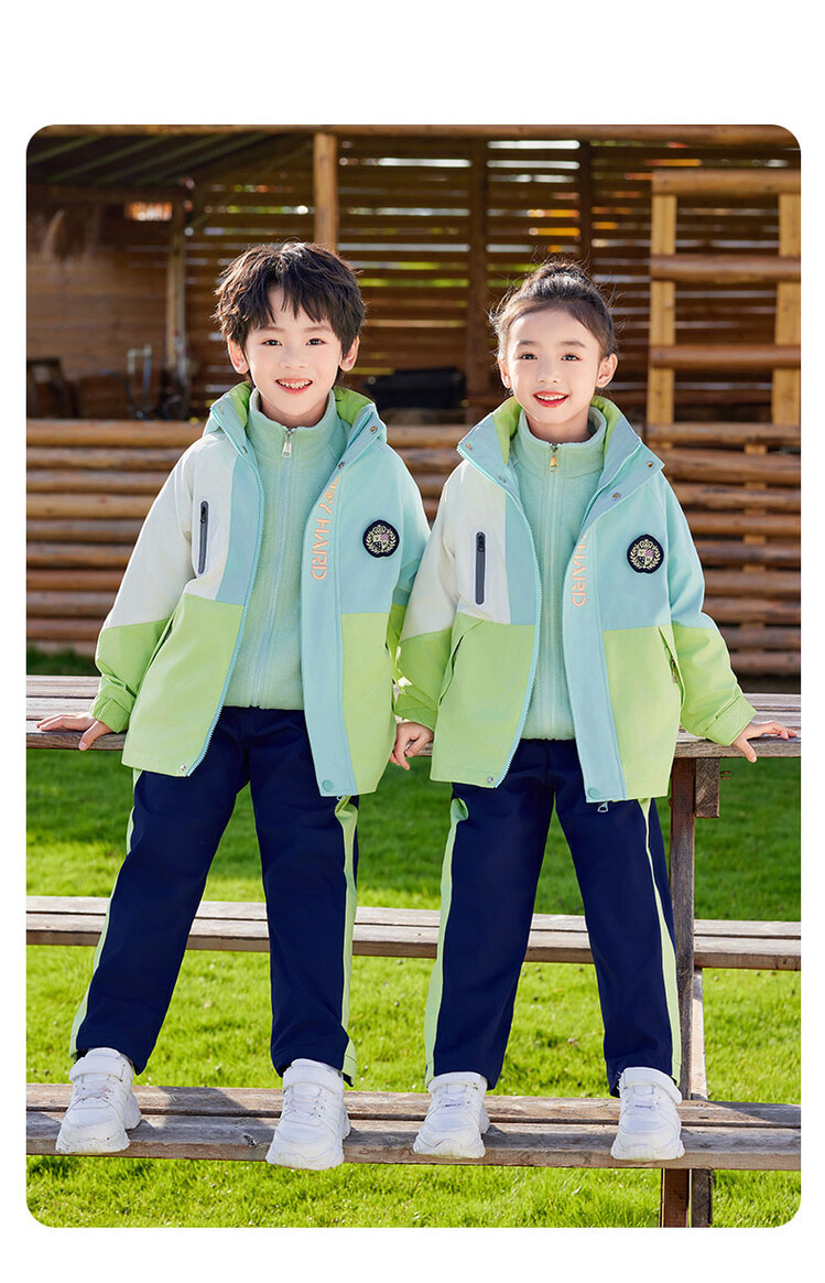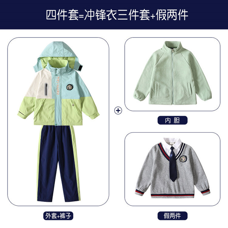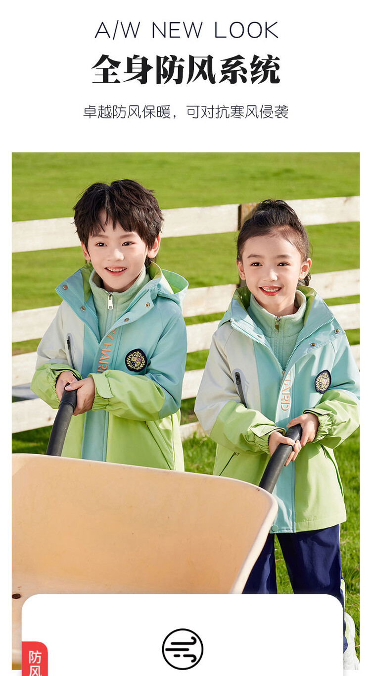 幼儿园园服春秋装加厚可拆卸冲锋衣三件套小学生校服冬季防风班服