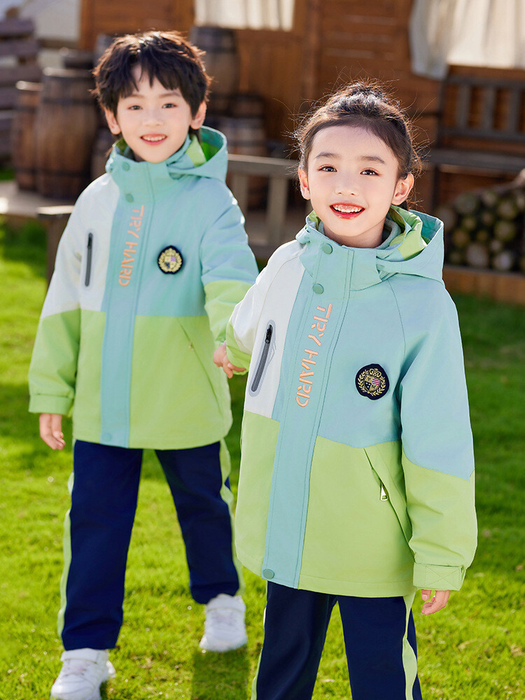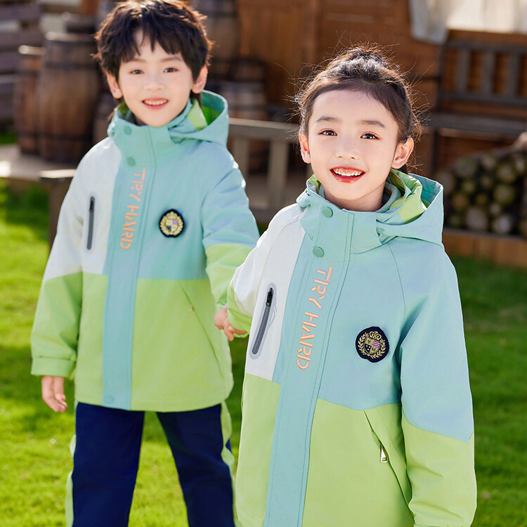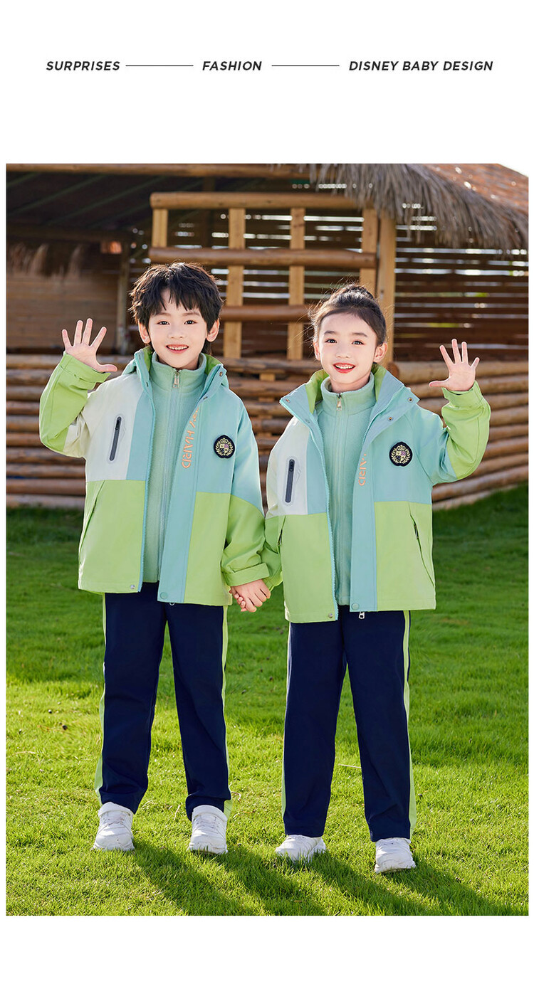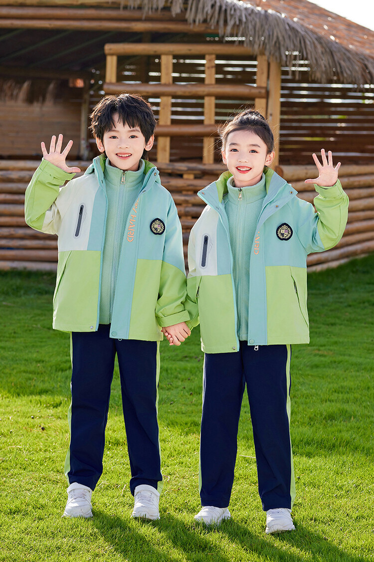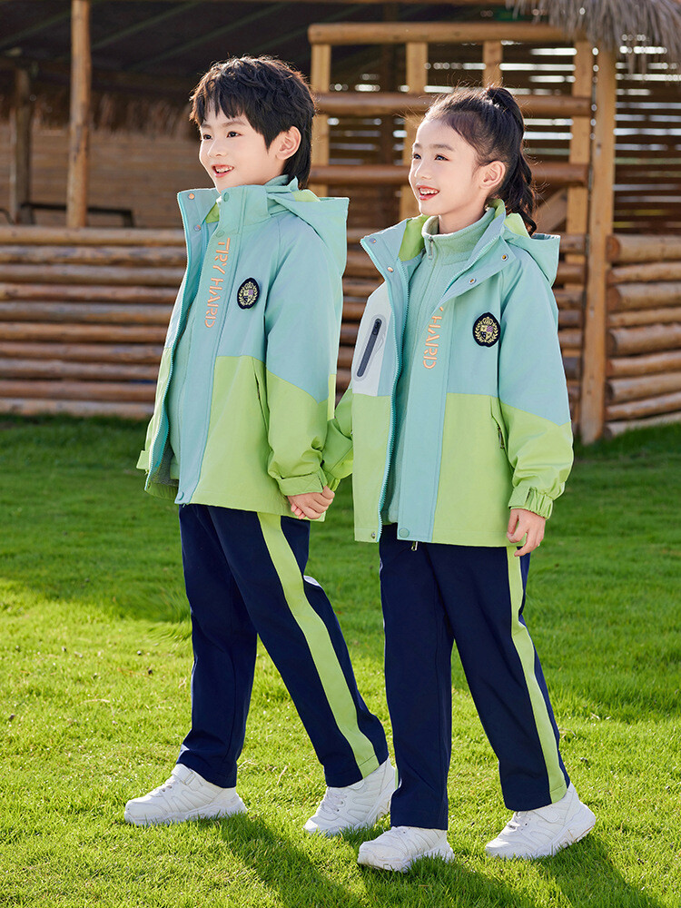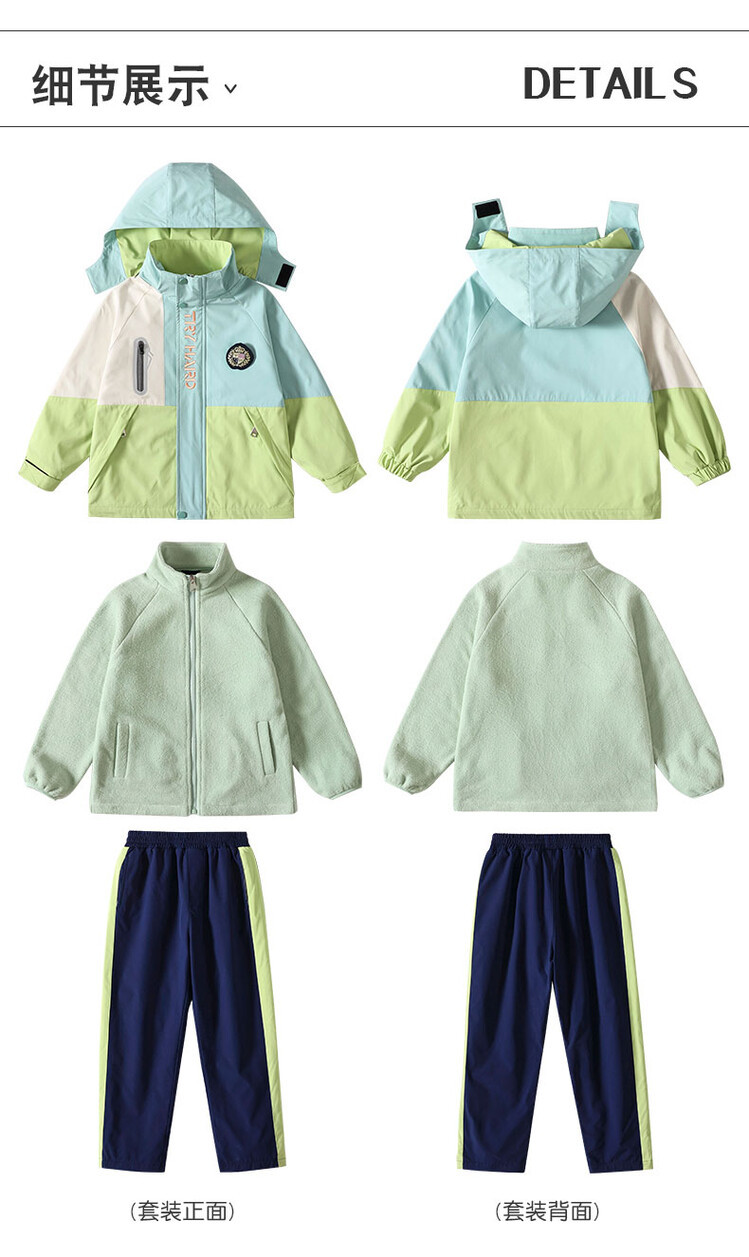 幼儿园园服春秋装加厚可拆卸冲锋衣三件套小学生校服冬季防风班服