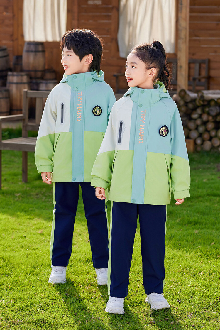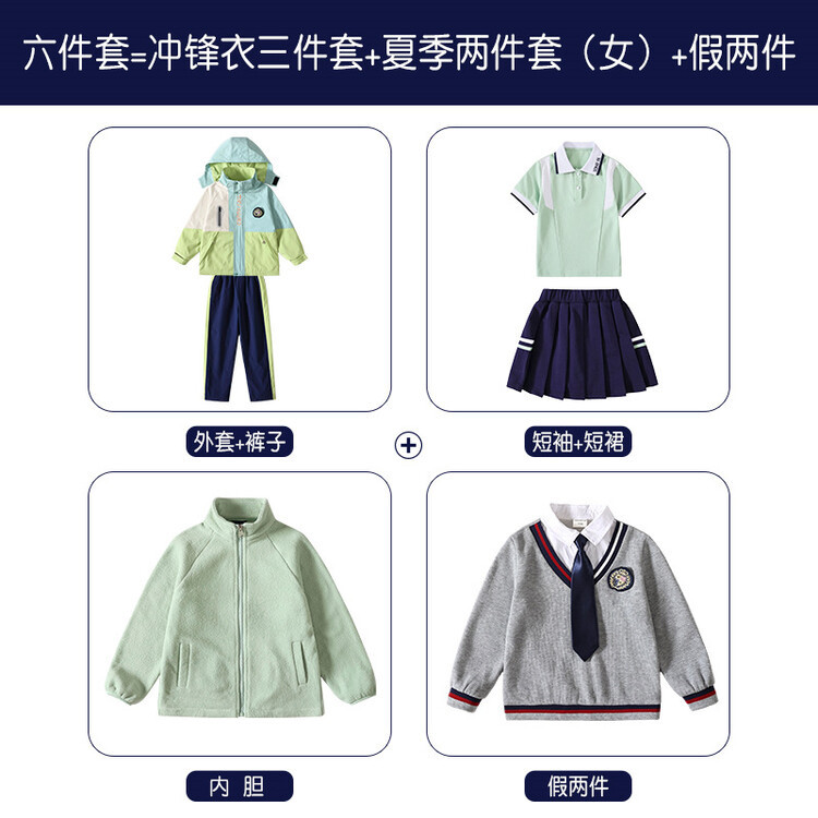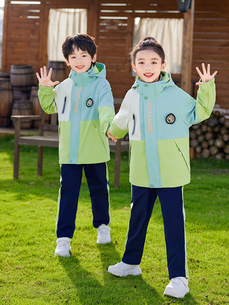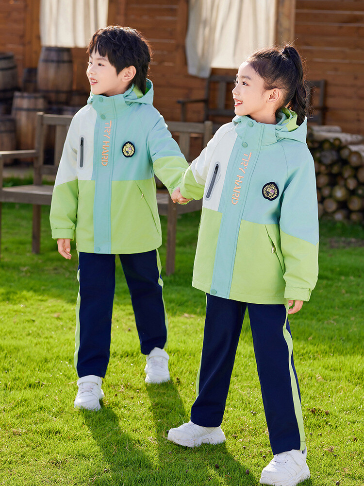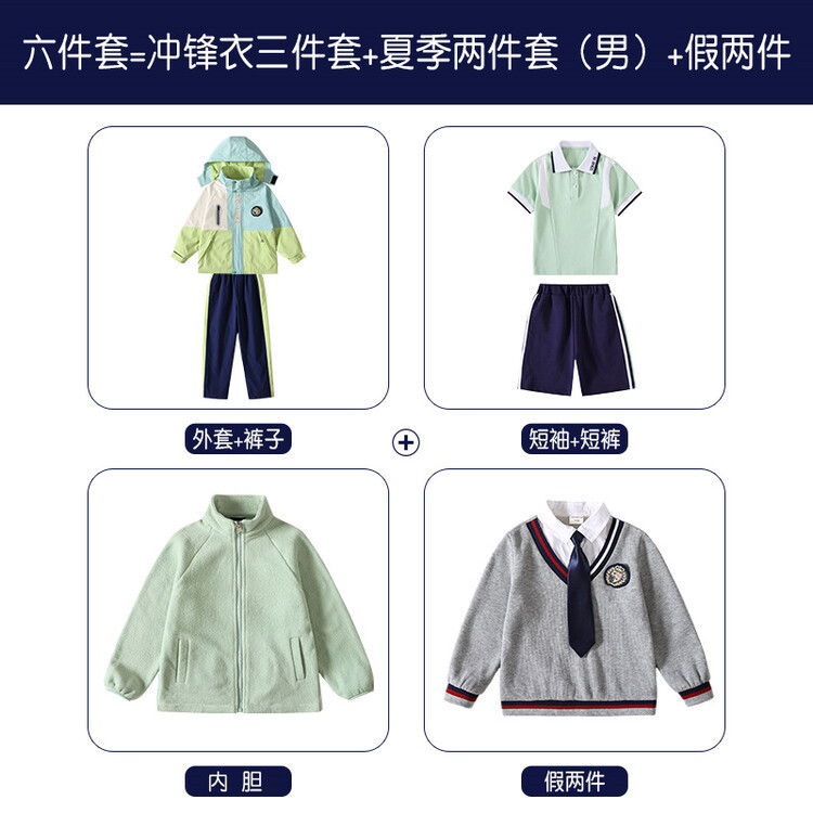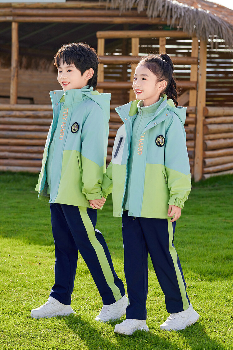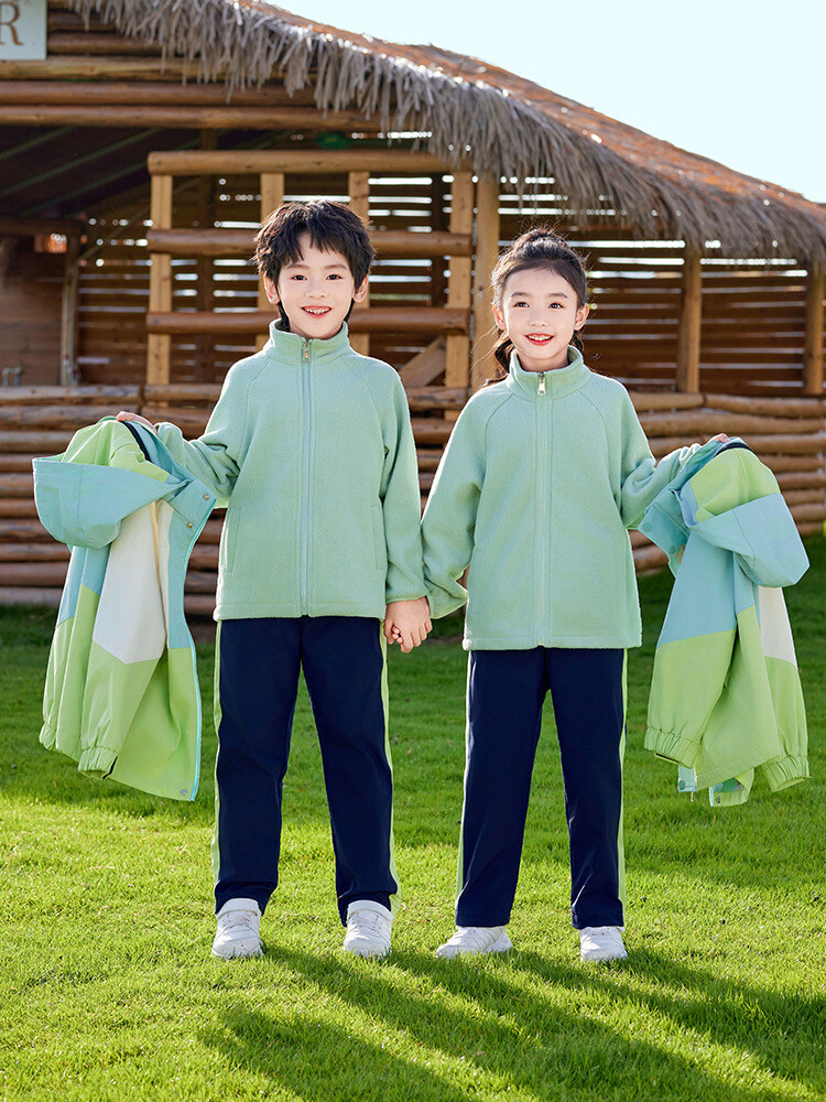 幼儿园园服春秋装加厚可拆卸冲锋衣三件套小学生校服冬季防风班服