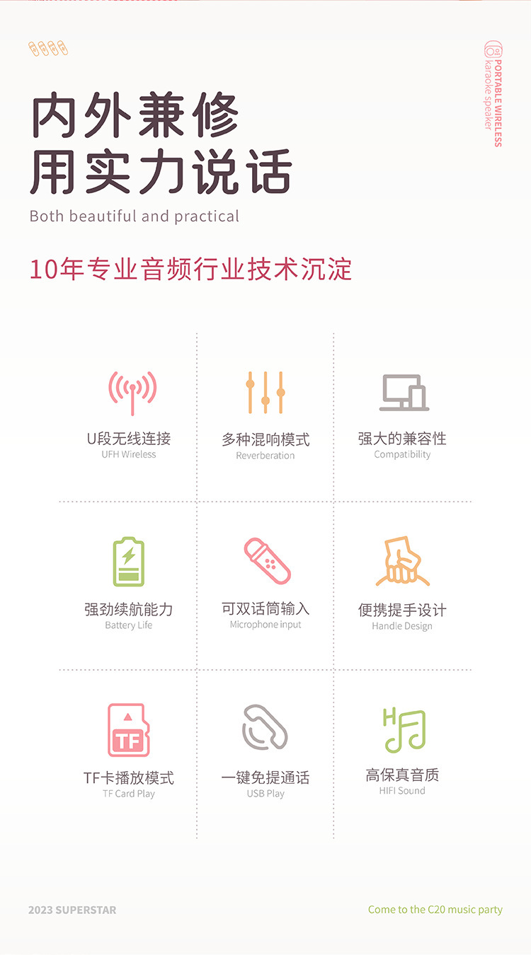 复古双麦蓝牙音箱 C20PLUS手提女生礼物无线话筒便携家用K歌宝