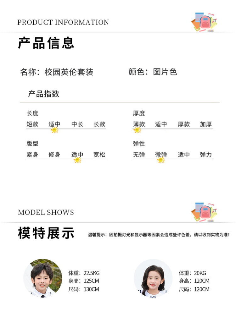 幼儿园园服夏装英伦学院风儿童合唱演出班服套装毕业照小学生校服