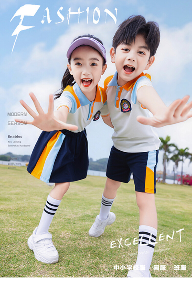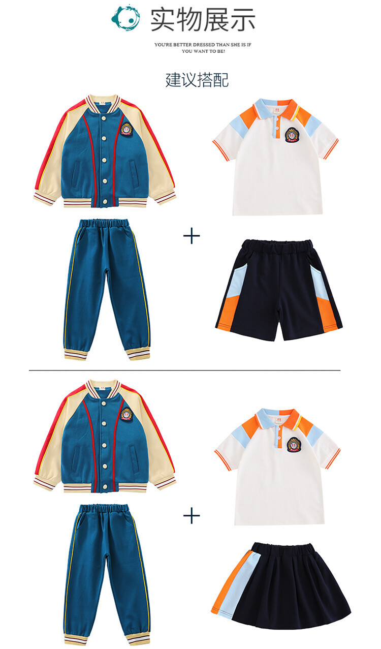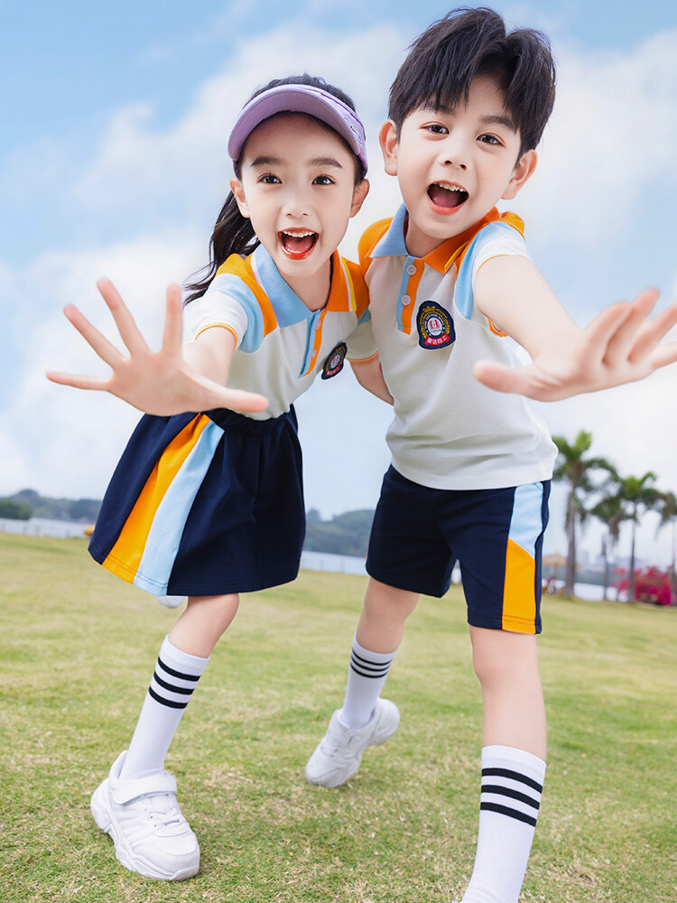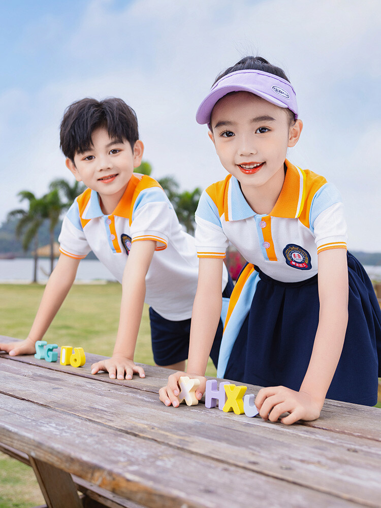 幼儿园园服夏装儿童运动学院风班服夏季纯棉一年级小学生校服套装