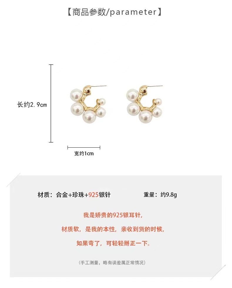 甜美小清新珍珠耳钉法式设计感几何C型耳环ins风潮流时尚耳饰批发