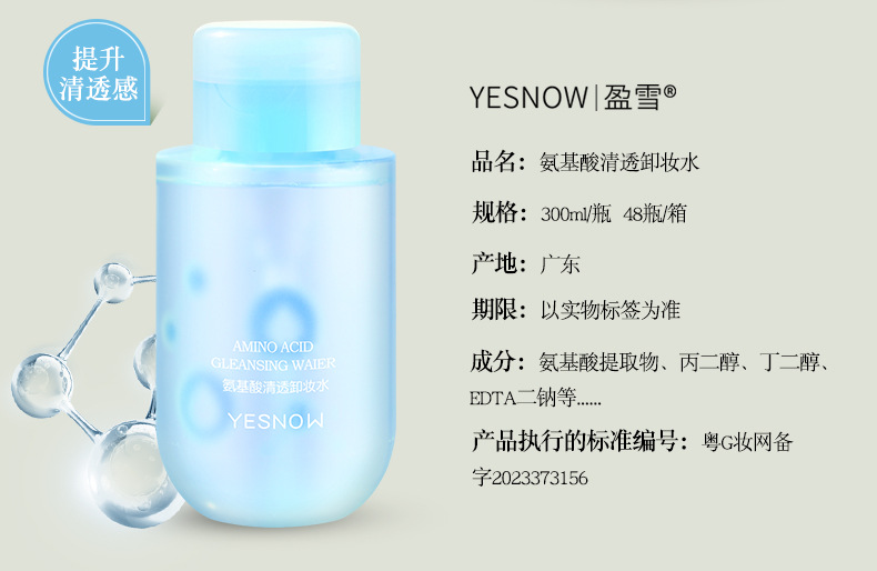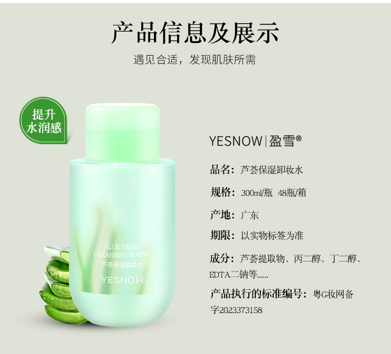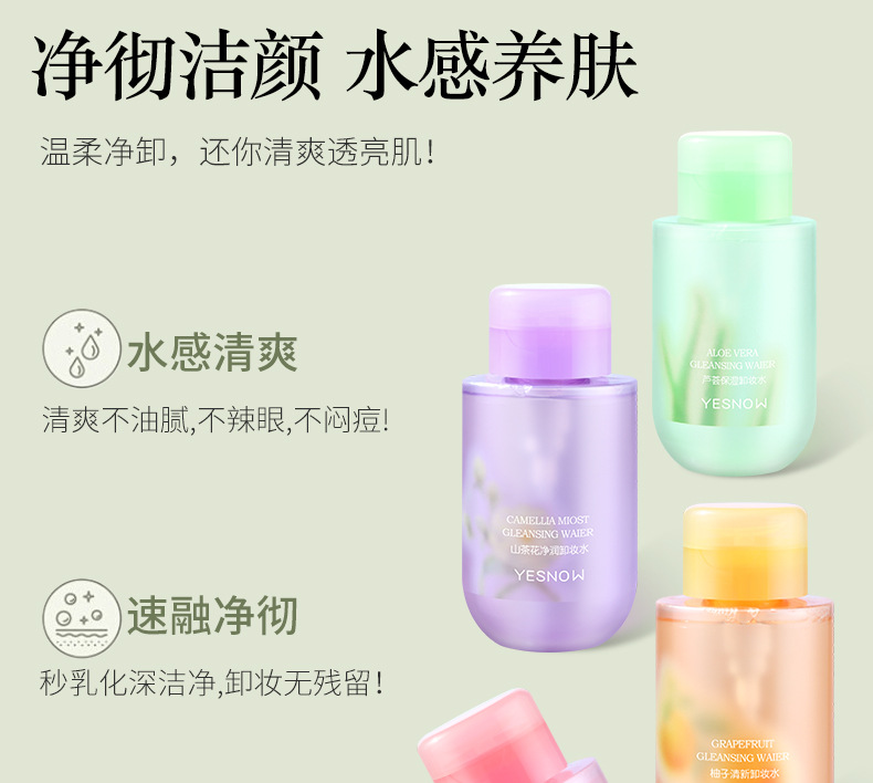 批发300ml卸妆水植萃精华芦荟氨基酸按压式脸部温和清洁卸妆液