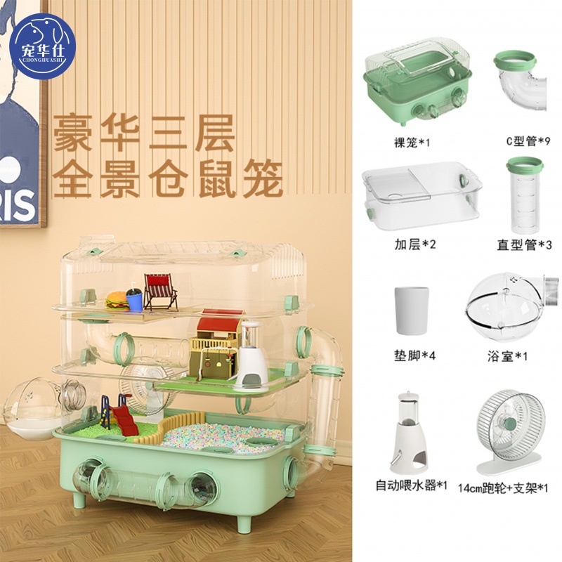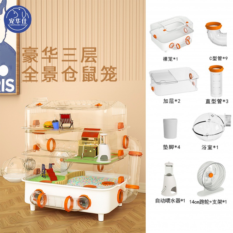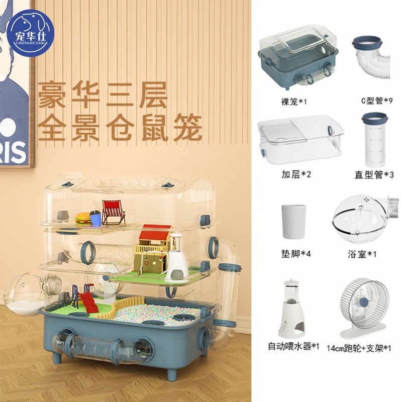 仓鼠笼全套加高加大仓鼠饲养箱亚克力金丝熊蜜袋鼯仓鼠高透仓鼠笼