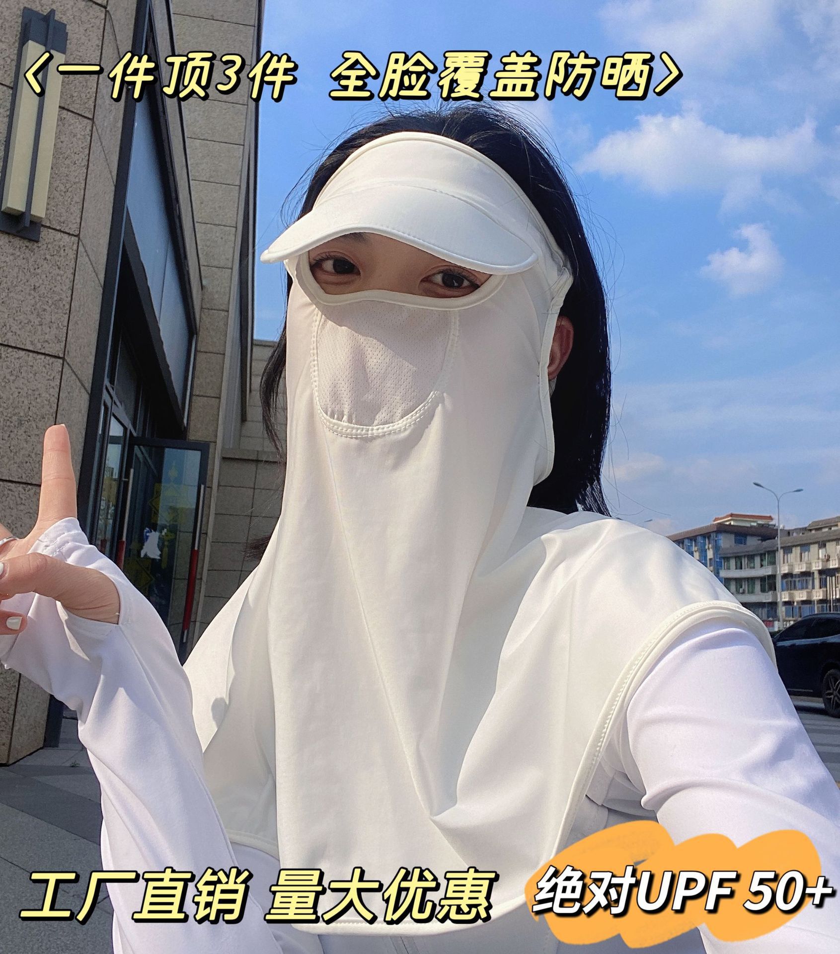 防晒面罩遮全脸帽檐一体防晒帽女夏季防紫外线脸基尼遮阳护脖口罩