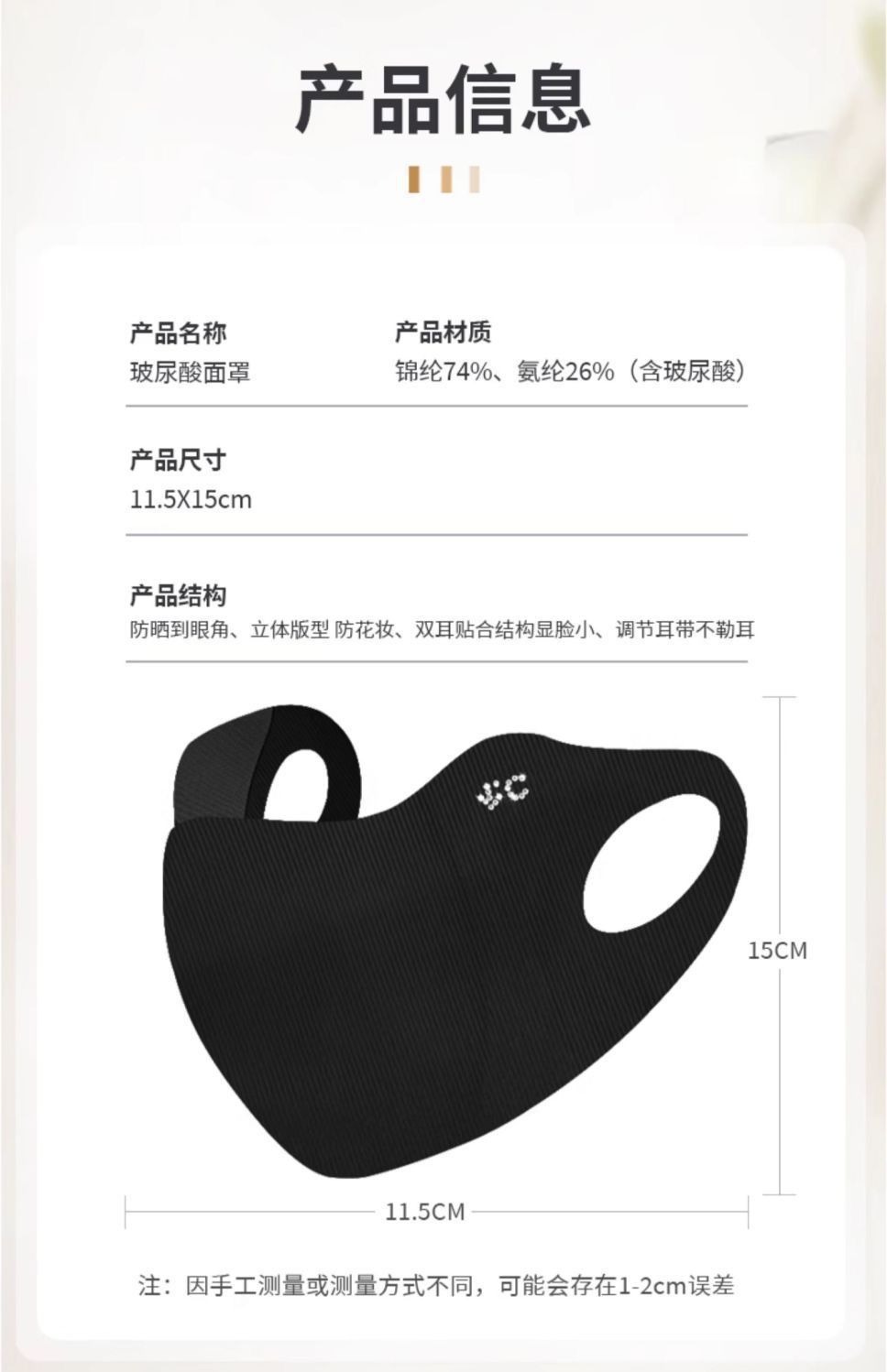 玻尿酸面罩保湿锁水防晒口罩冰丝女护眼角透气3d无痕防紫外线脸罩