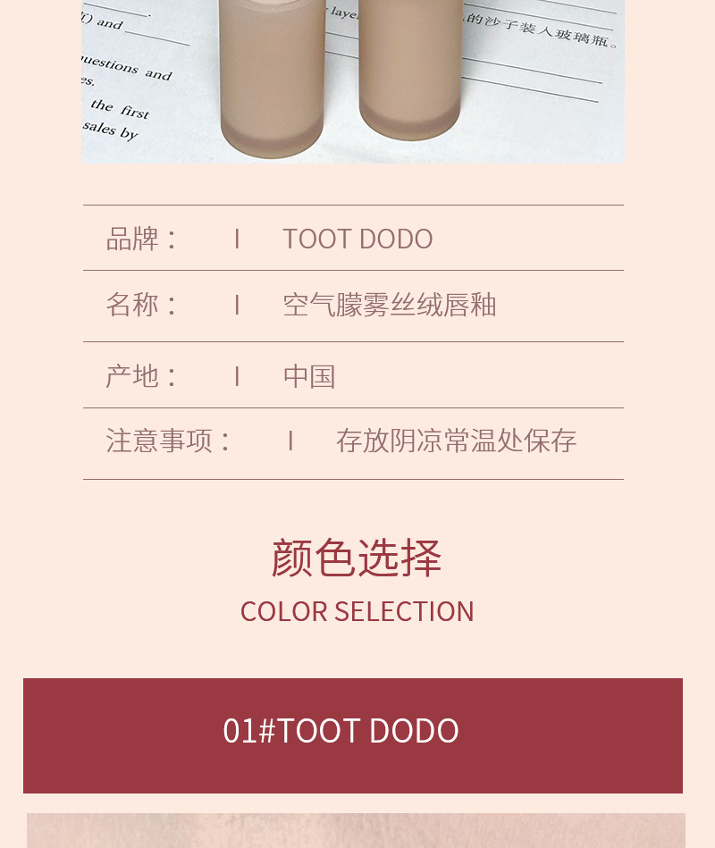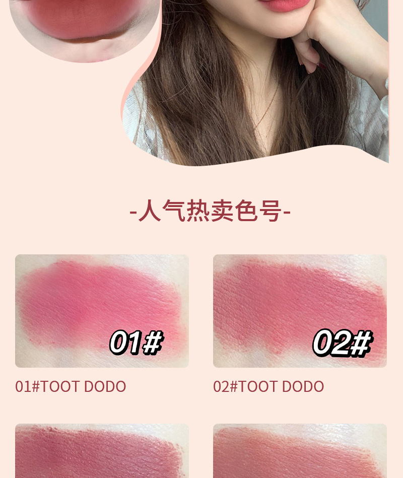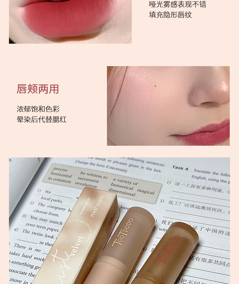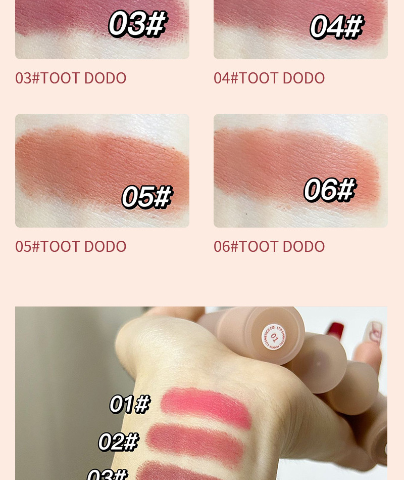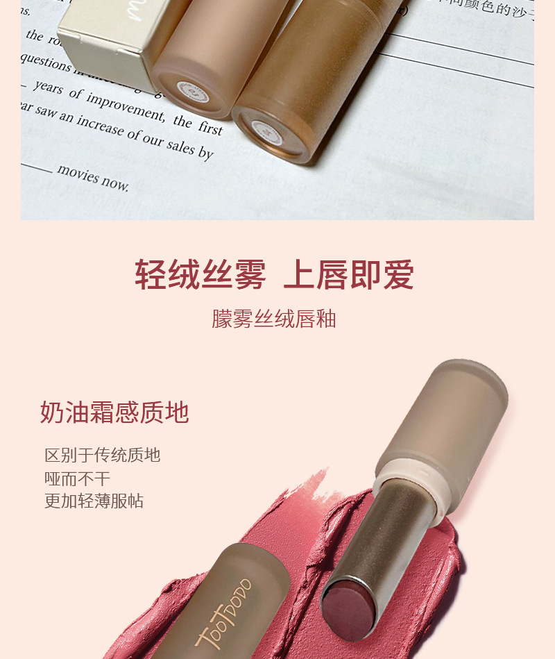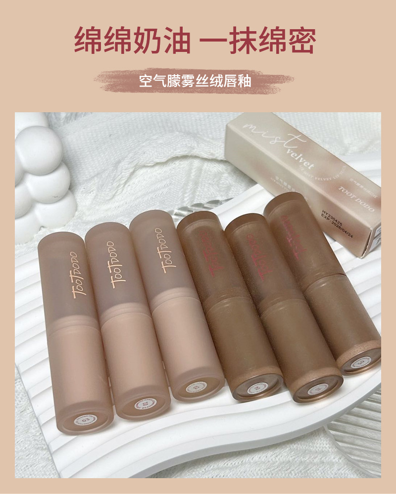 Toot Dodo~空气朦雾丝绒口红提升气色持久不沾杯柔雾哑光裸色唇膏