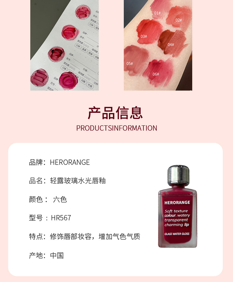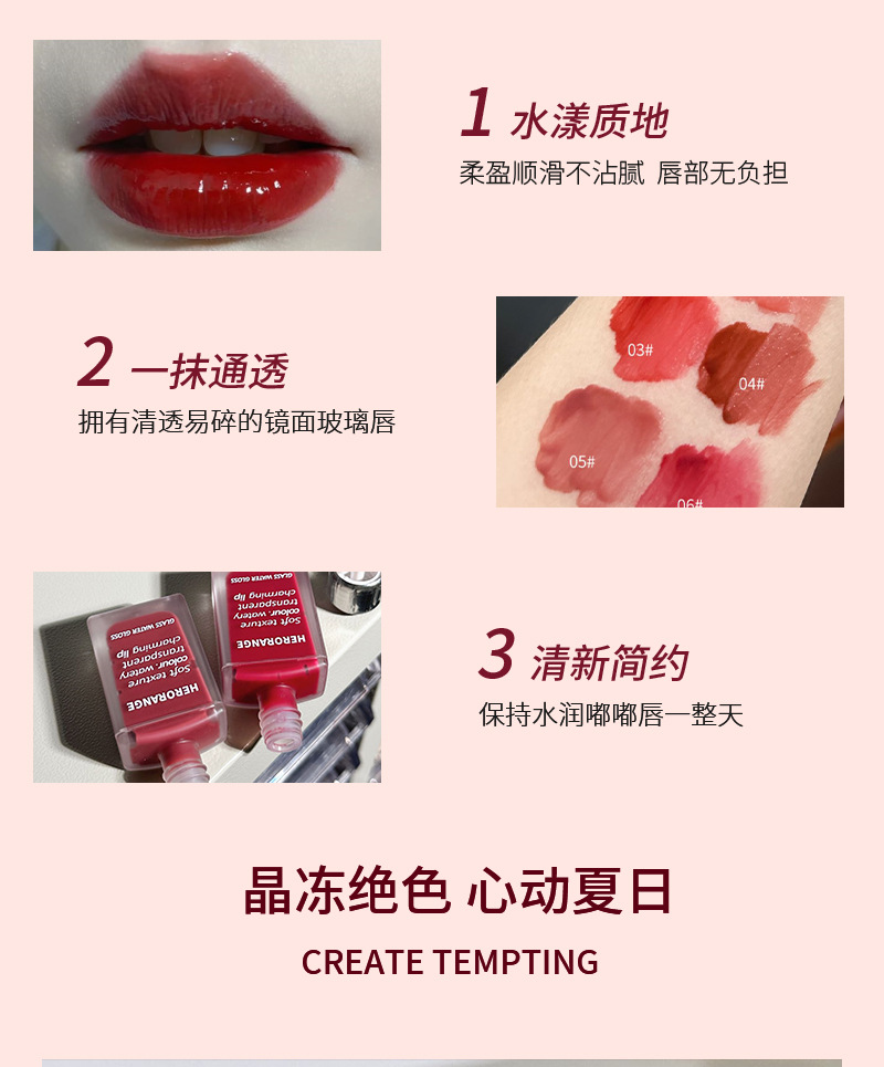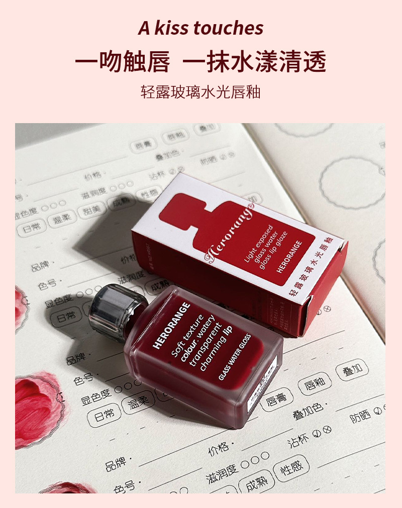 HERORANGE~果汁水光镜面唇釉轻盈保湿水润玻璃唇彩学生党平价彩妆