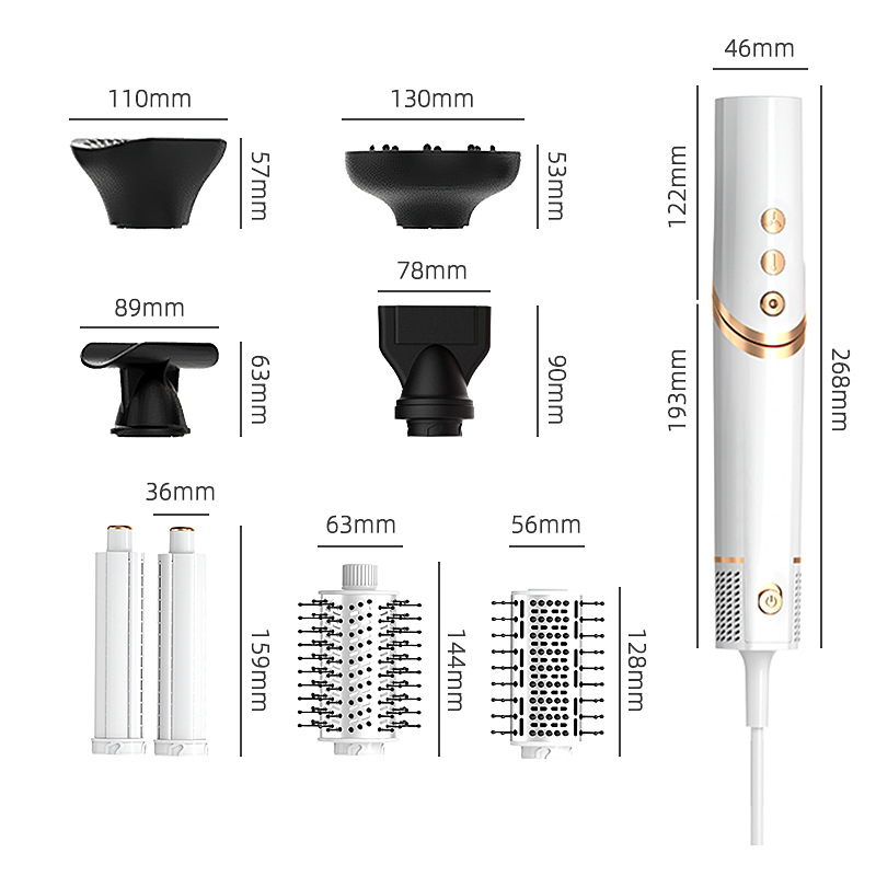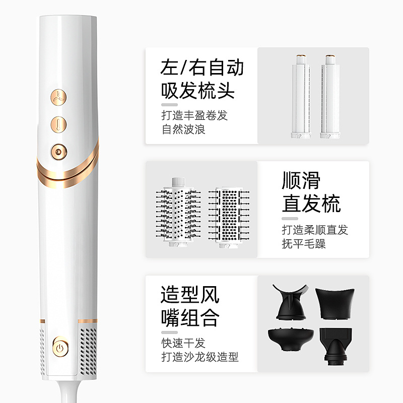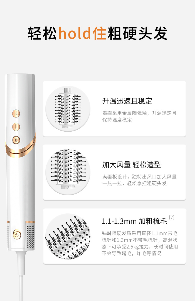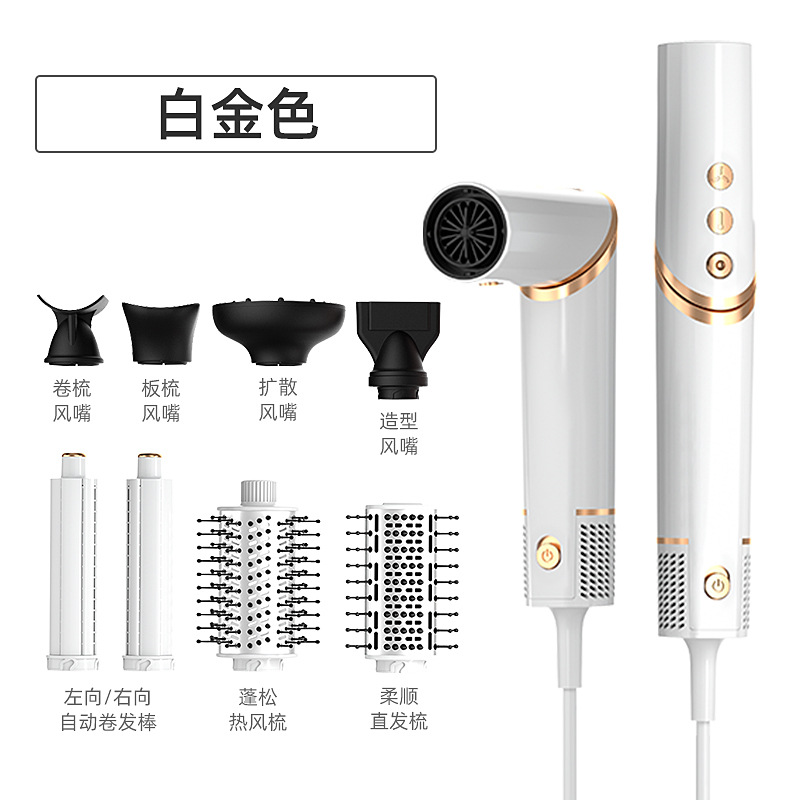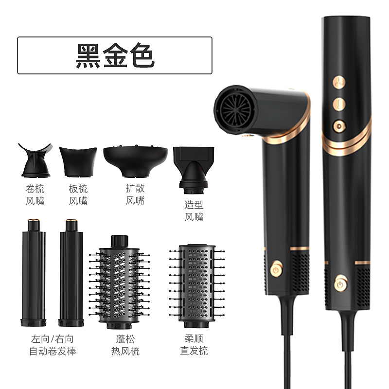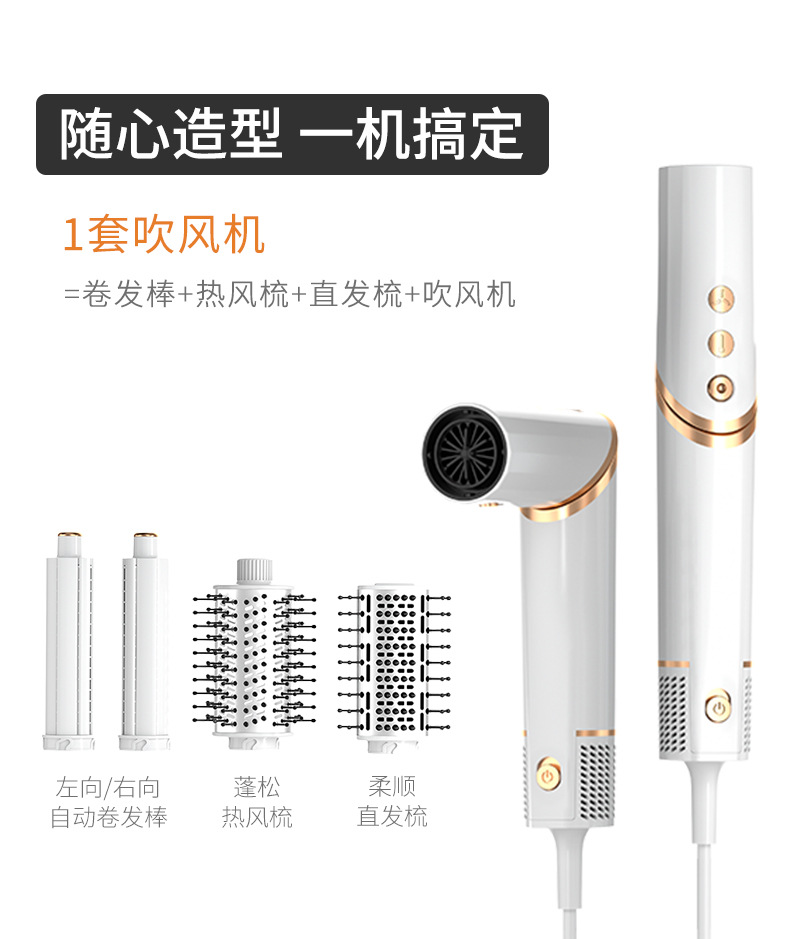 跨境亚马逊折叠吹风机负离子卷发棒多合一热风梳套装多功能吹风梳