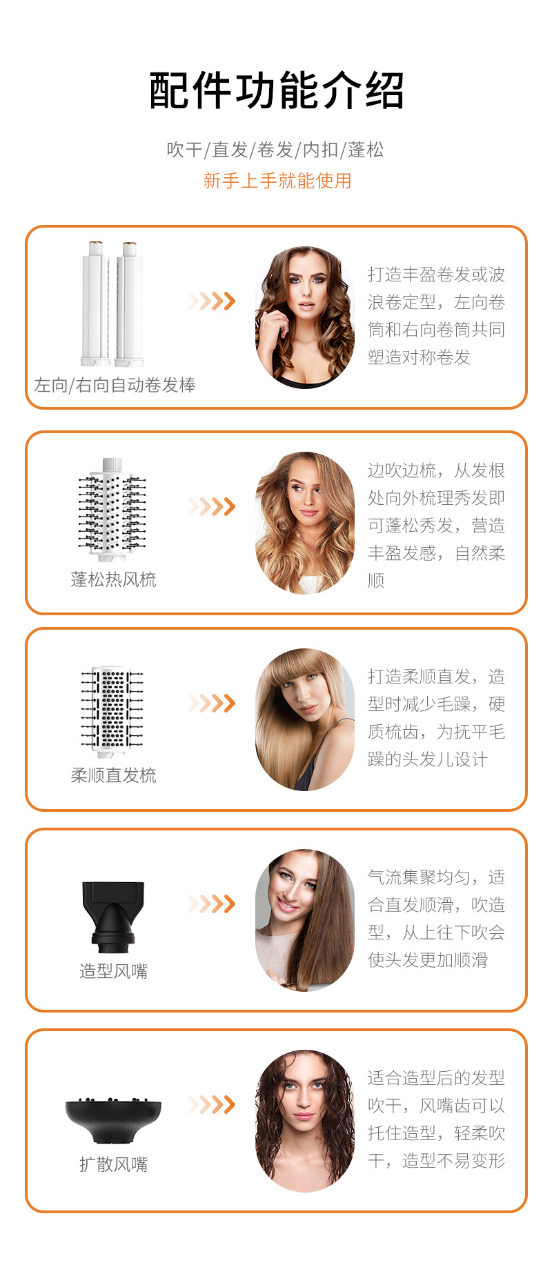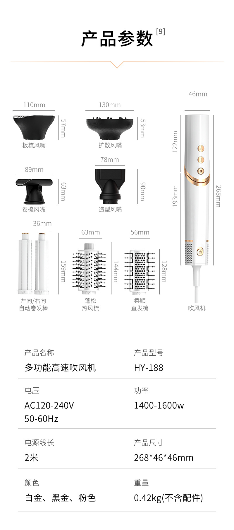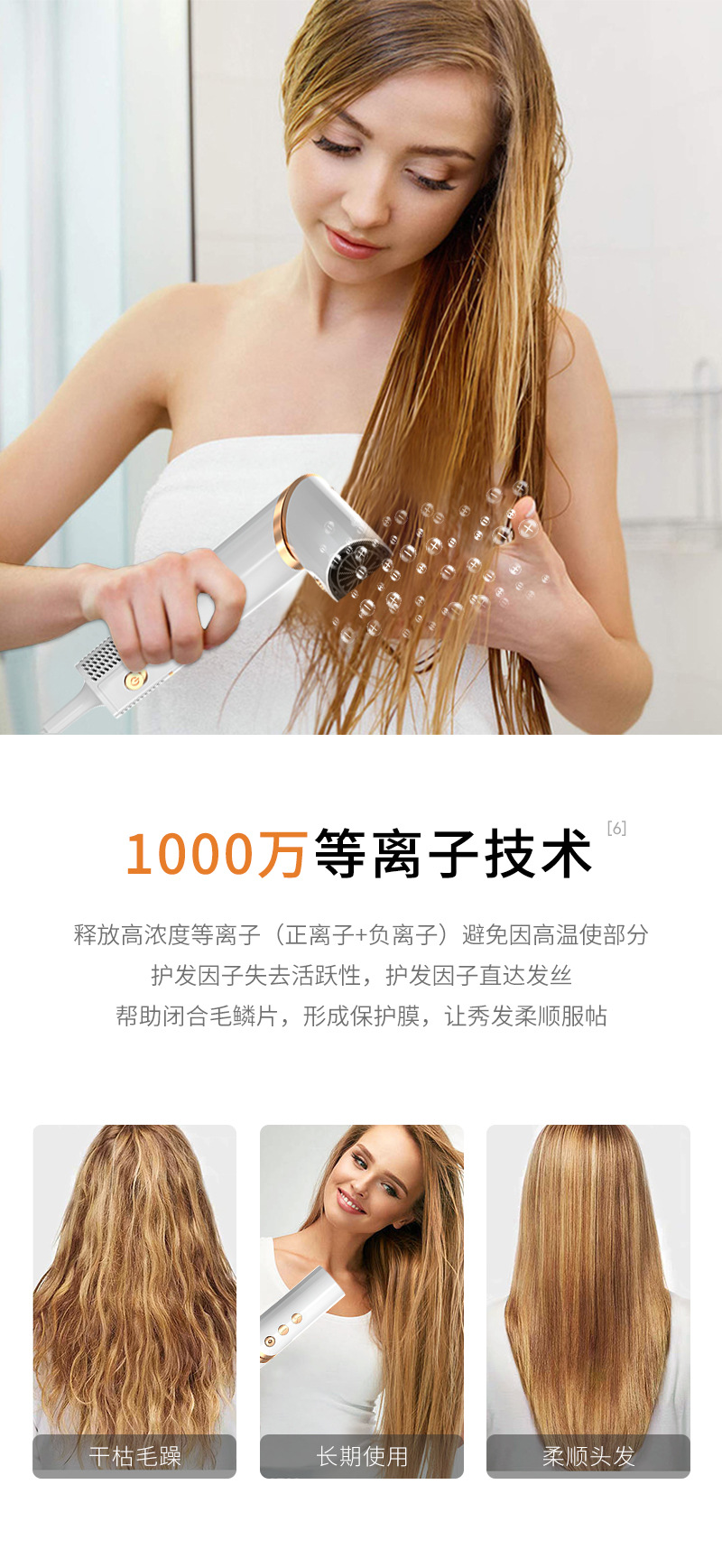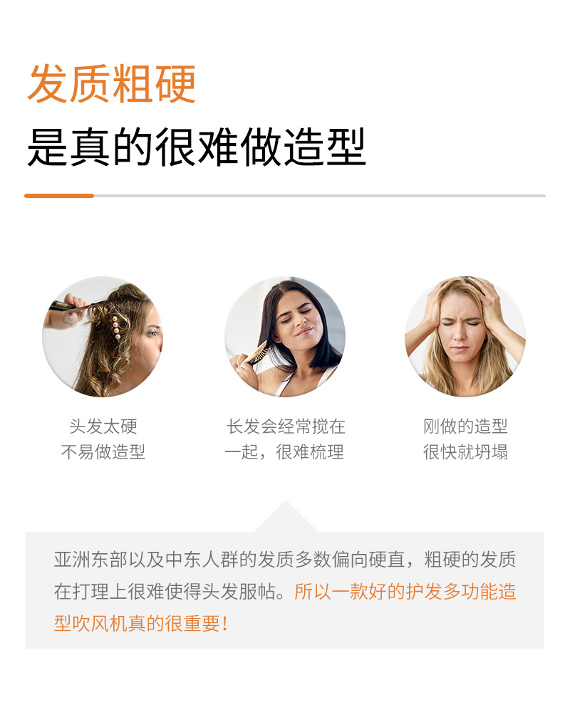 跨境亚马逊折叠吹风机负离子卷发棒多合一热风梳套装多功能吹风梳