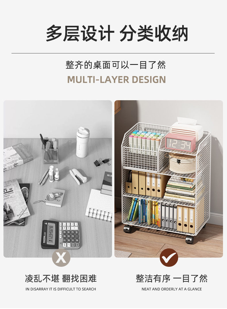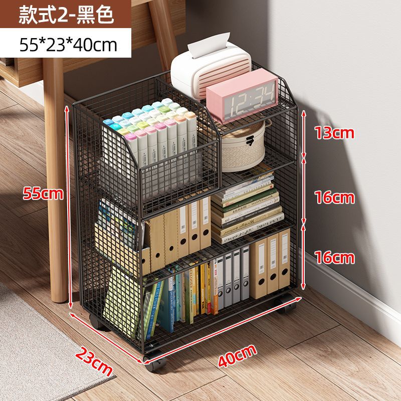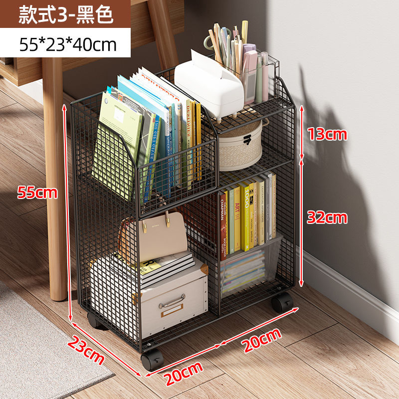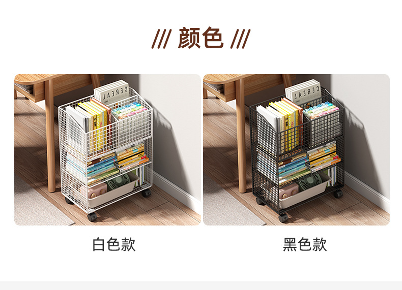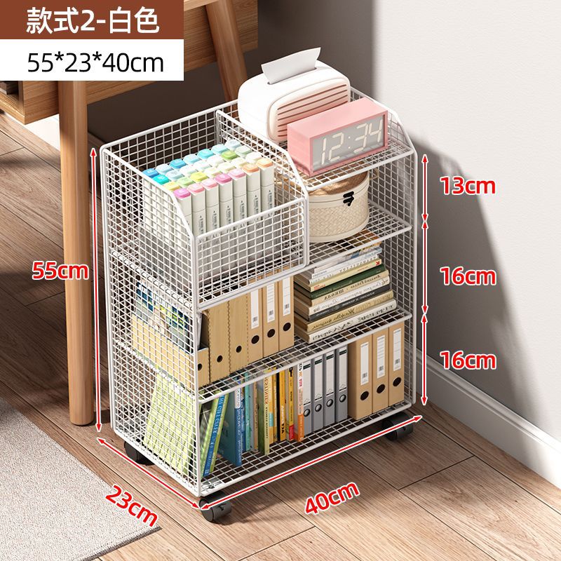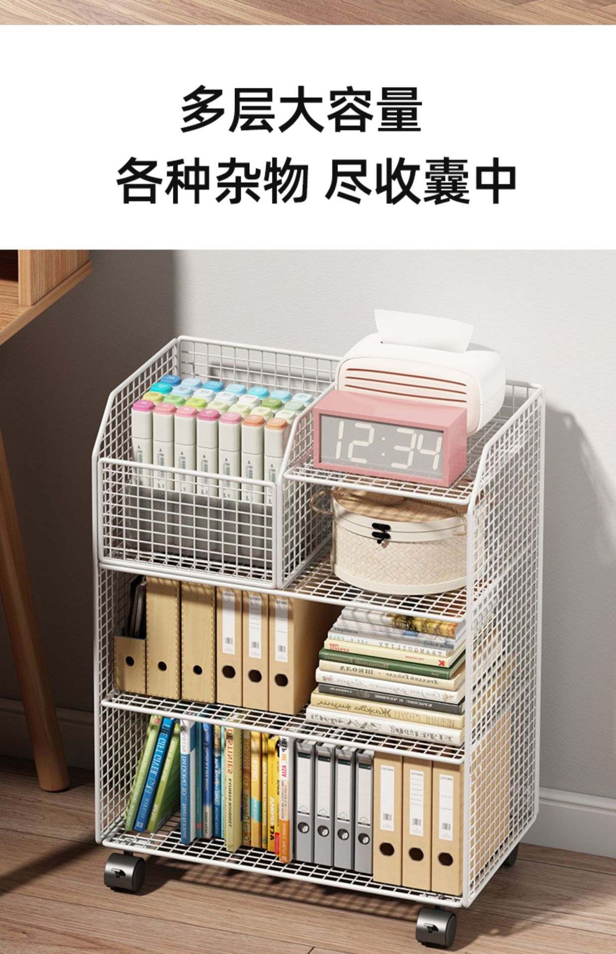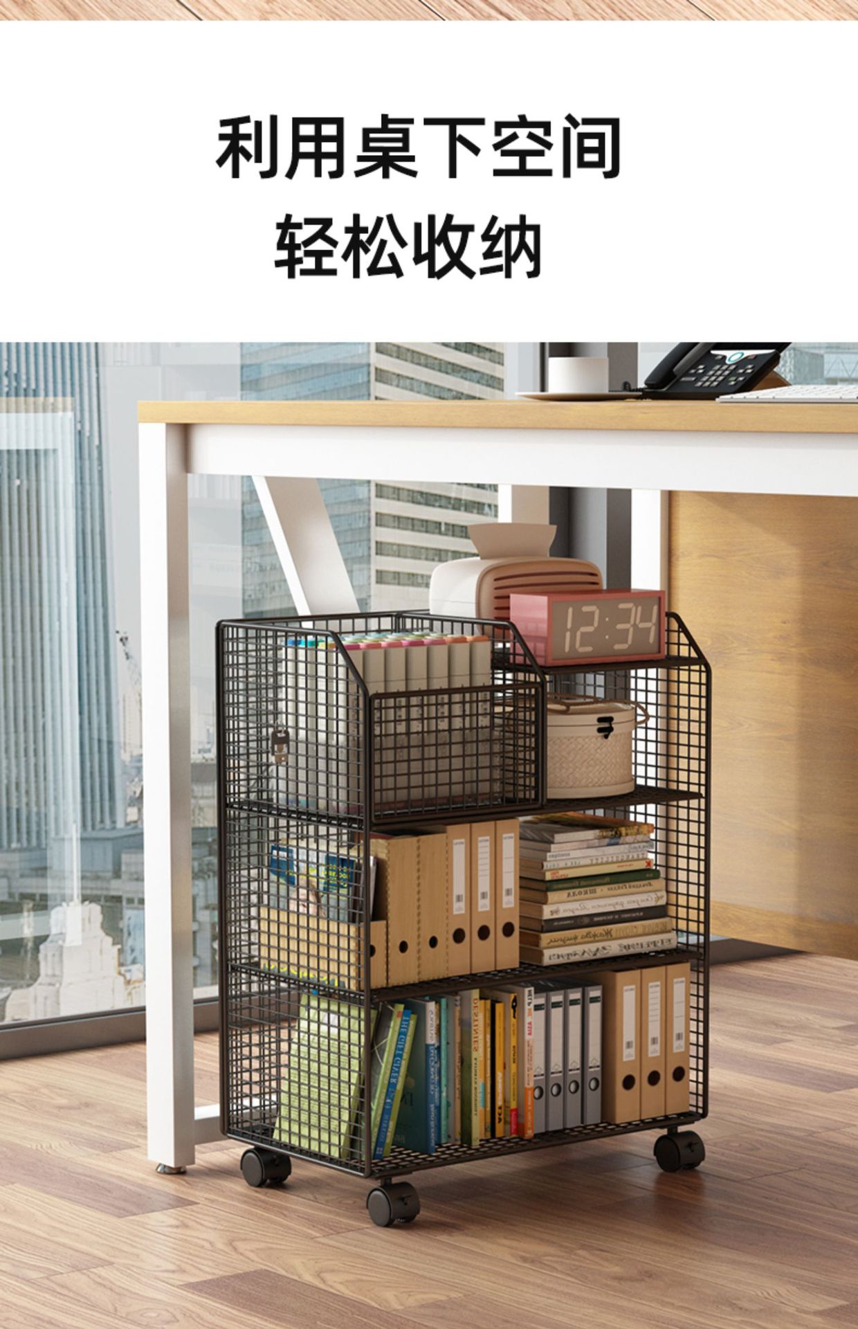 可移动桌下置物架书桌旁小书架带轮落地办公桌边推车书本收纳书柜