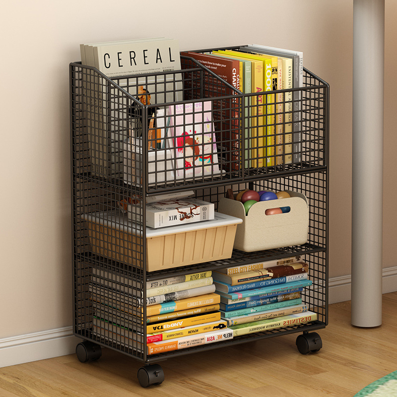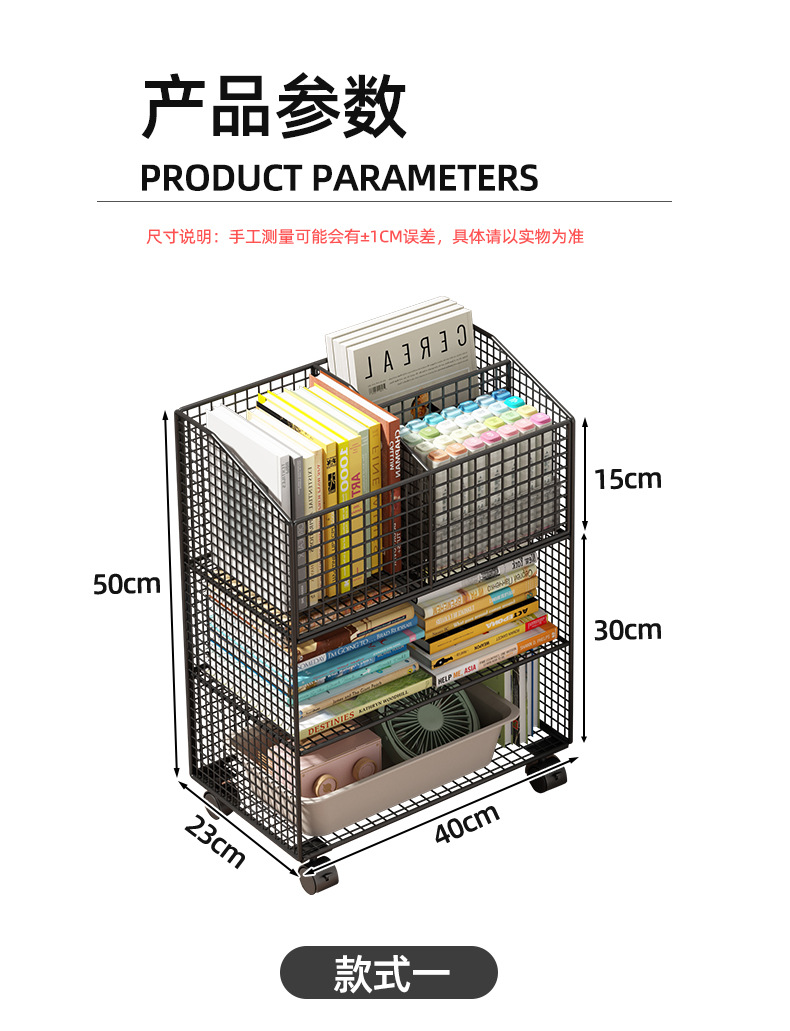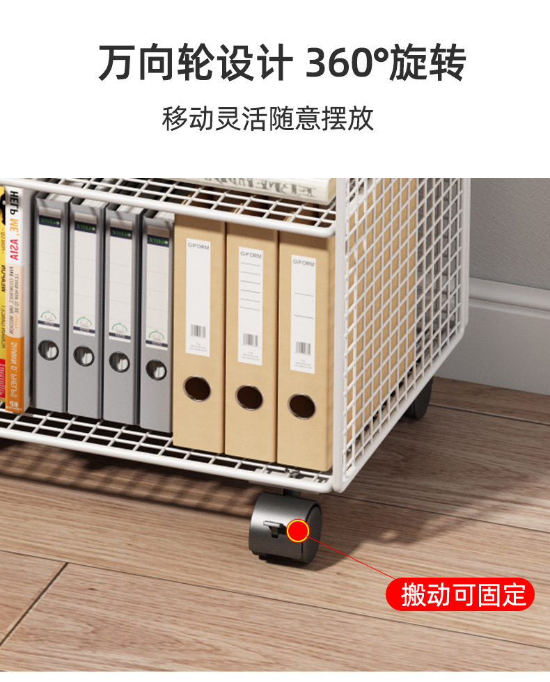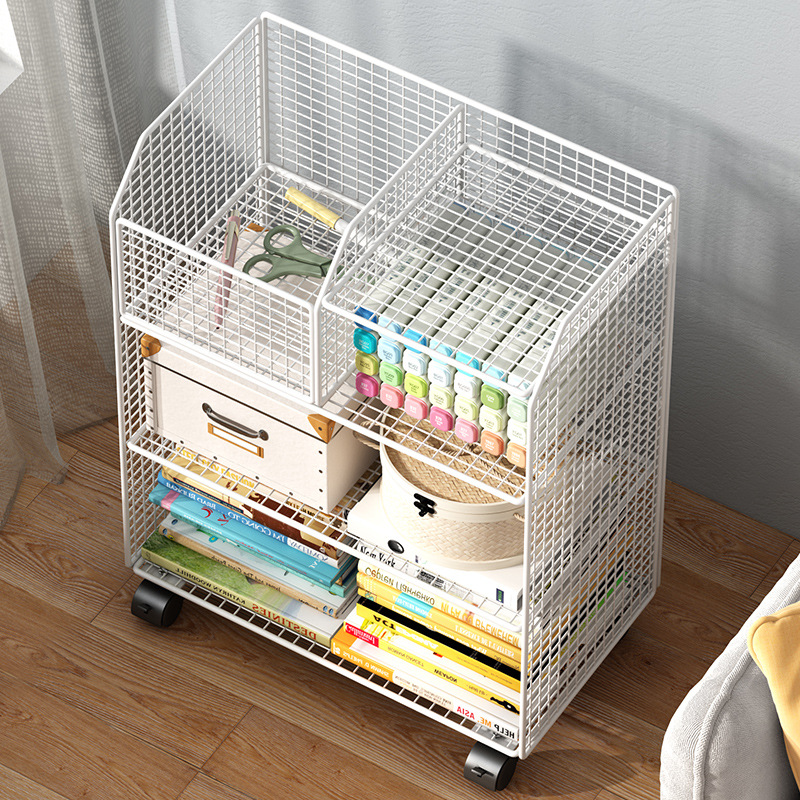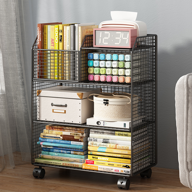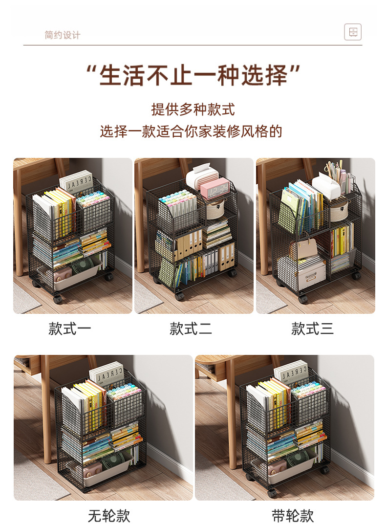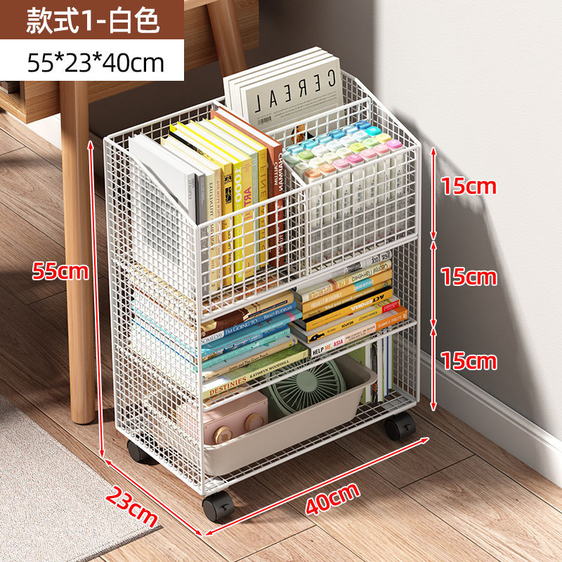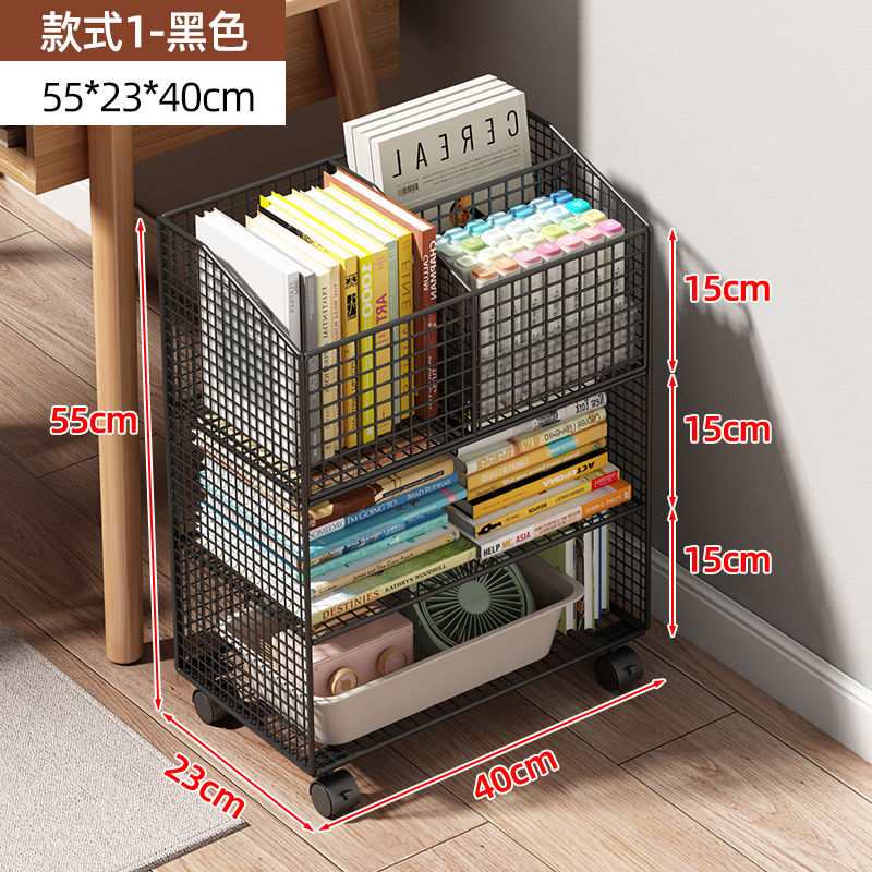 可移动桌下置物架书桌旁小书架带轮落地办公桌边推车书本收纳书柜