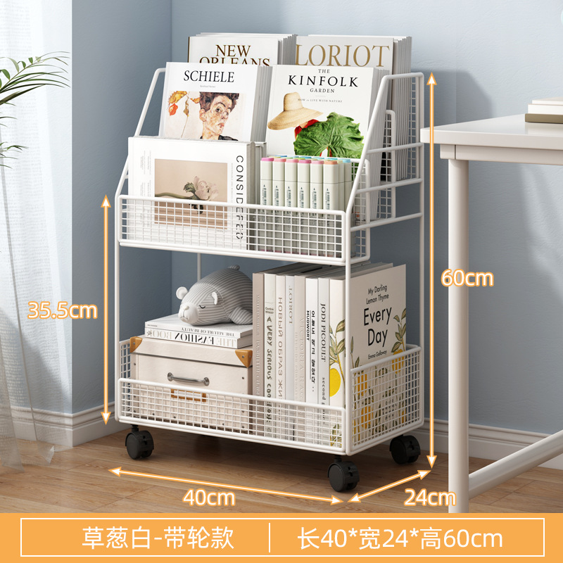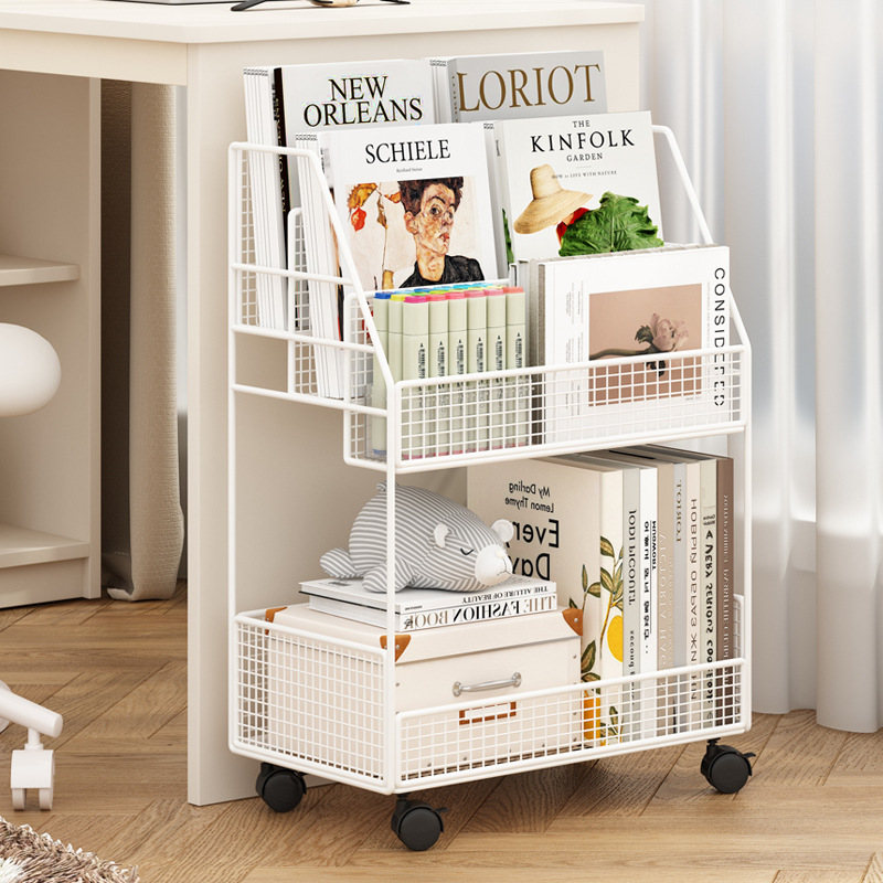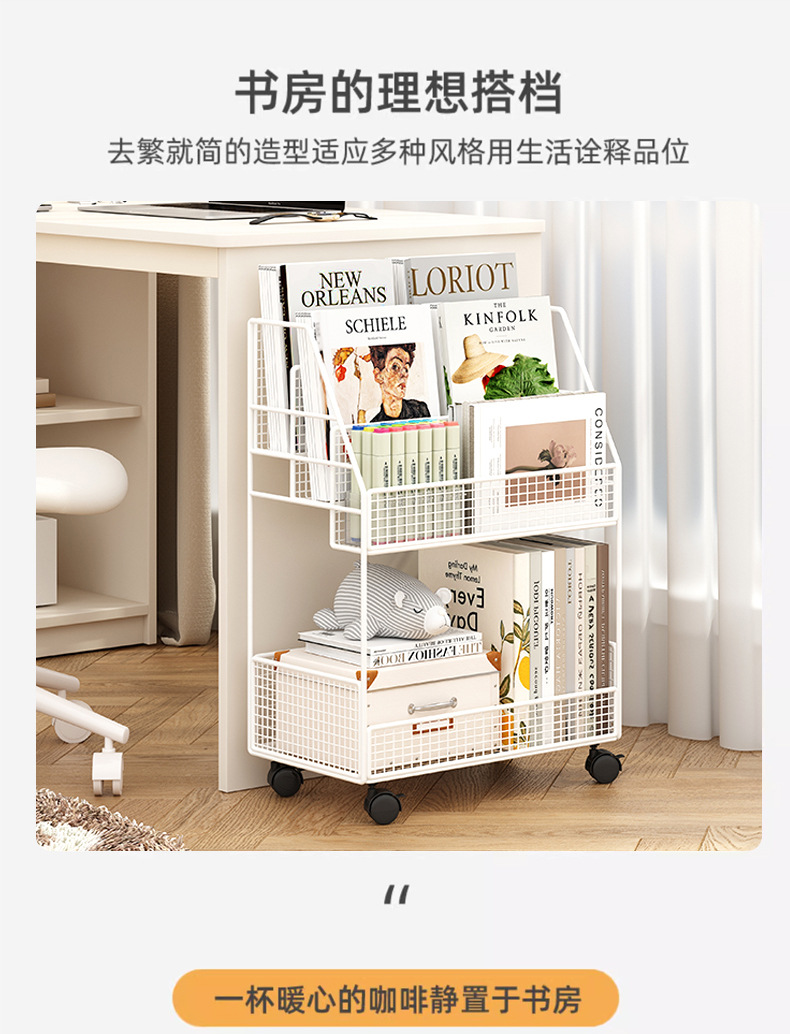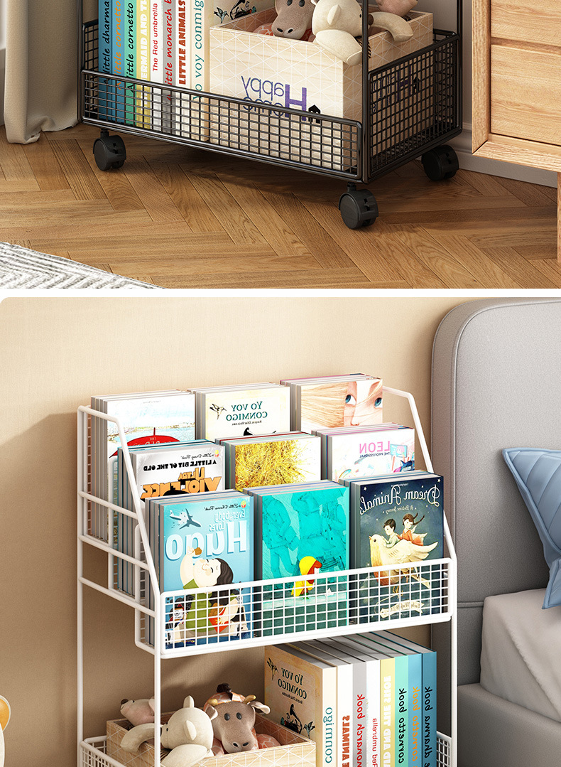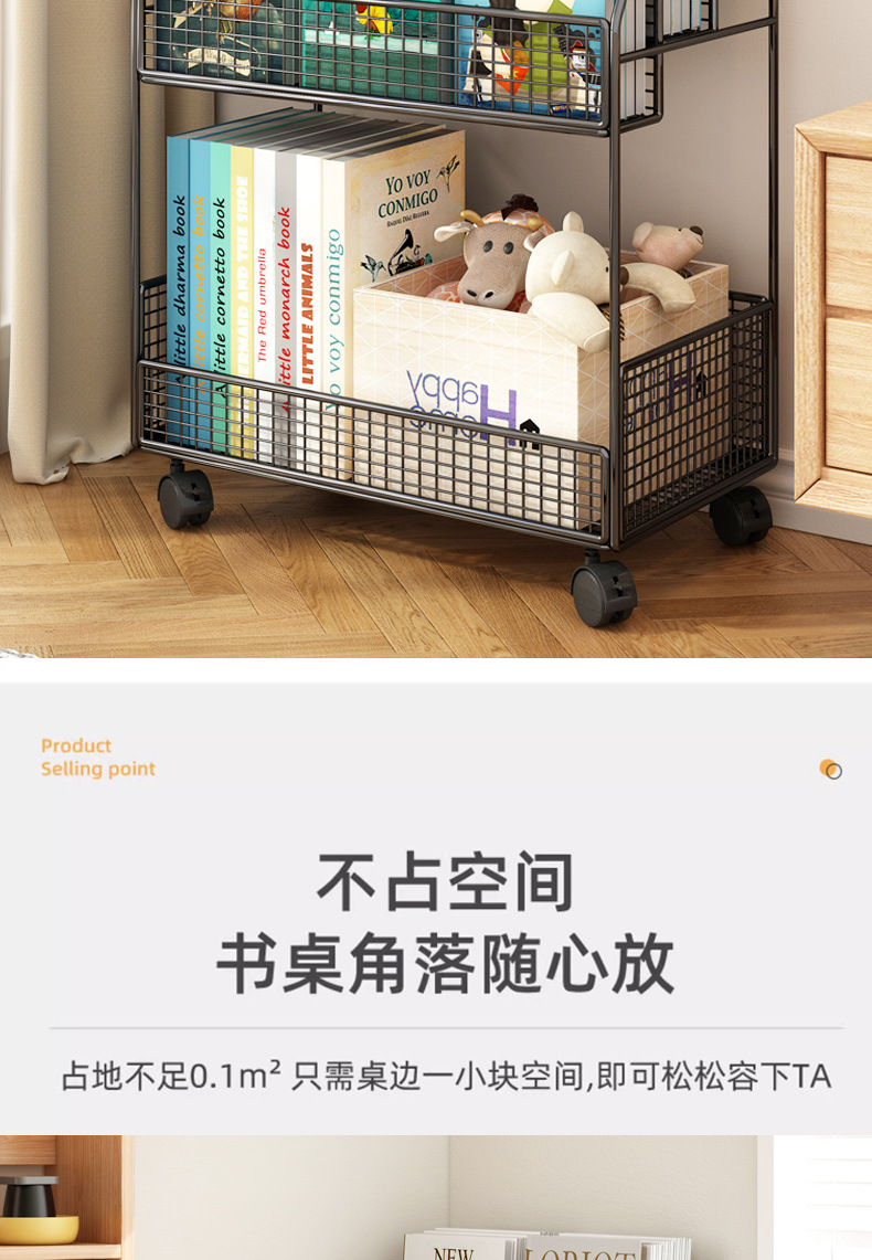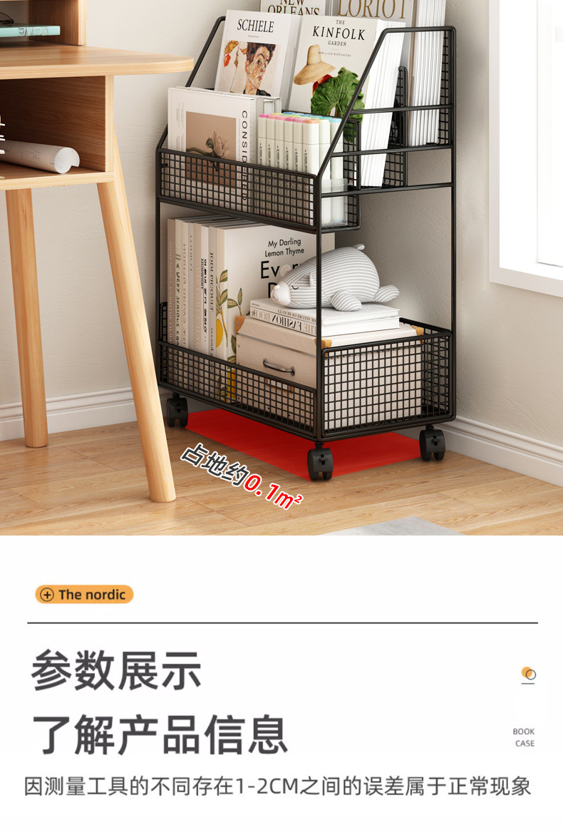 书架可移动桌下置物架落地儿童绘本阅读架推车床头书桌旁书柜带轮