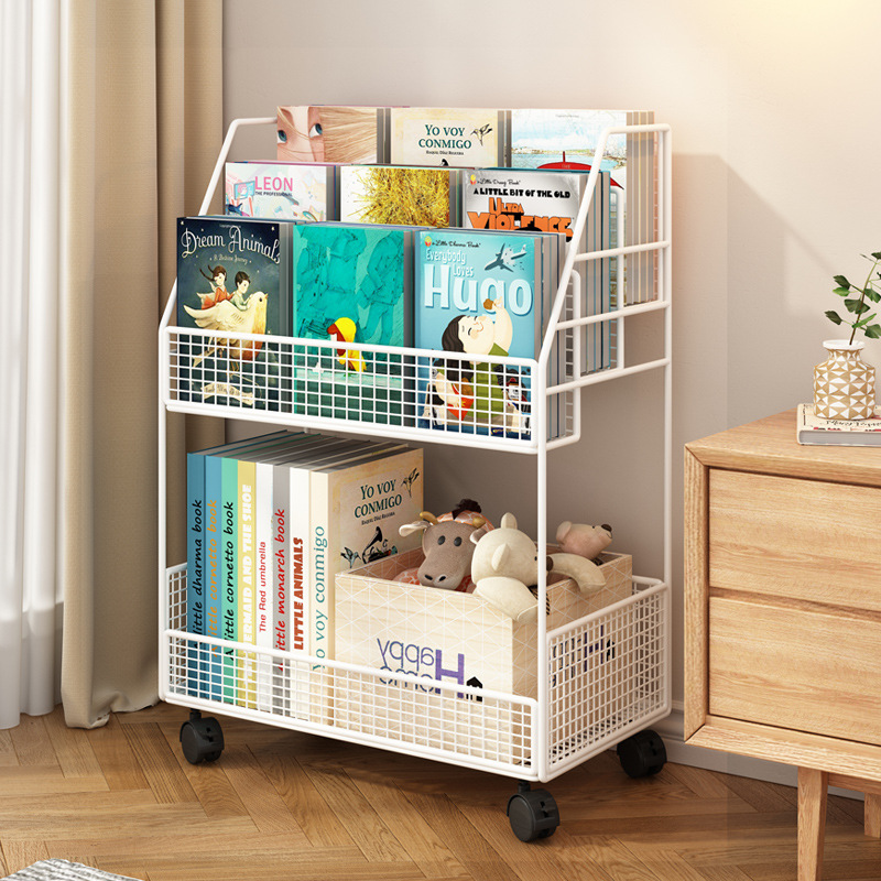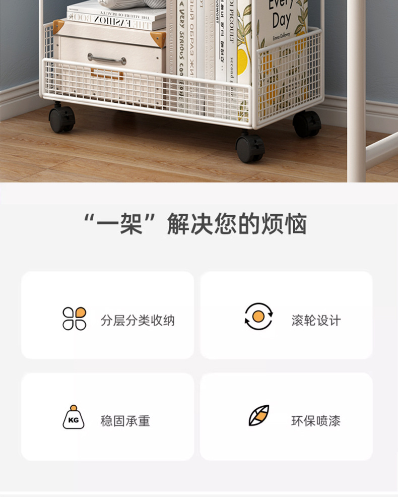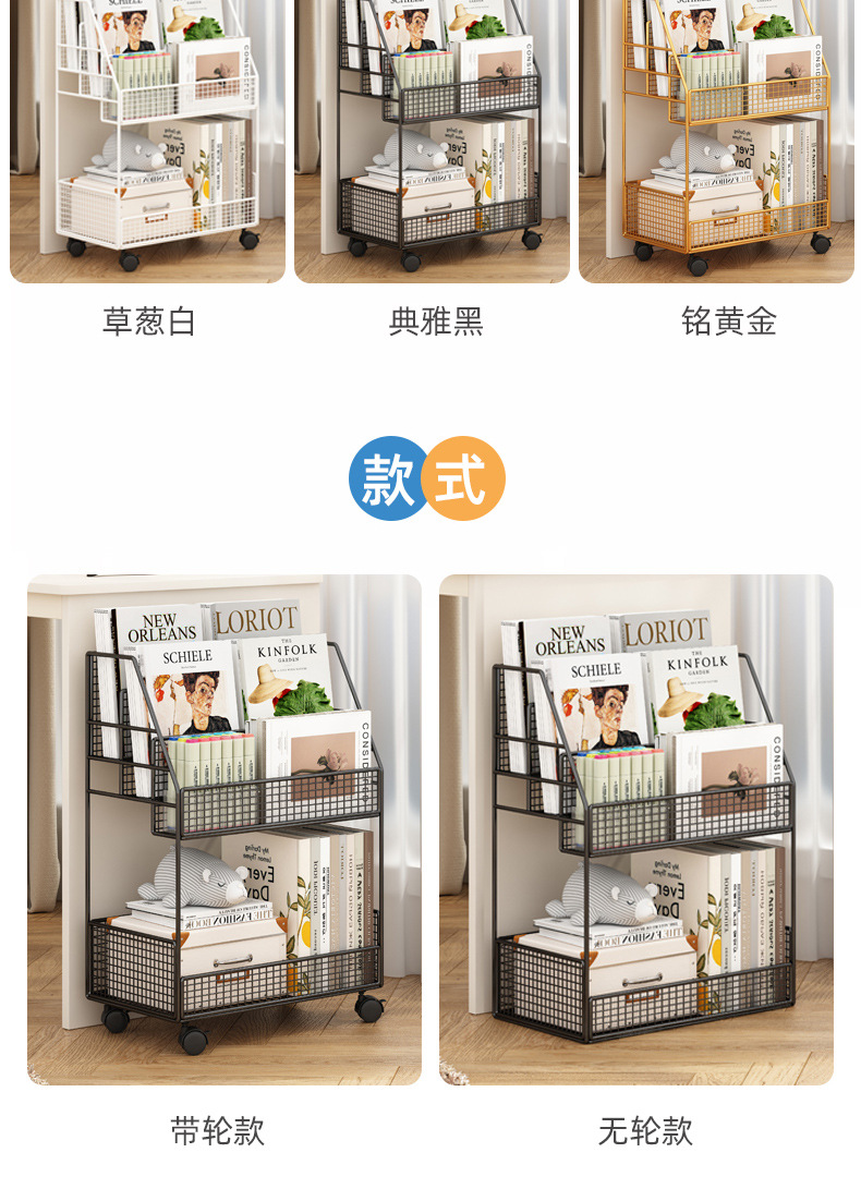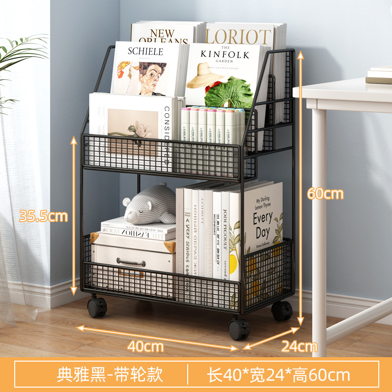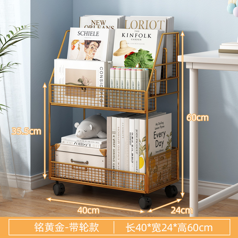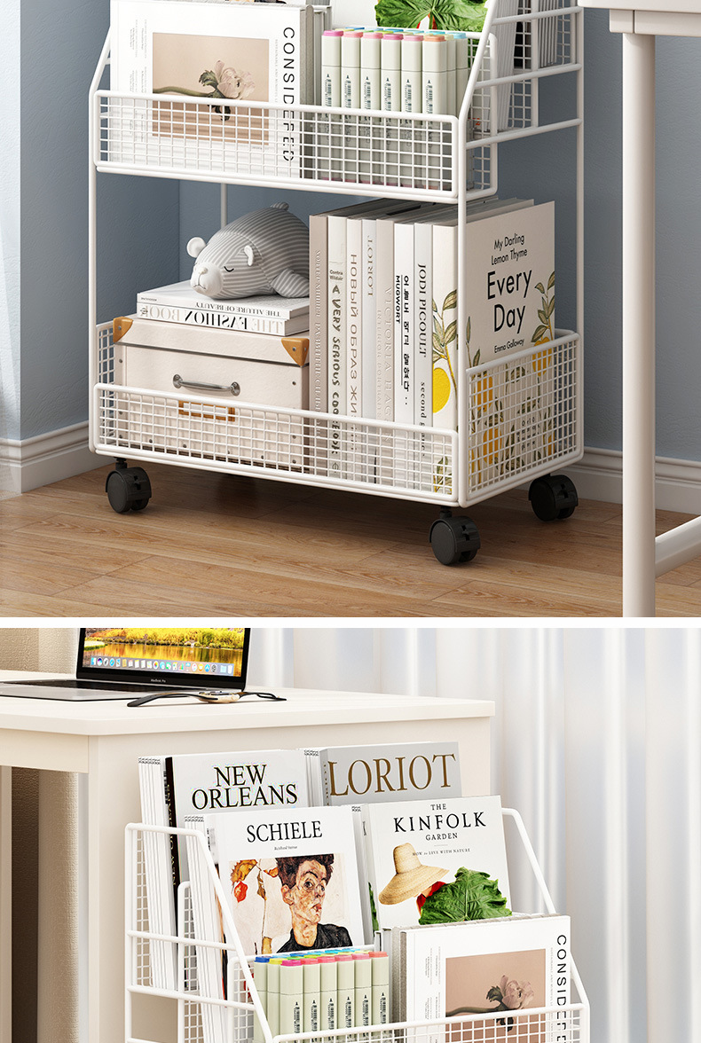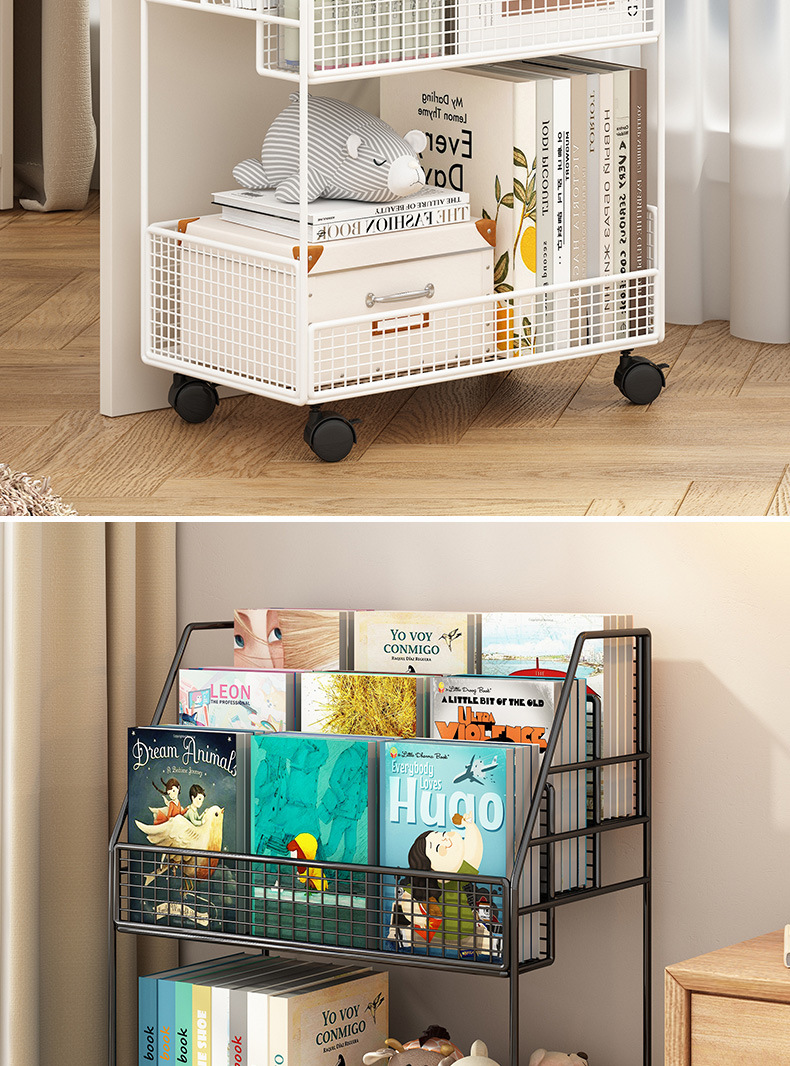书架可移动桌下置物架落地儿童绘本阅读架推车床头书桌旁书柜带轮