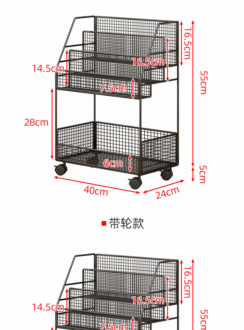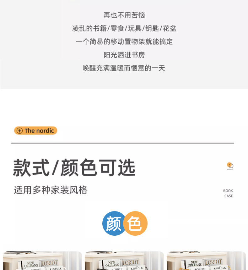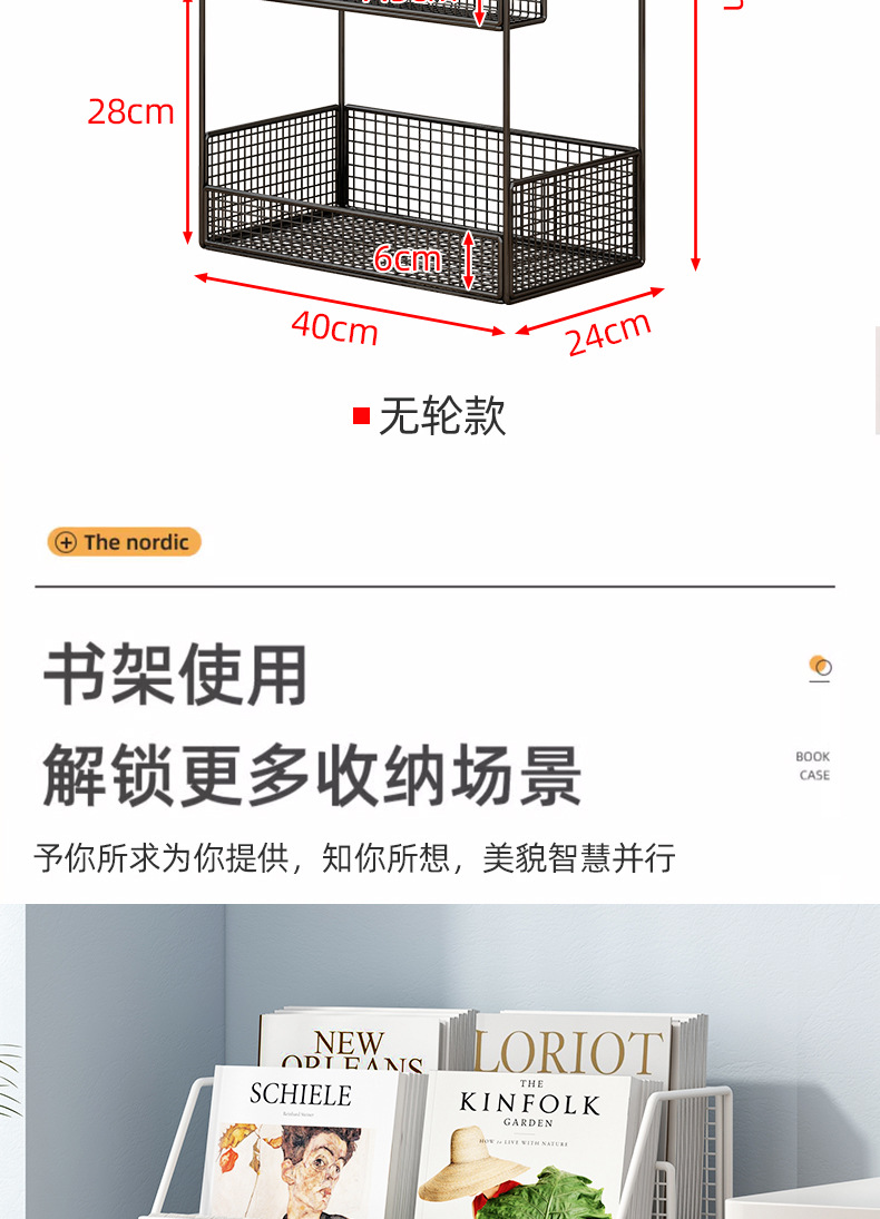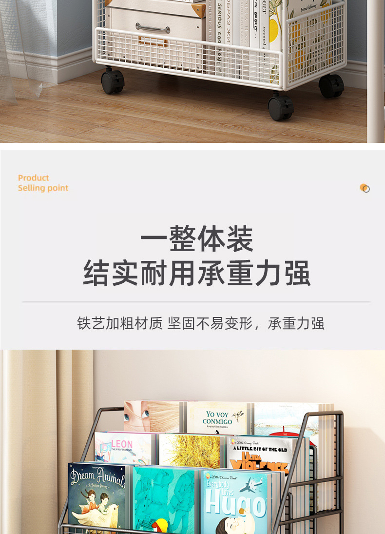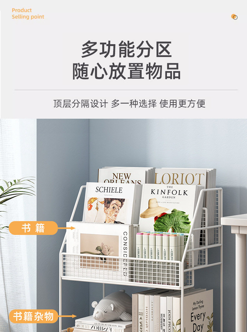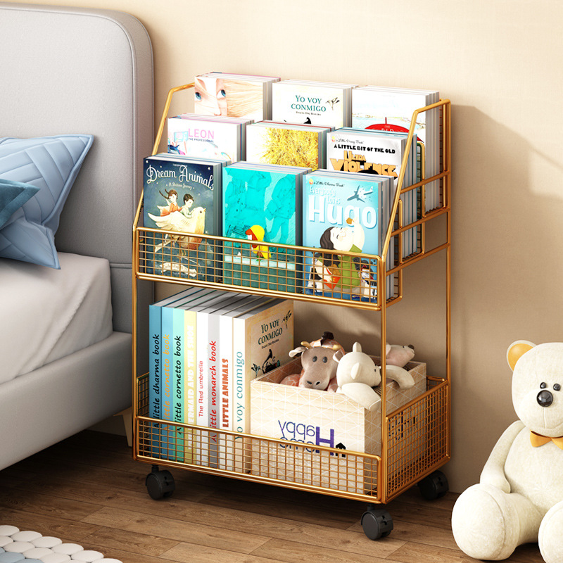 书架可移动桌下置物架落地儿童绘本阅读架推车床头书桌旁书柜带轮