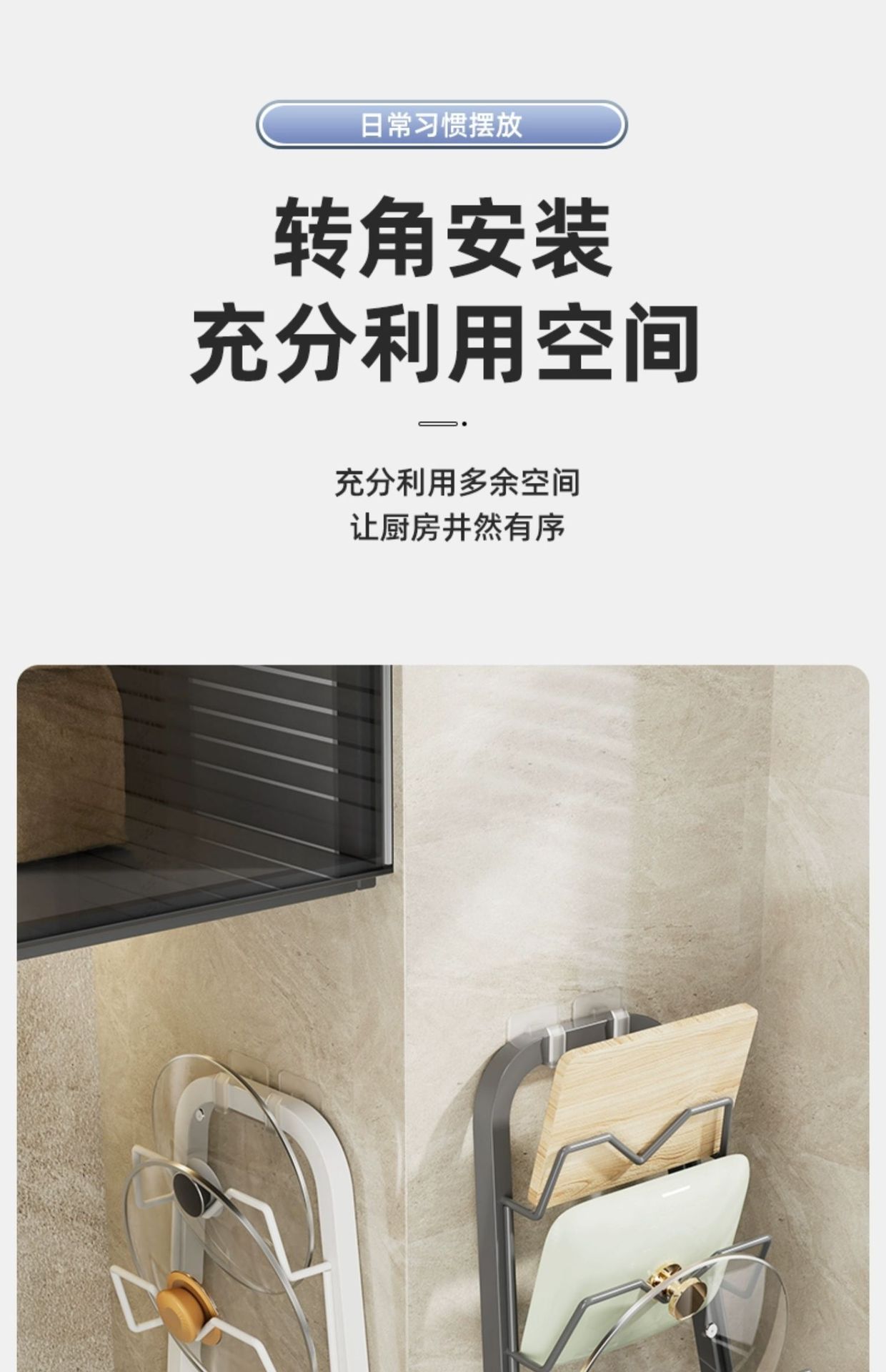 锅盖架子免打孔壁挂式厨房台面置物架多功能墙上砧板菜板收纳神器