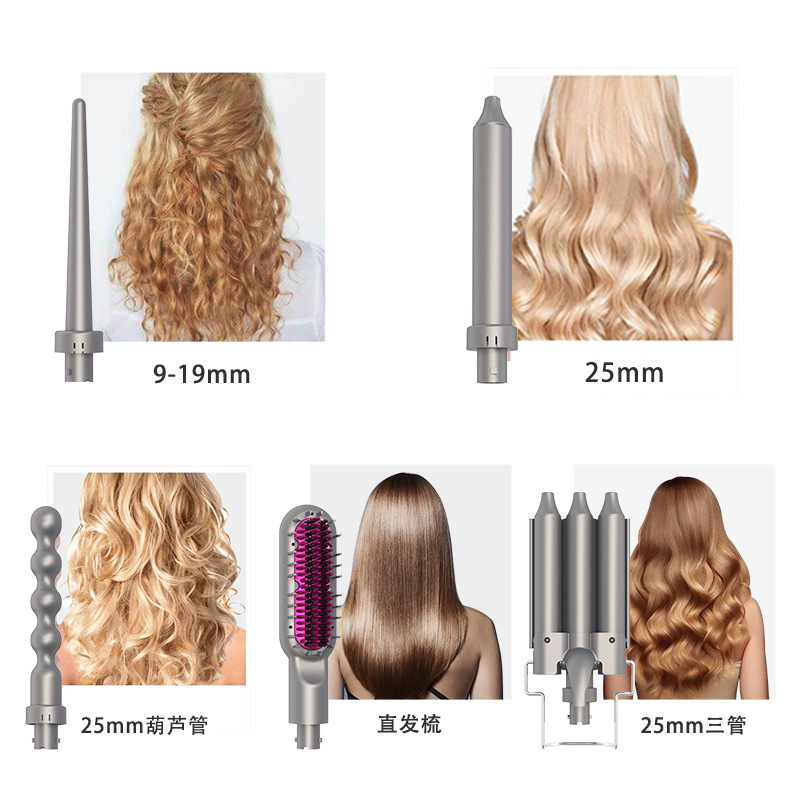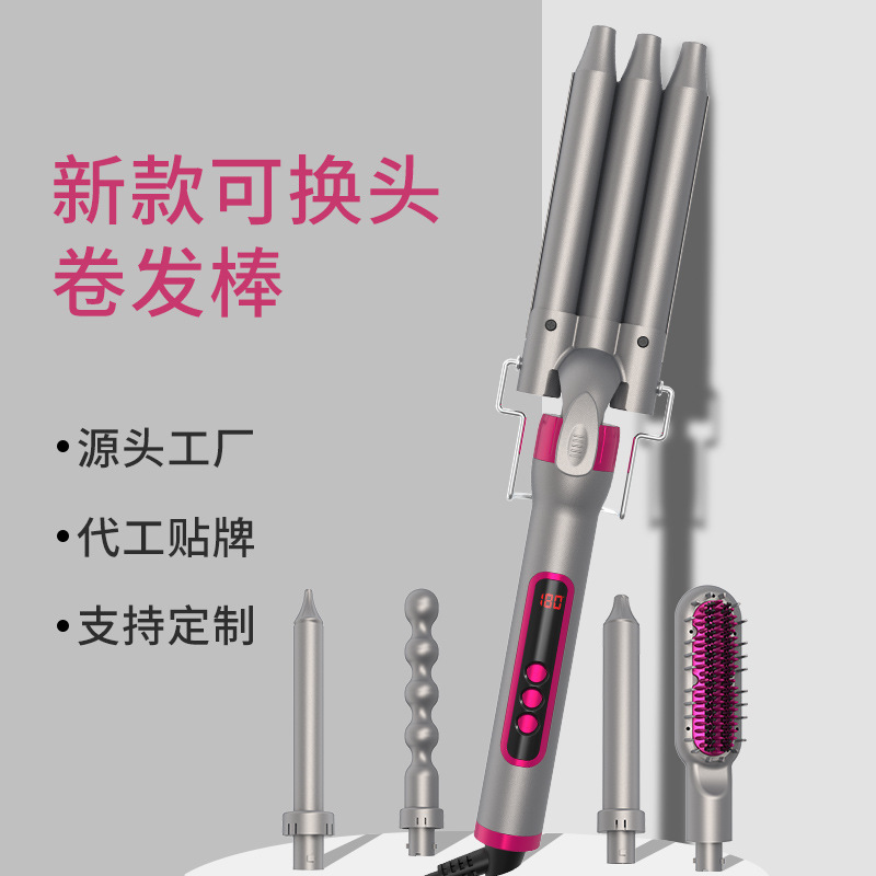 跨境专供卷发棒5合1换头多管卷发棒套装陶瓷直发梳卷发器源头工厂