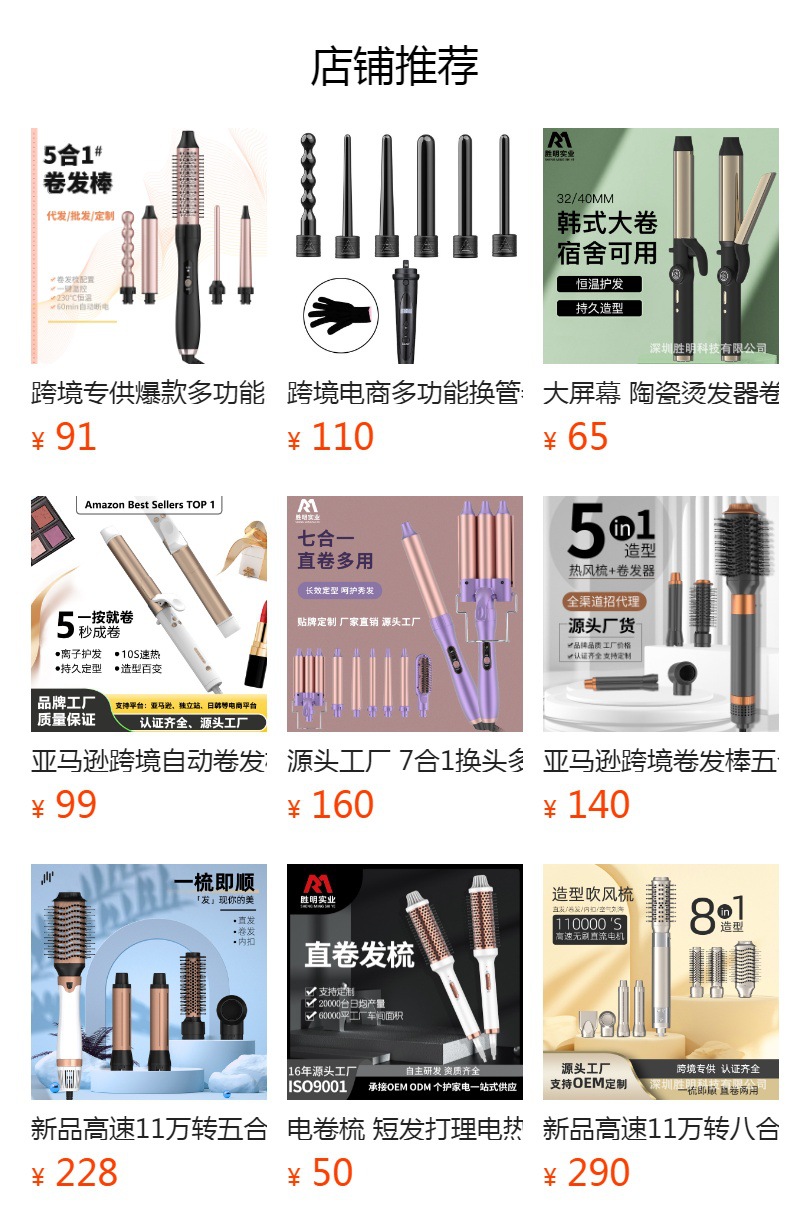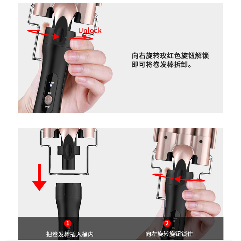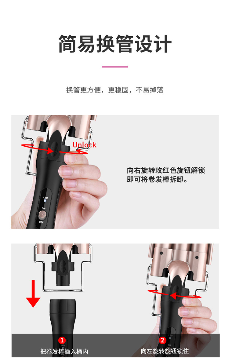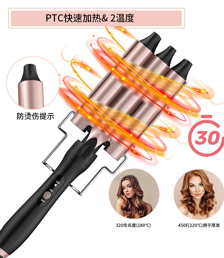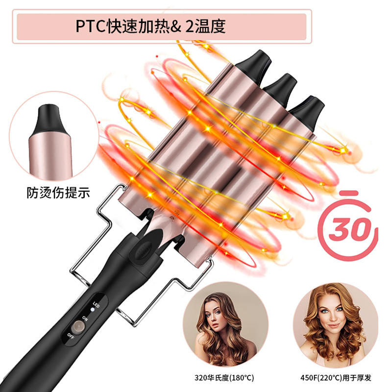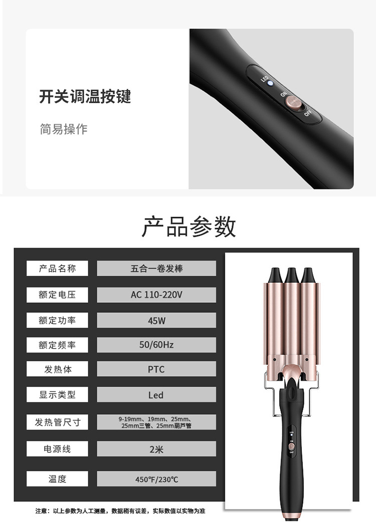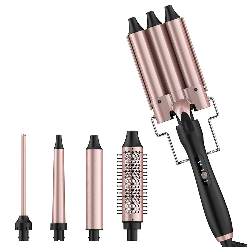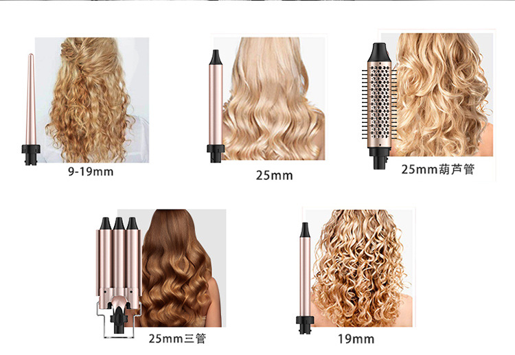 跨境5合1带圆梳头3管换头新款卷发棒外贸卷发梳直卷发器套装批发