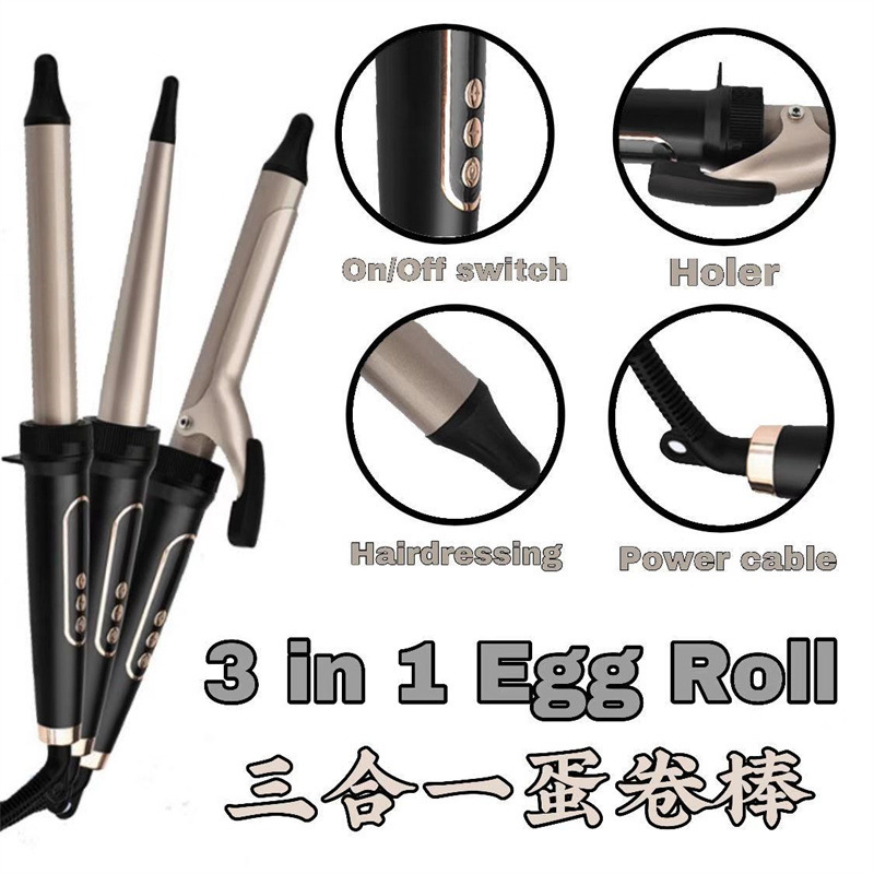 跨境换头三合一卷发棒套装专业美发工具波浪卷电卷棒卷发器烫发器