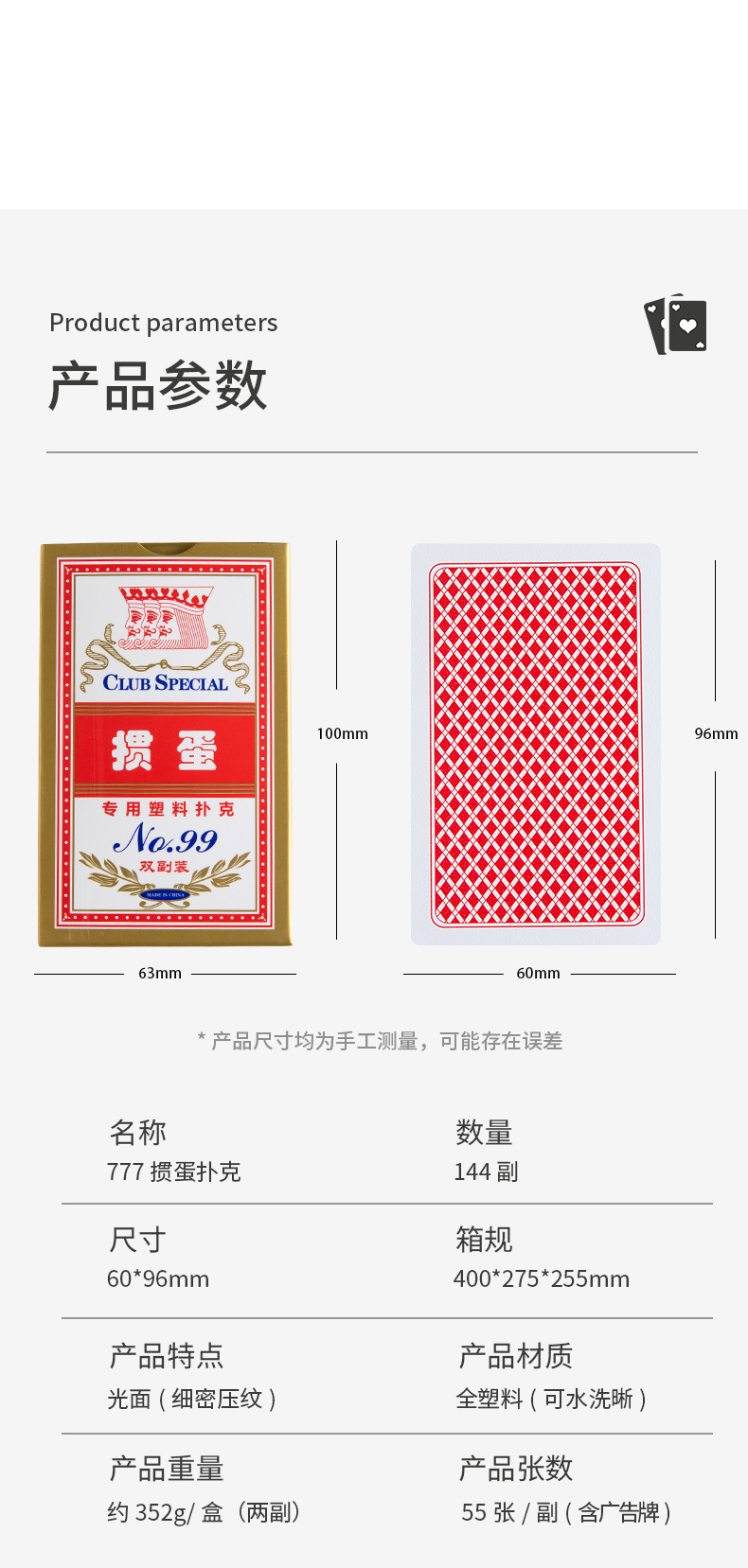 777掼蛋专用塑料扑克牌 双副装PVC防水防折耐磨防滑高档扑克纸牌
