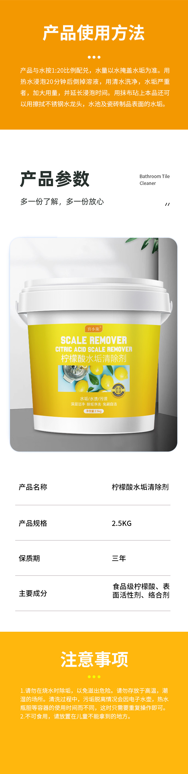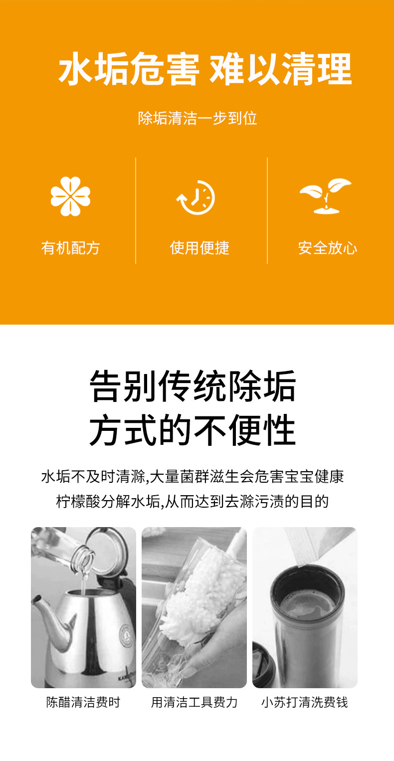 柠檬酸除垢剂食品级水垢清洁剂茶垢清洁剂清洁粉水壶热水器除垢剂