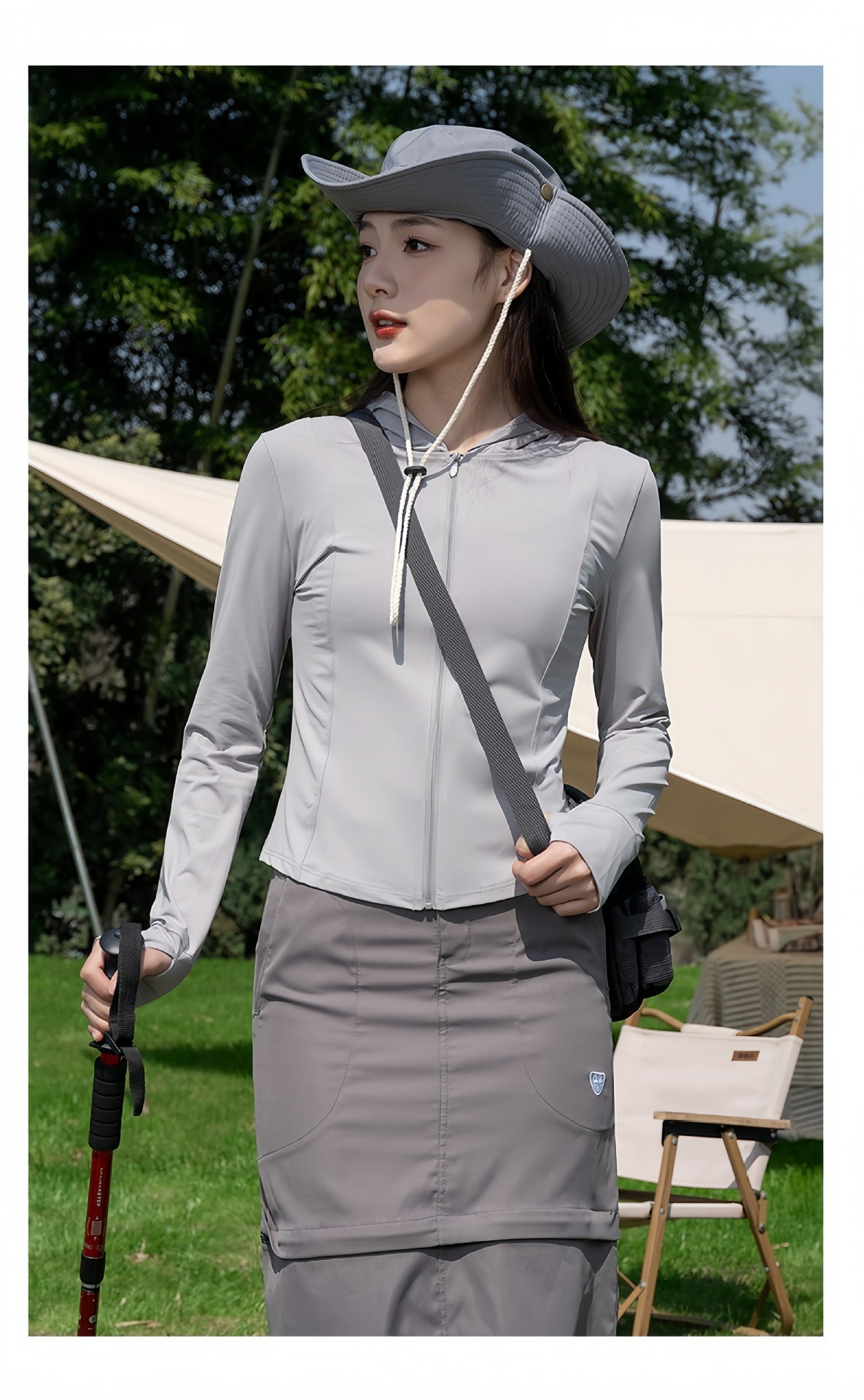 2024修身防晒衣女时尚连帽锦纶防晒服蕉下upf50+薄款防晒外套批发