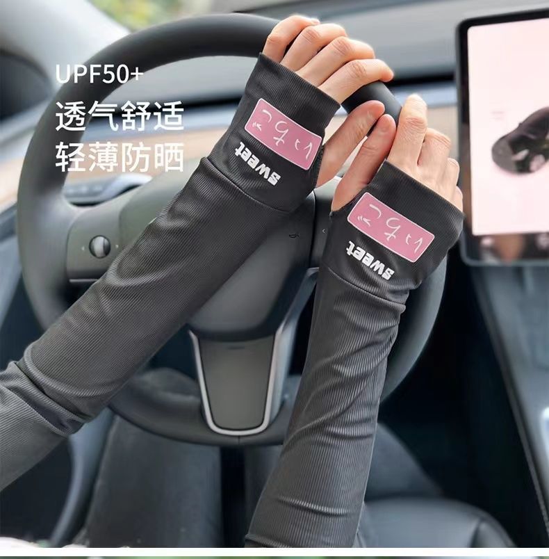 夏季男女冰袖防晒袖套防紫外线冰爽薄加长款冰丝袖套开车护手臂套