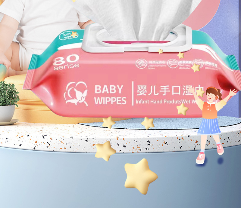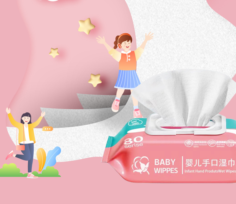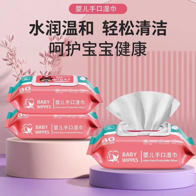 50抽婴儿手口湿巾新生宝宝幼儿童母婴湿纸巾无纺布清洁湿巾纸代发