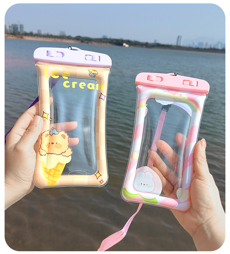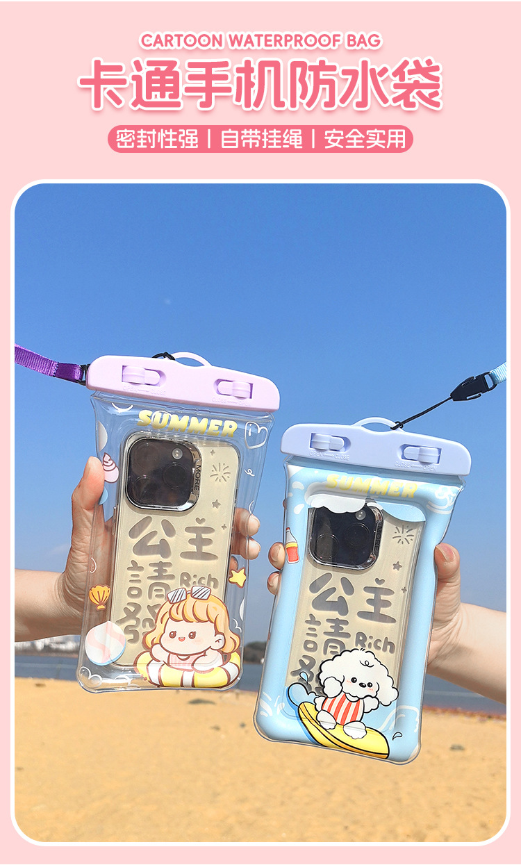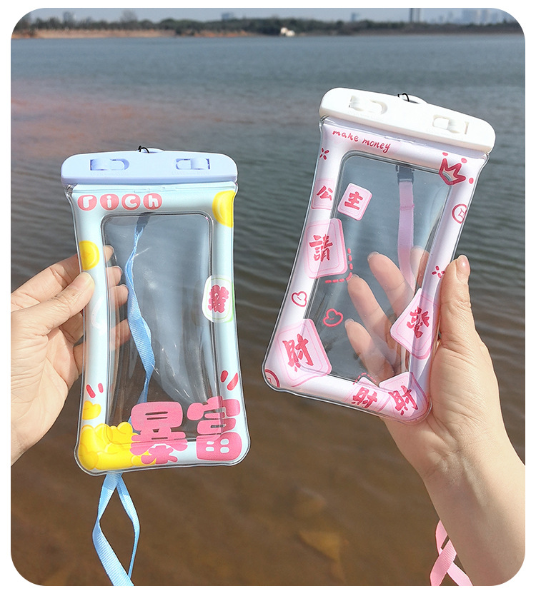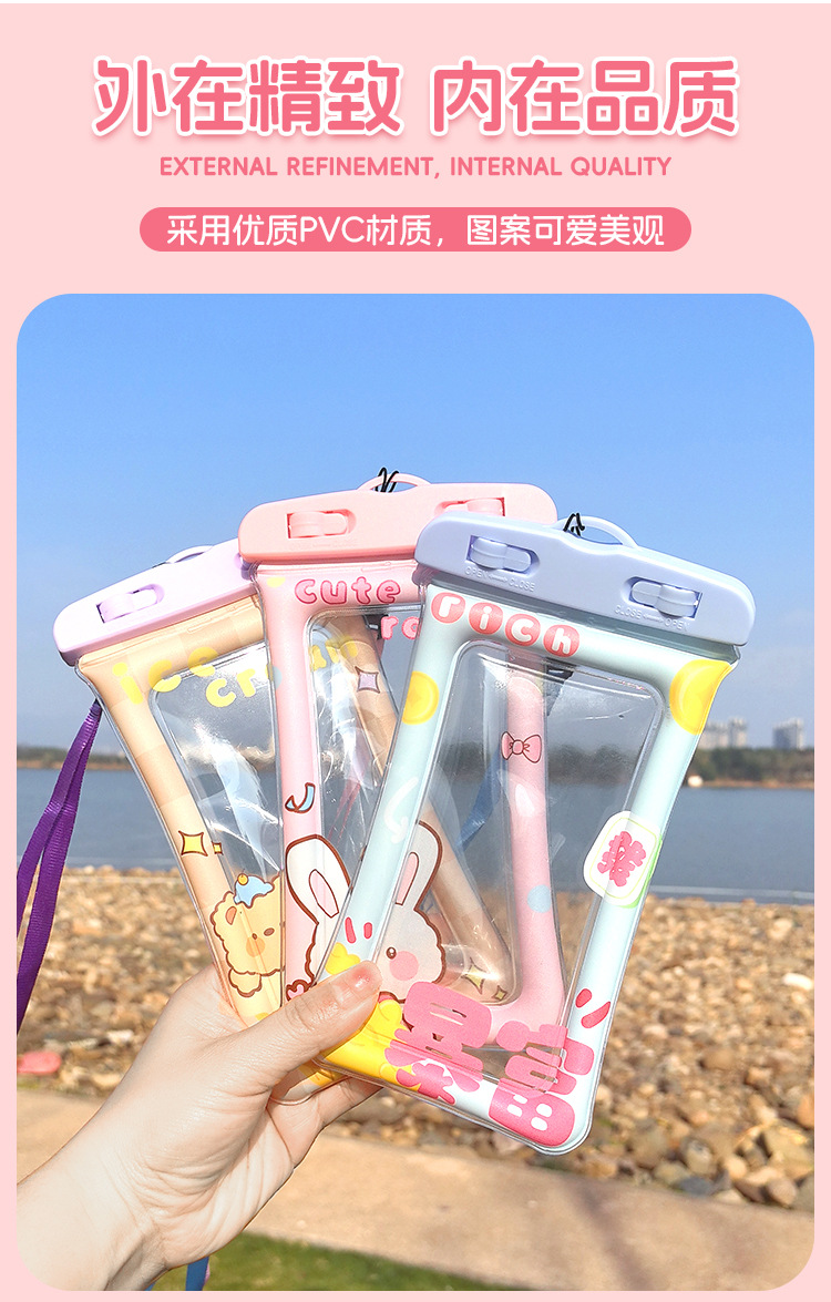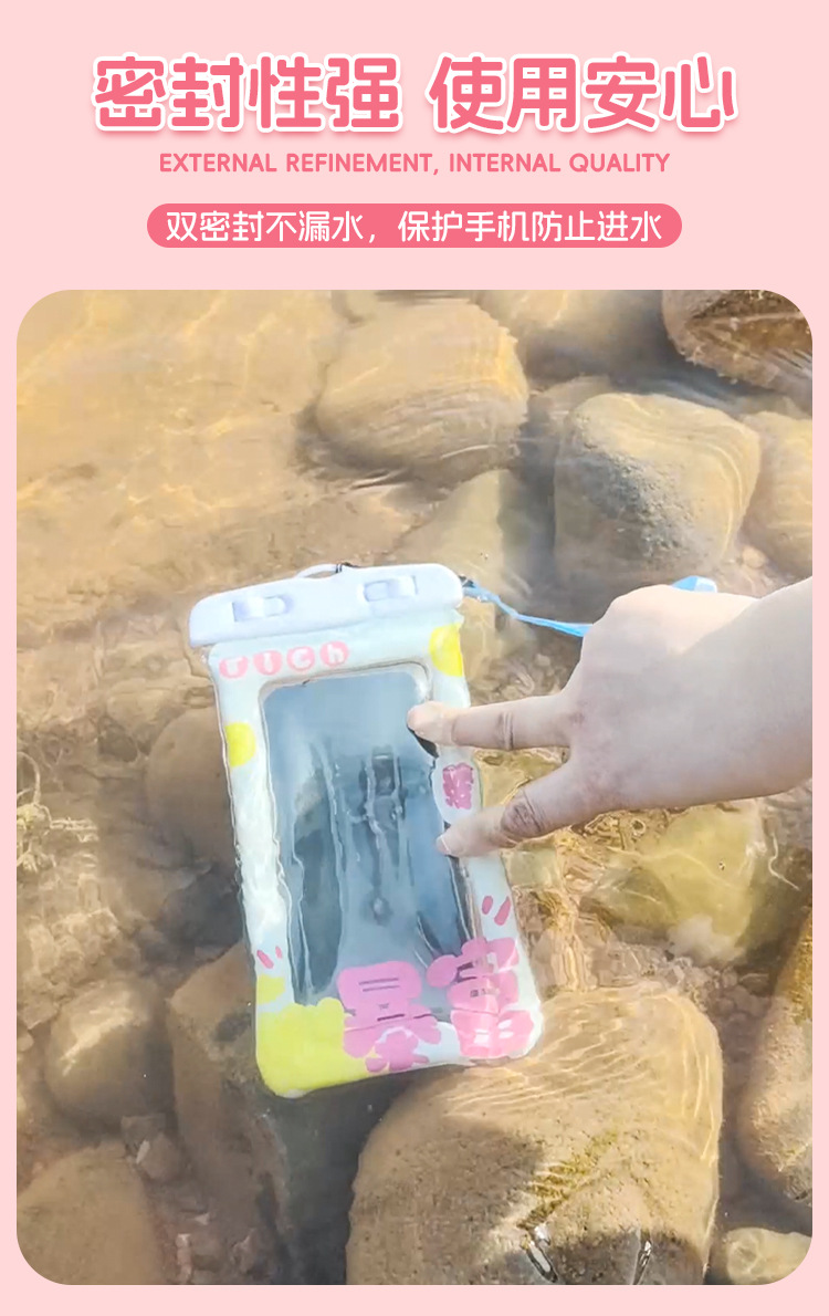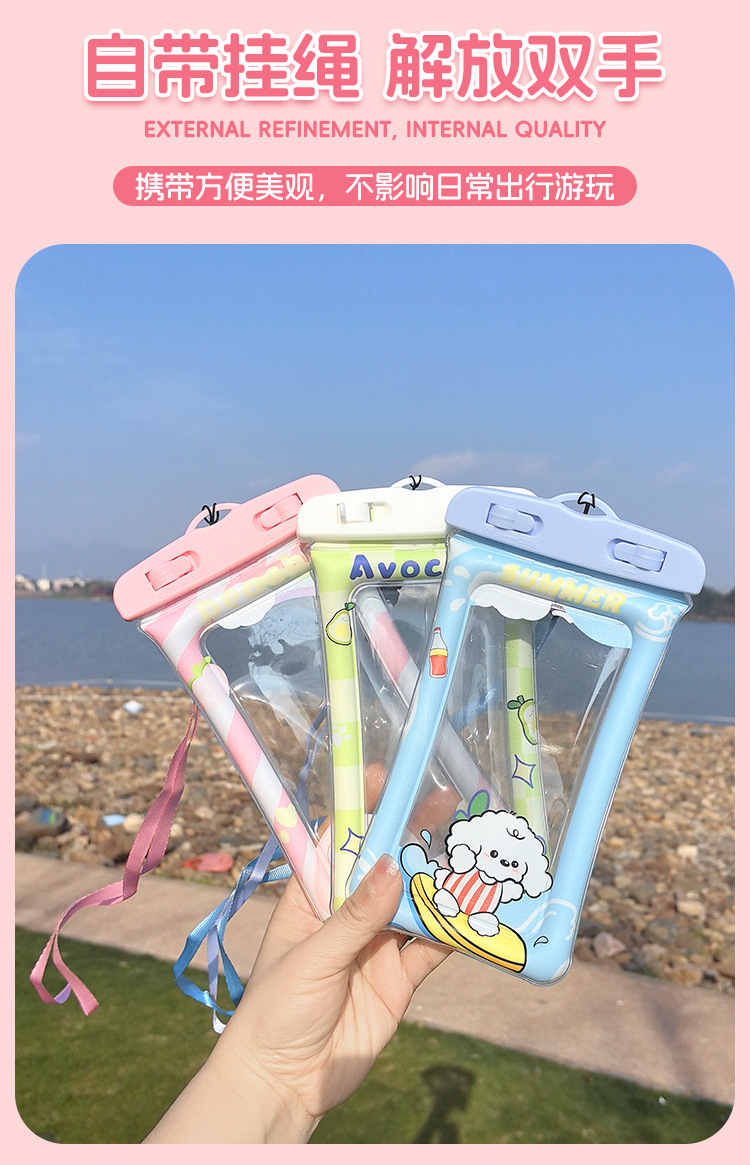 2024简约可爱卡通手机防水袋气囊可触屏保护套漂流游泳手机袋批发