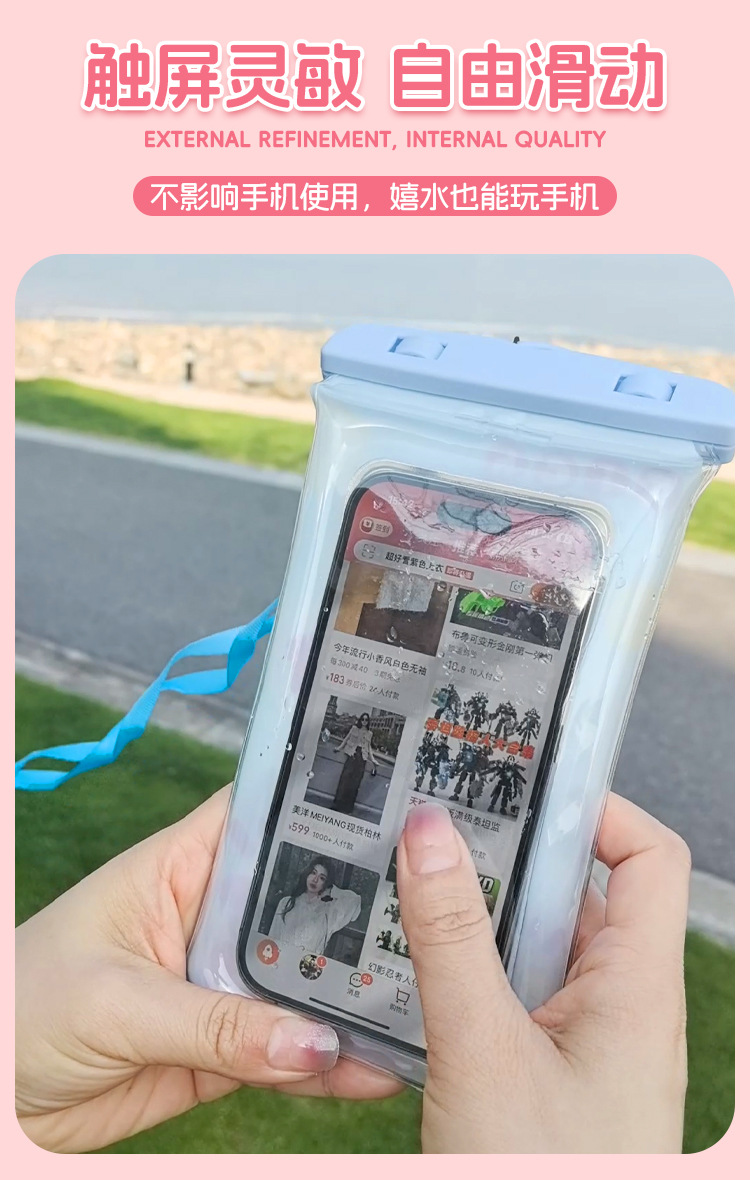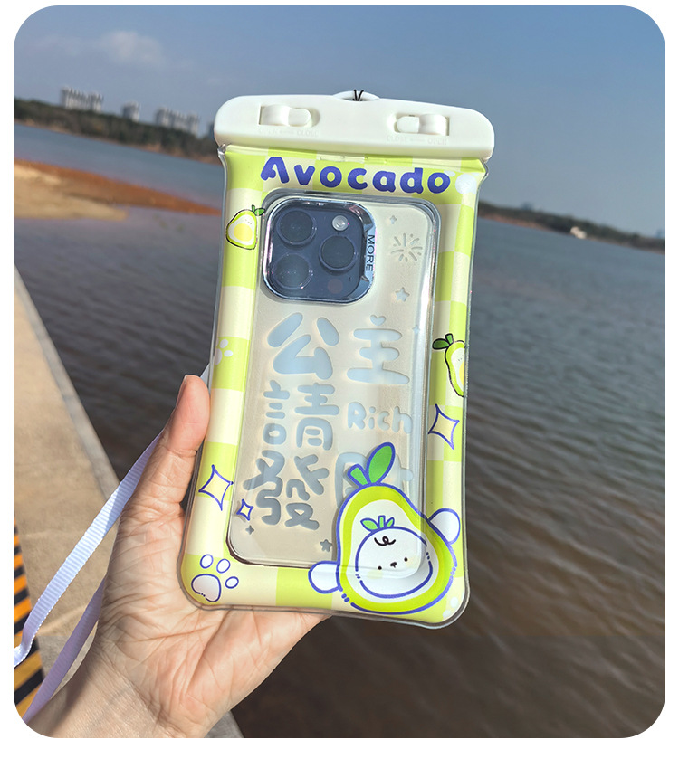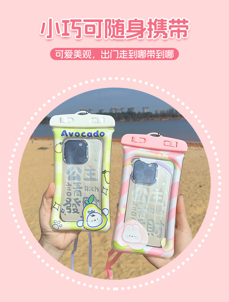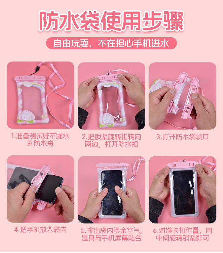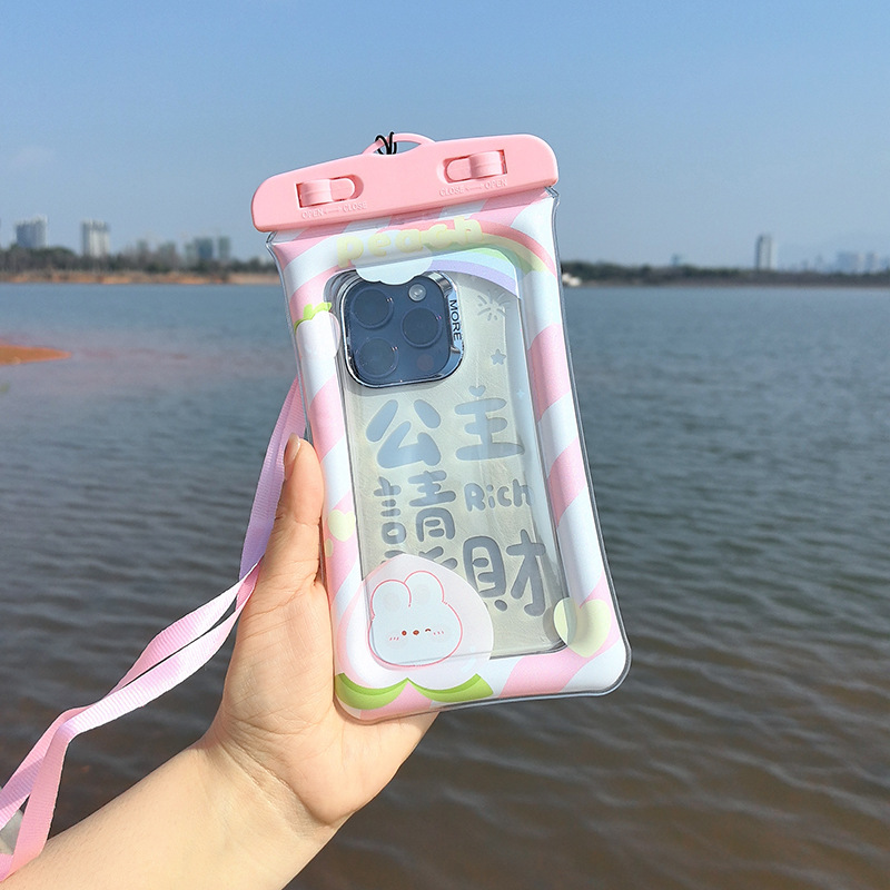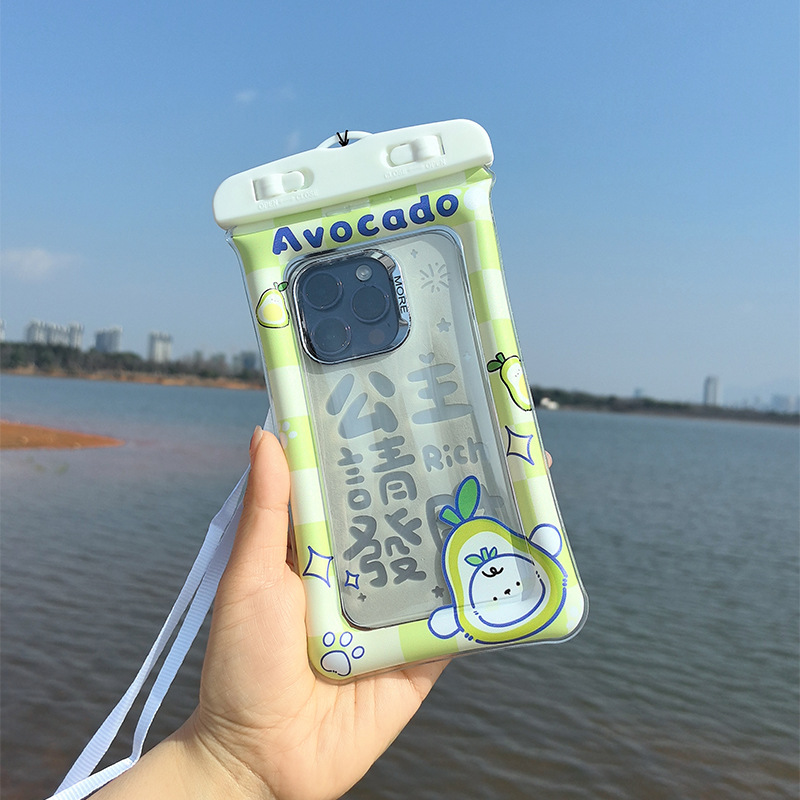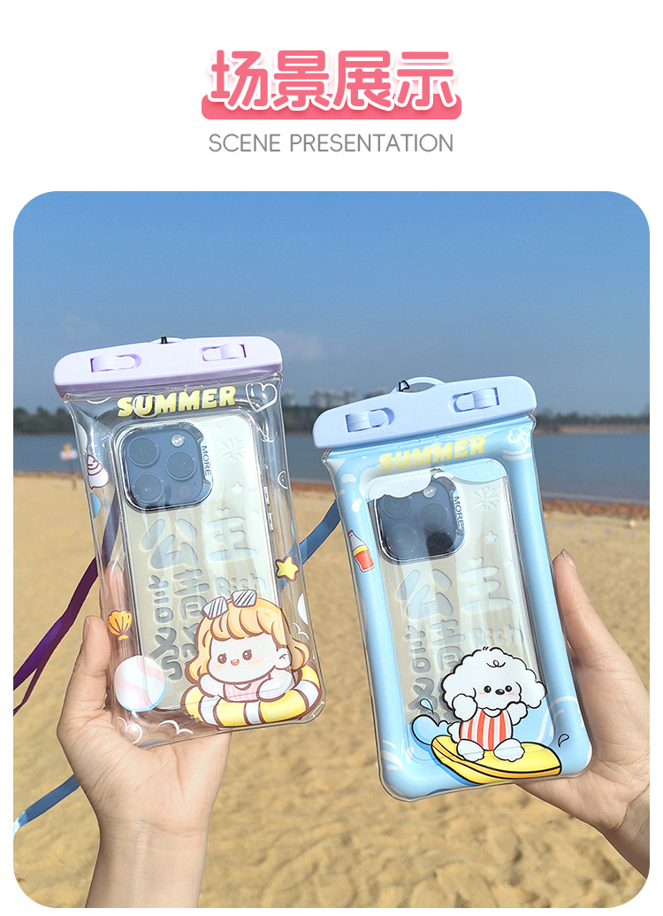 2024简约可爱卡通手机防水袋气囊可触屏保护套漂流游泳手机袋批发