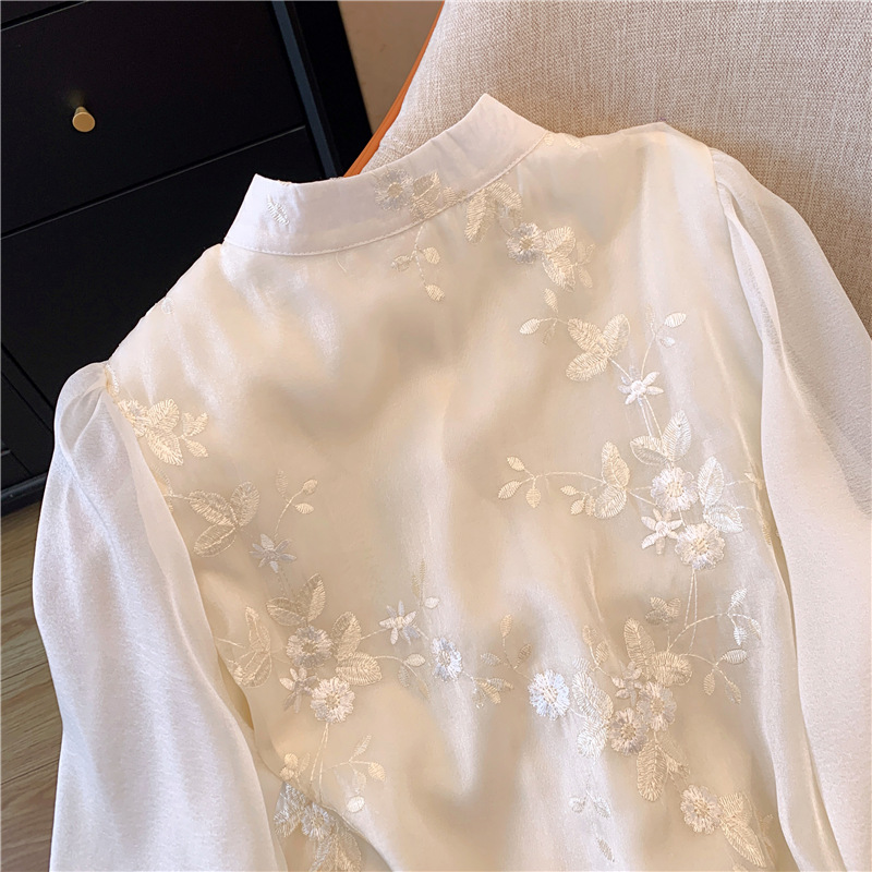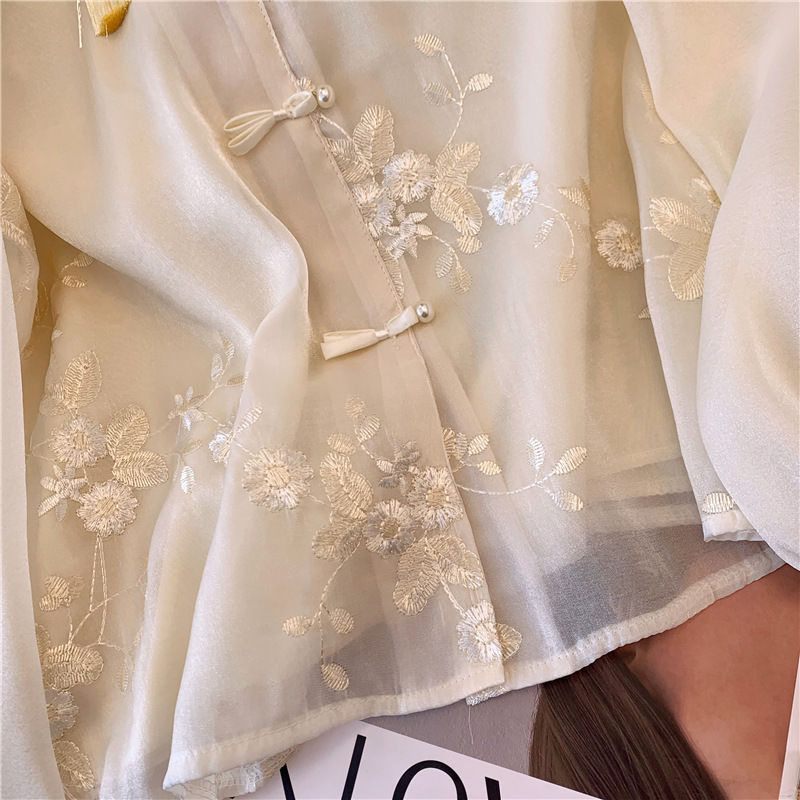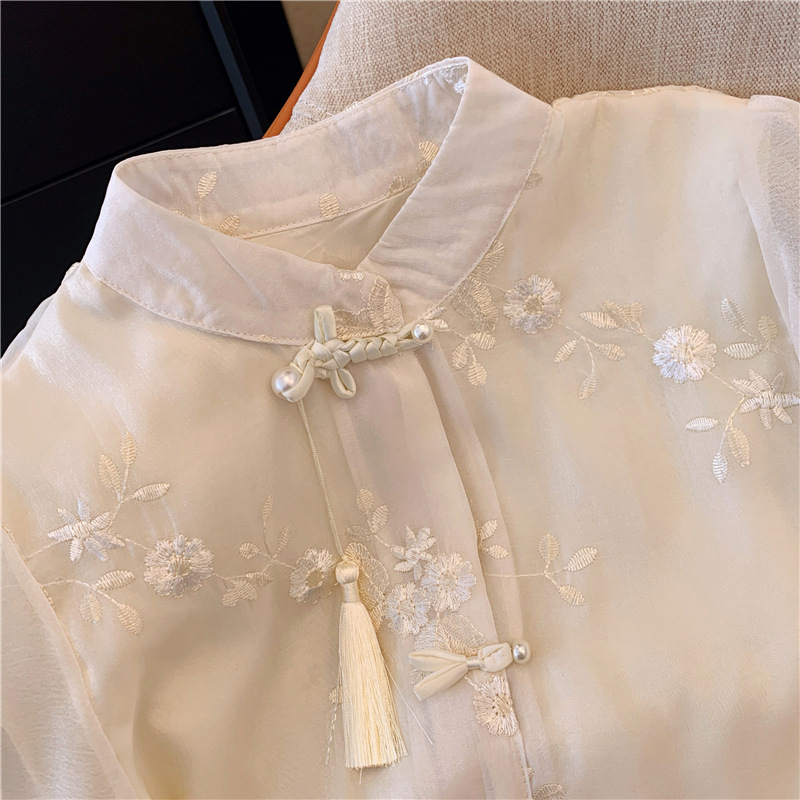 实拍 新中式国风刺绣衬衫女2024春季新款复古长袖马面裙上衣搭配
